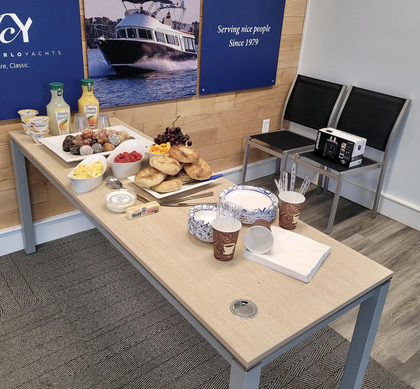 Check out some photos of the various service teams in the different locations. I don’t know about you, but those pastries look AMAZING! We even had an appearance of Yacht Broker Bradley Peer’s Coffee Party featuring the Gear Oil Cafe!