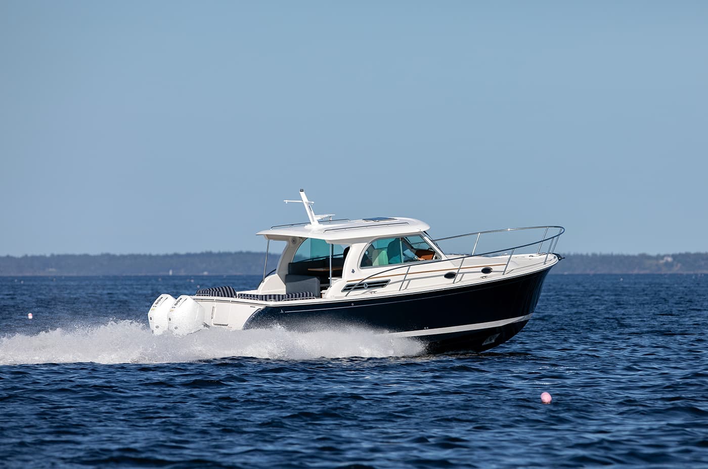 The Back Cove 34O’s advanced hull design isn’t just engineering — it’s the secret behind her smooth ride, quick planing, and impressive efficiency. With a finely tuned deep-V entry and optimized running surface, she slices through chop while maintaining stability and speed. The result is a ride that feels confident, dry, and effortless whether you’re cruising the coastline or pushing offshore.