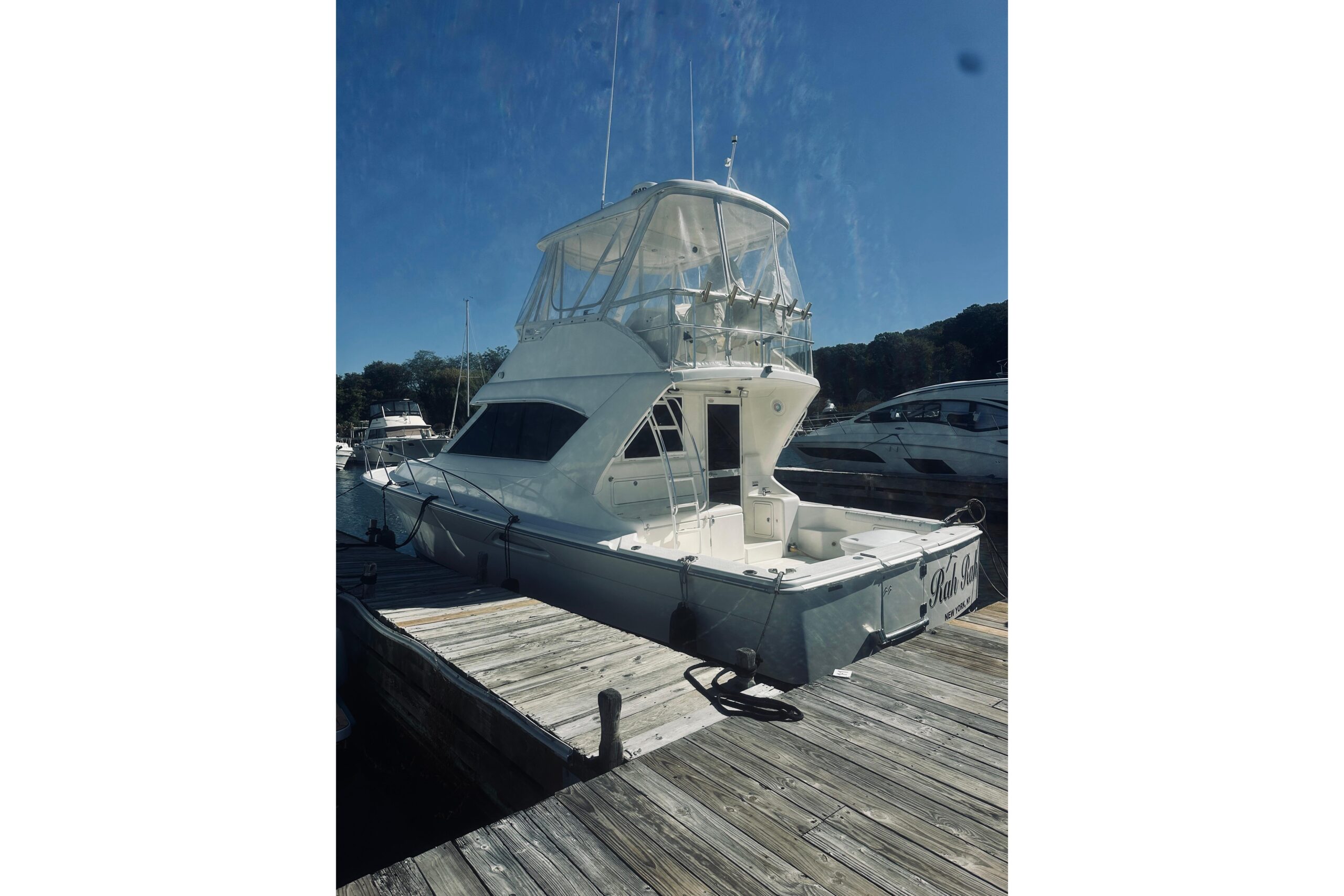 This is a solid fiberglass hull, a true battle wagon. This boat is clean through and through and you can see the boat has always been maintained. Spacious Layout with natural light. Master stateroom forward with 2 large hanging lockers. Private access to the head. Guest stateroom midship with over/under bunk w/large hanging locker and drawers. Each stateroom has custom bedding. Her large comfortable Flybridge offers clear views all around with forward seating and refrigeration. Her salon is well appointed with a settee seating starboard with high gloss table. Port side features an L shaped couch with storage. Galley is midship with a L shaped counter top and ample storage refrigeration, cooktop and sink.