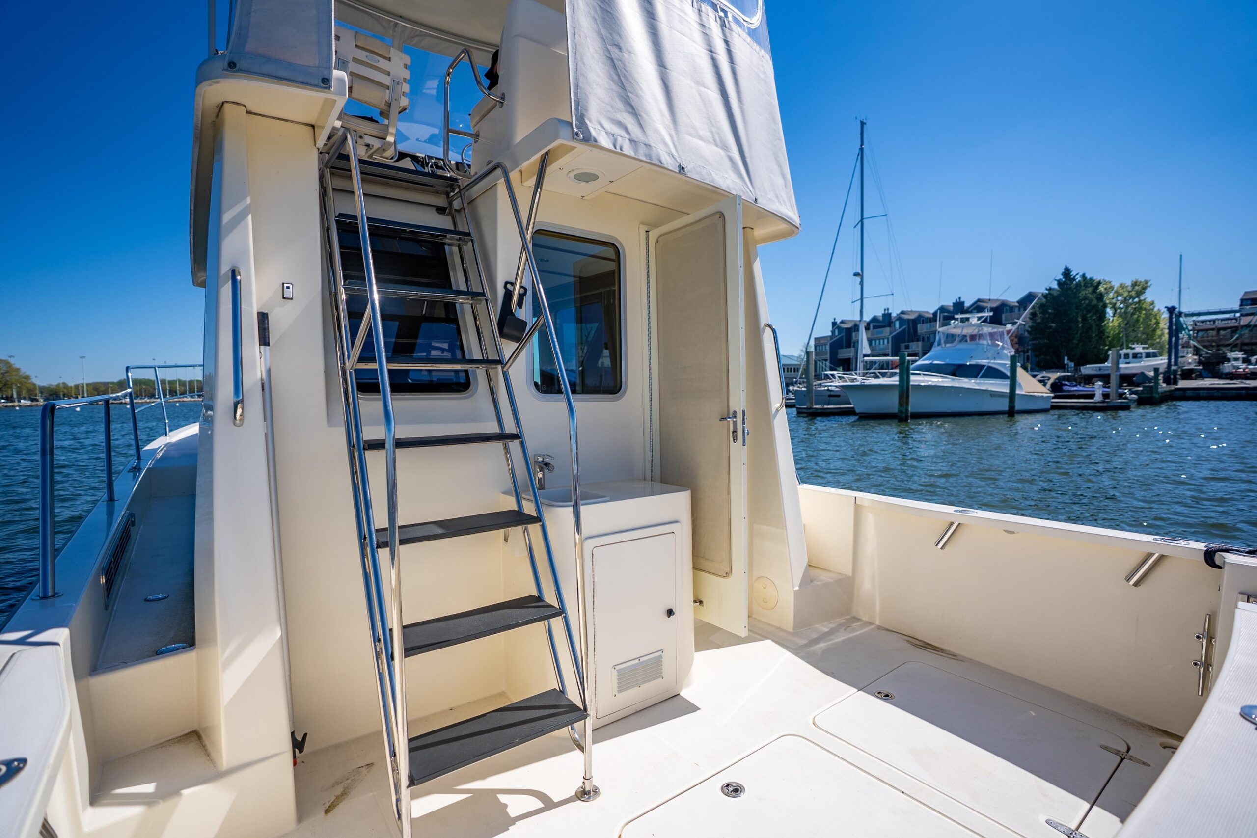 - Dual helms – salon and fully enclosed flybridge