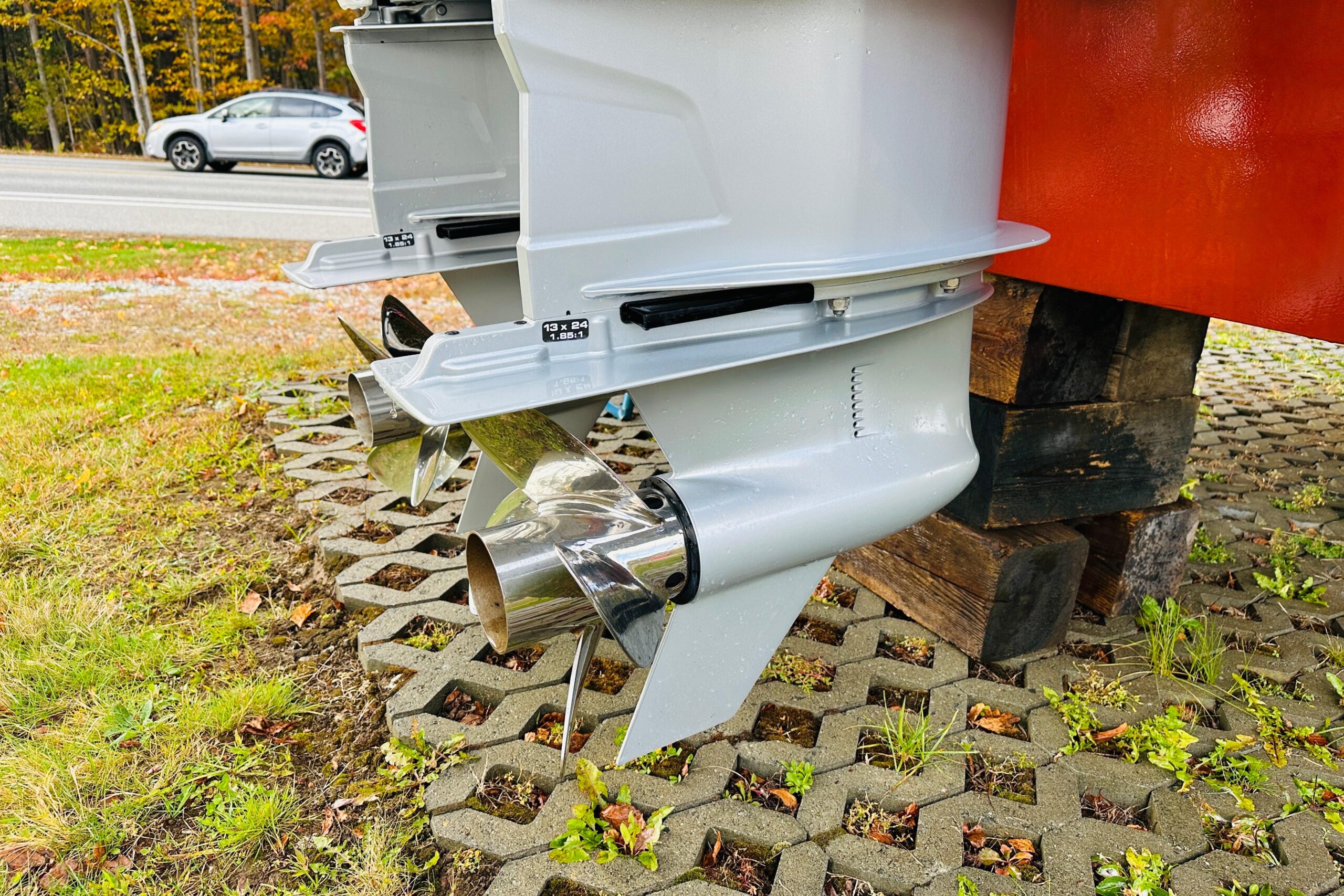 Powered by the twin Mercury V8 Verado 300hp with JPO system (joystick piloting), this lightly owned 34O is nicely equipped with low hours, stored inside winter storage building during off-season, has the Garmin electronics package, a custom helm deck – window canvas package, bow thruster, Flag Blue hull and more.