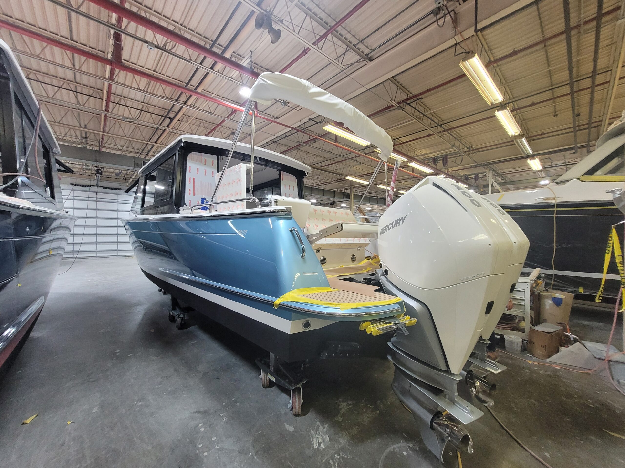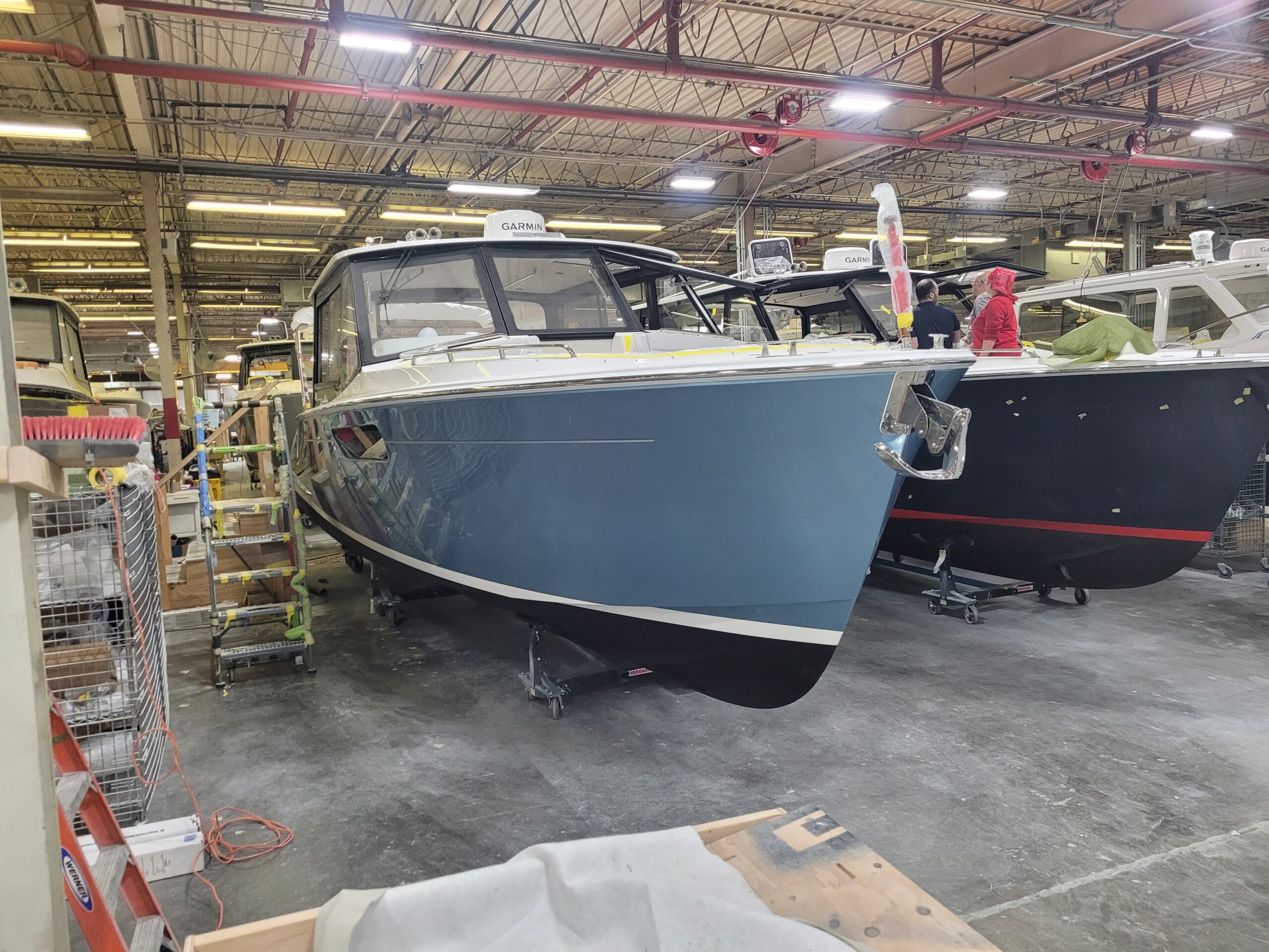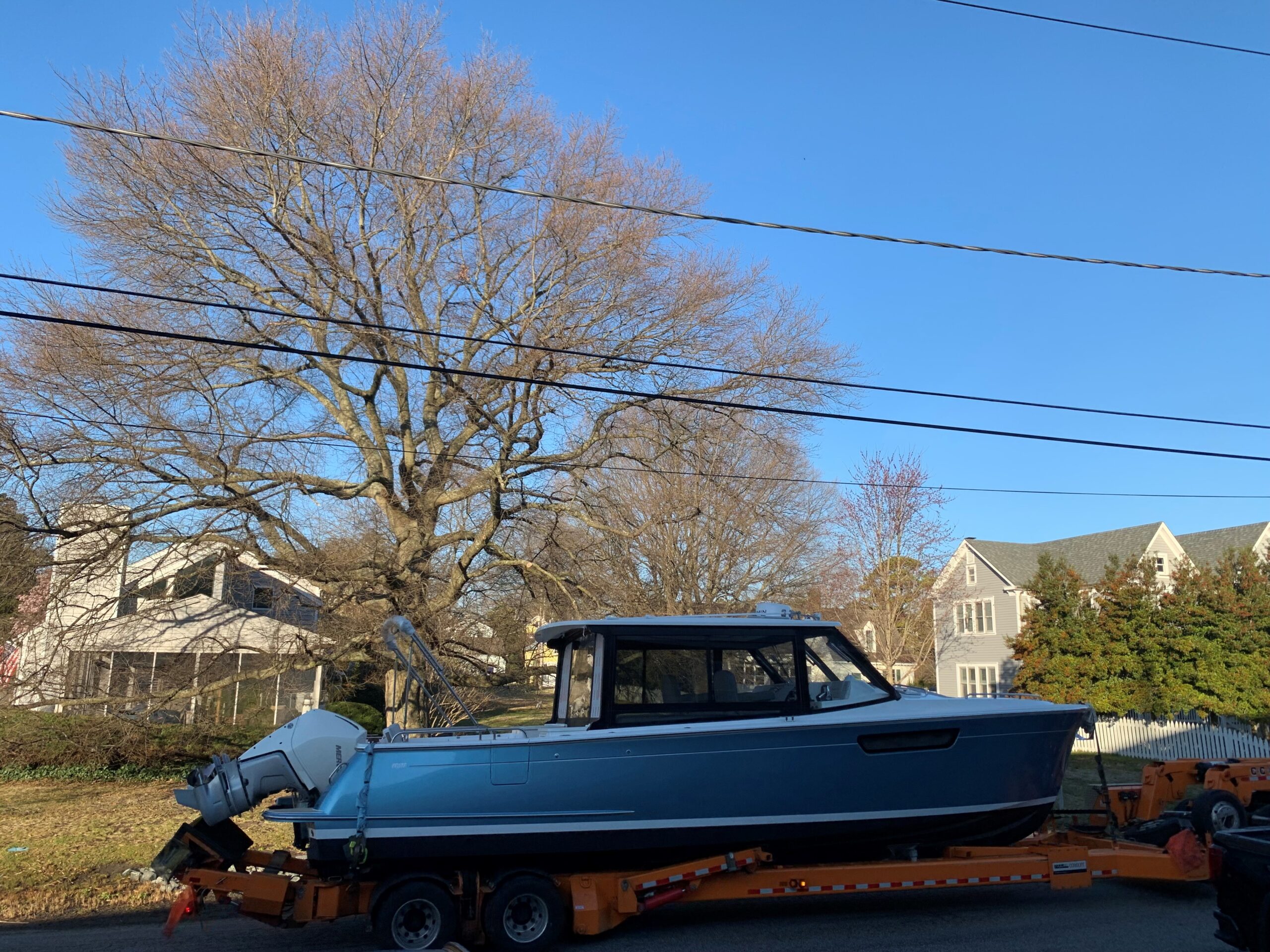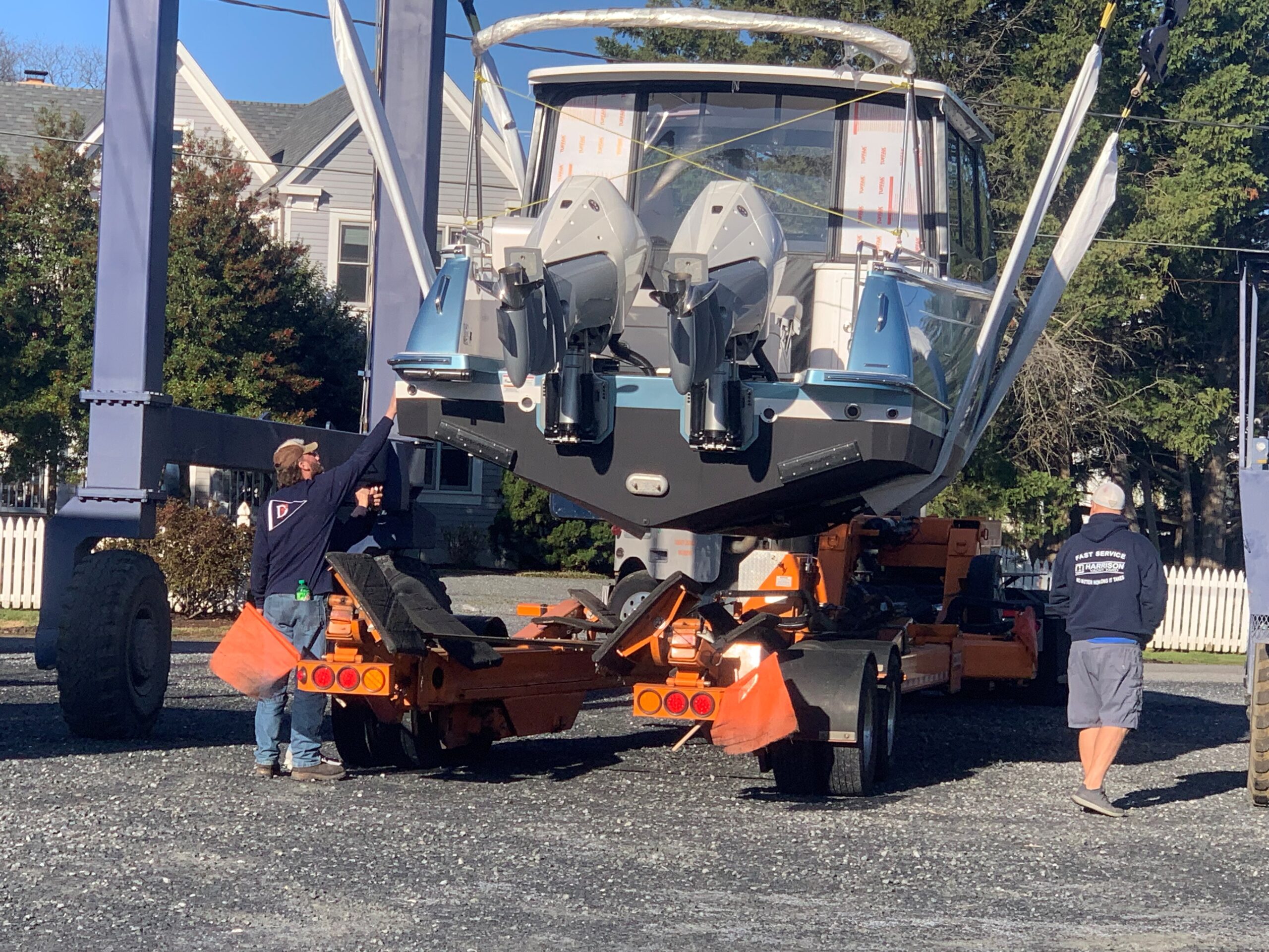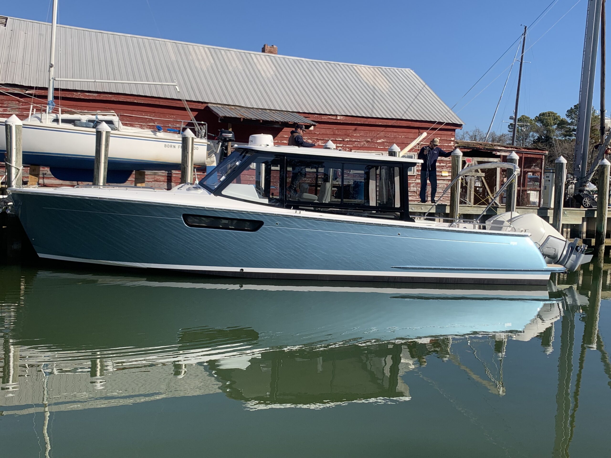 After the build process was completed, and she was picked up from the MJM facility in Washington, NC, our brand new MJM 3 arrived in Oxford, MD this morning. The DiMillo’s on the Chesapeake East service team inspected the boat upon arrival. They reviewed the entire exterior and all interior areas, checking for manufacturing flaws, that all equipment is present and functioning, and that all accessories are on board. Next, the boat was launched, the engines started, and the boat was sea trialed. The thorough review is meant to ensure that all vessels meet the DiMillo’s standards. This beautiful MJM 3 #019 reached expectations and she she will be ready for showings in Oxford in the coming weeks!
