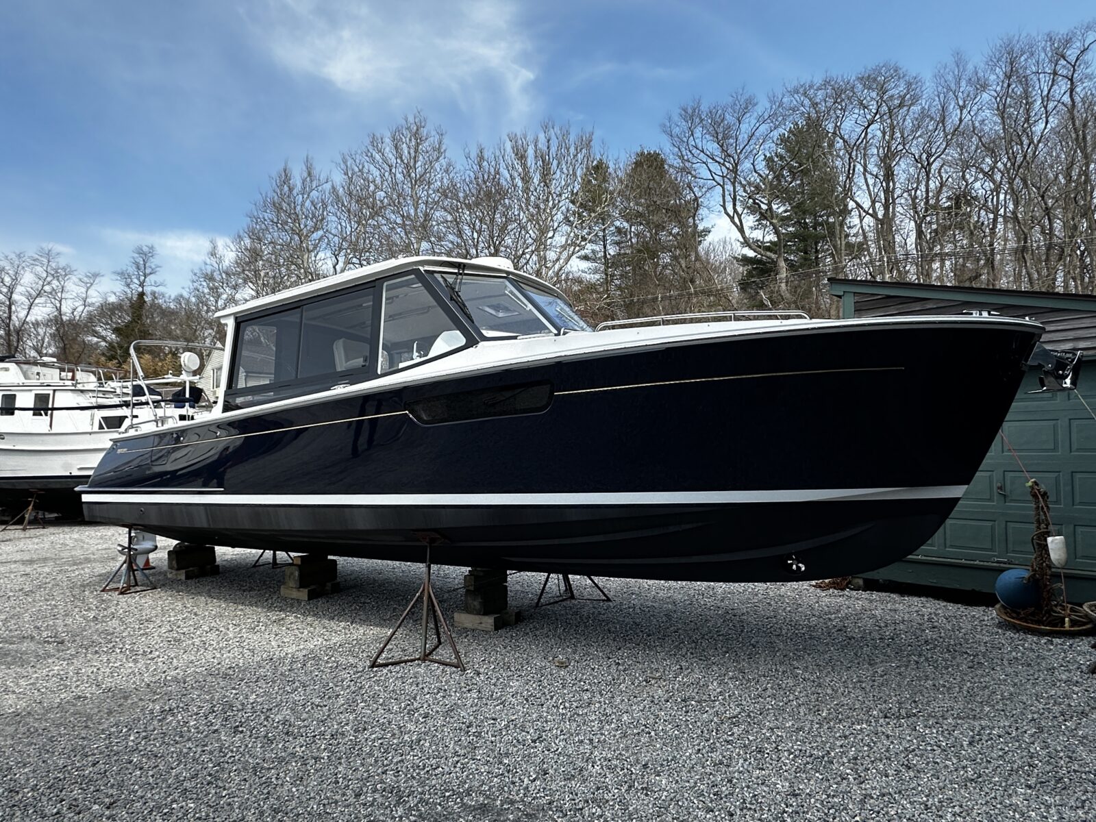 One by one, the covers are coming off, revealing beautiful detailed craftsmanship and pristine condition beneath on this 2026 MJM 38X and 2023 Grady White Freedom 307. Our service team has been hard at work unwrapping and commissioning these beautiful boats so they can be launched back into the water where they belong.
