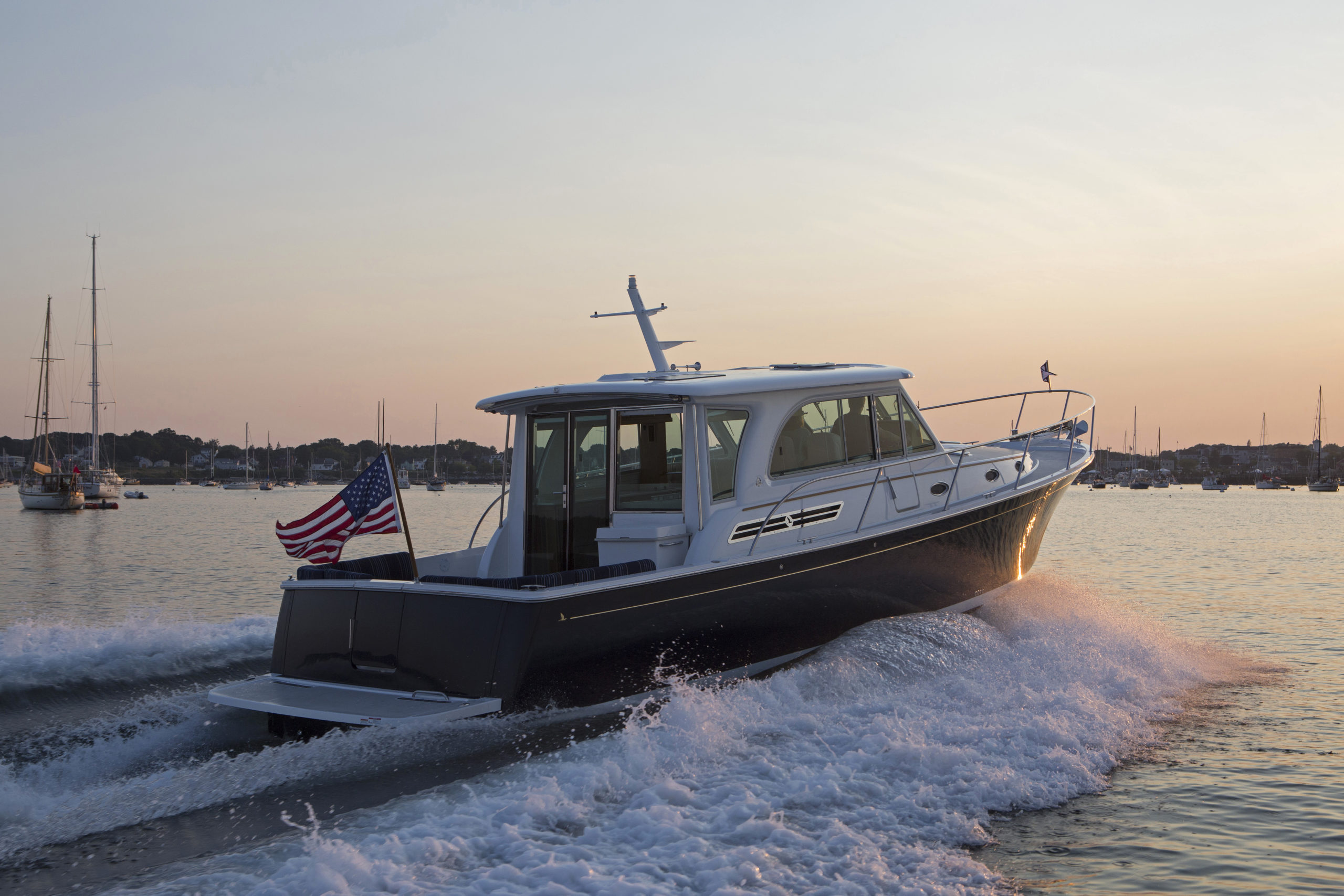 Touted as the flagship vessel of the Back Cove line, the 41 is elegant, spacious, and extremely maneuverable. The main deck features a central galley, with a ceramic cooktop, convection microwave, dual refrigerated drawers, that’s convenient to the open air cockpit as well as the salon. Her U-shaped settee to starboard is easily converted to a dinette functioning both as a comfortable lounge area or a dining space to enjoy meals. The interior contains two staterooms with private heads, providing comfort while cruising. The single diesel engine and straight shaft provide plenty of oomph and make this boat a perfect choice for serious cruisers.