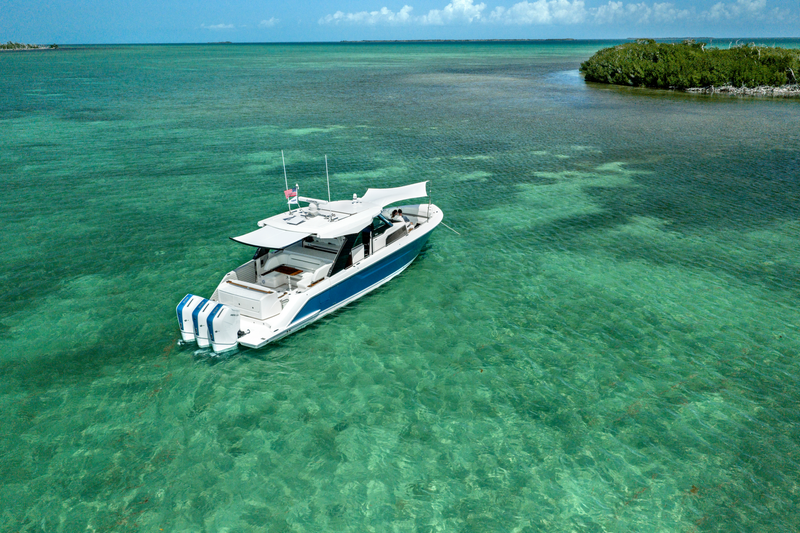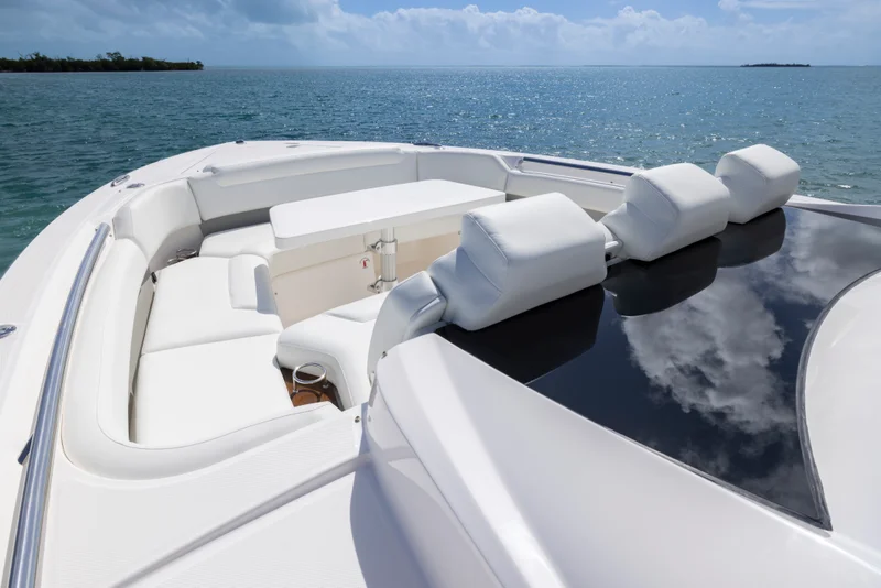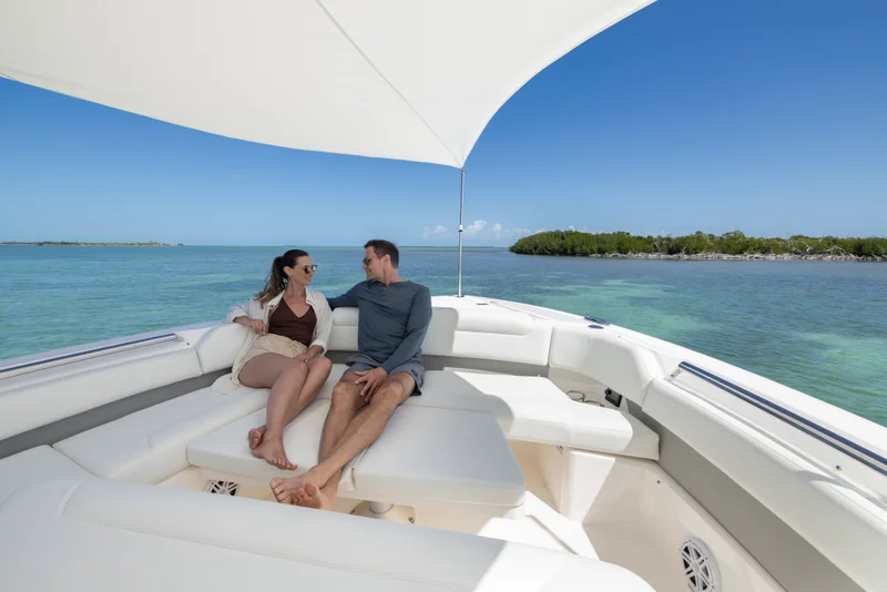 When the sun is strong, the optional bow shade provides welcome cover, turning the bow into an all day hangout spot. With a transforming table that quickly shifts the space from lounge to dining area, the bow is as versatile as it is comfortable, making it one of the best places to spend time on the boat.