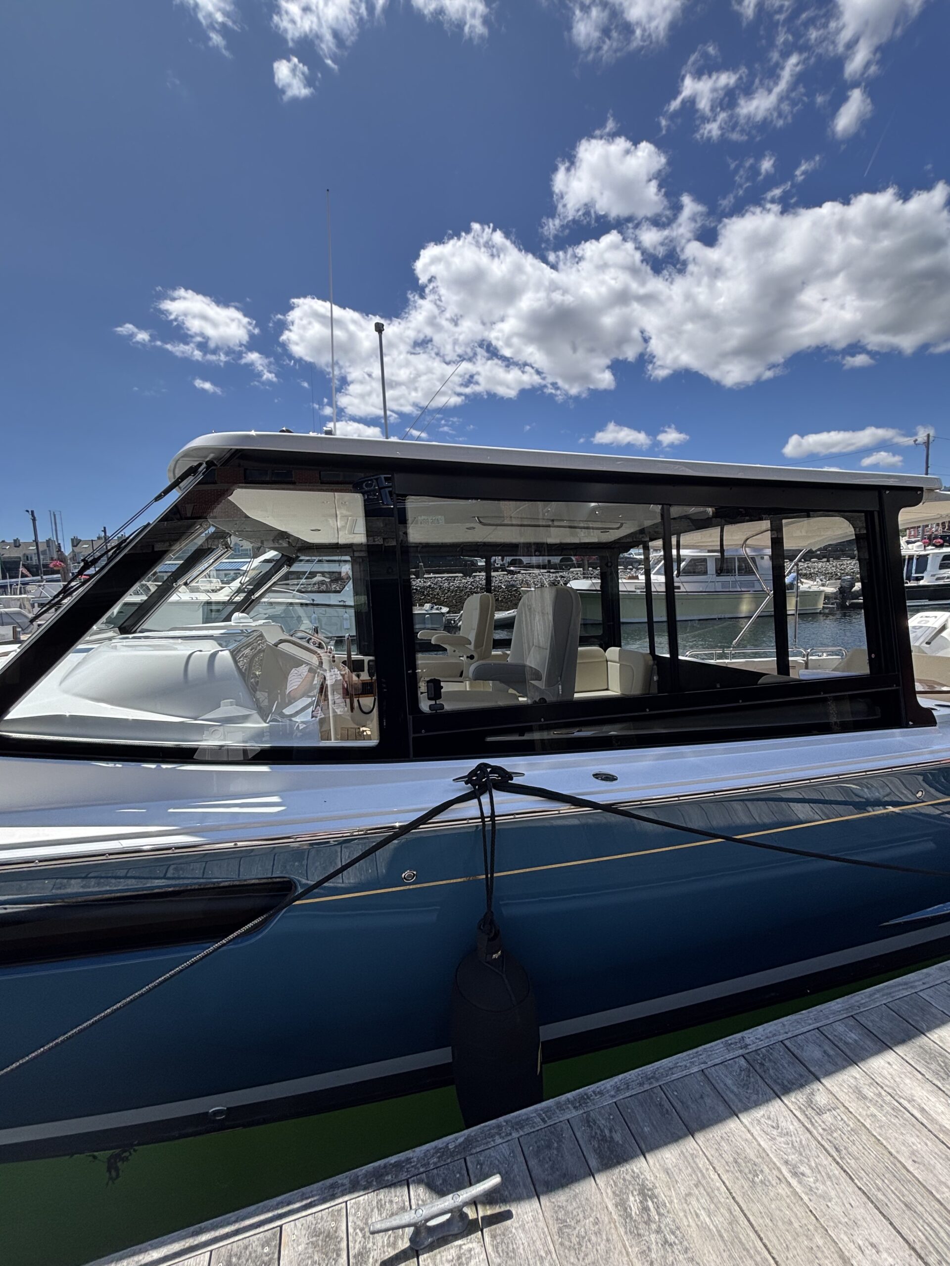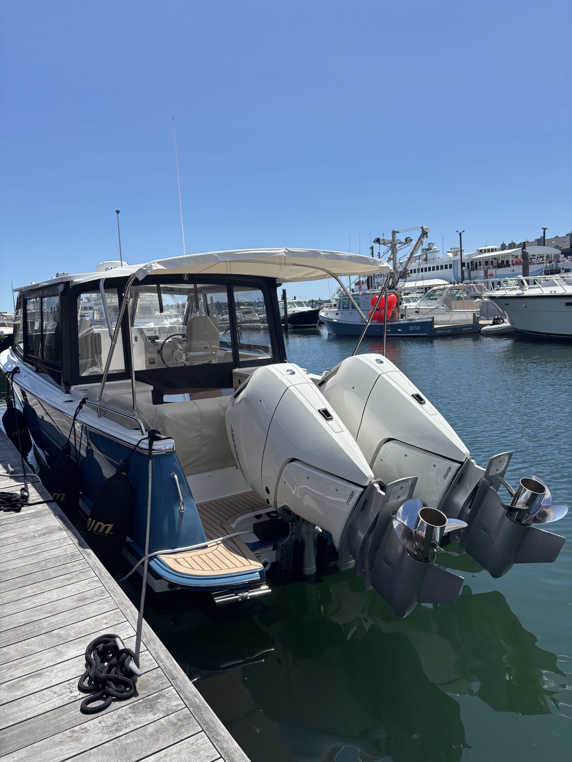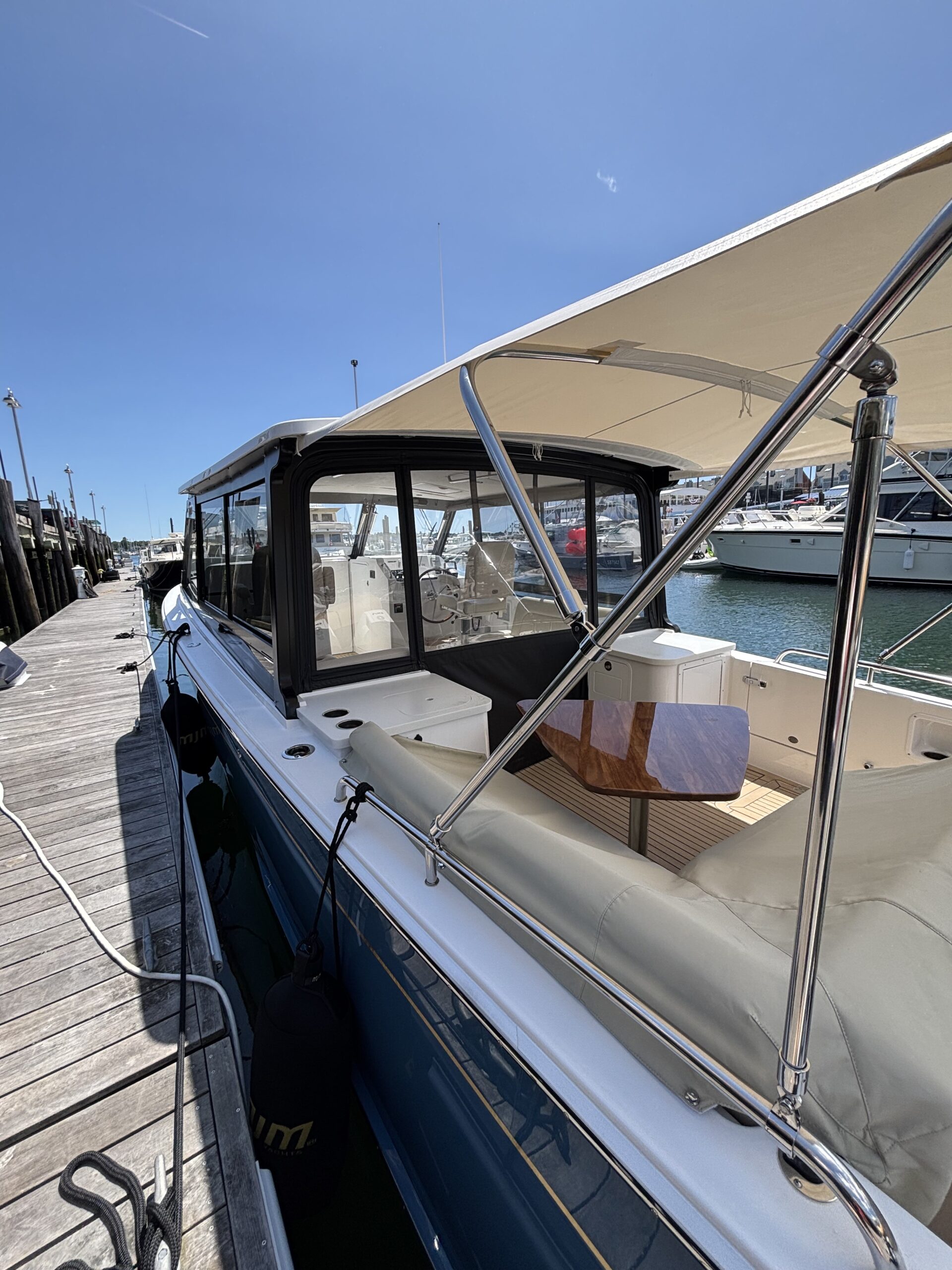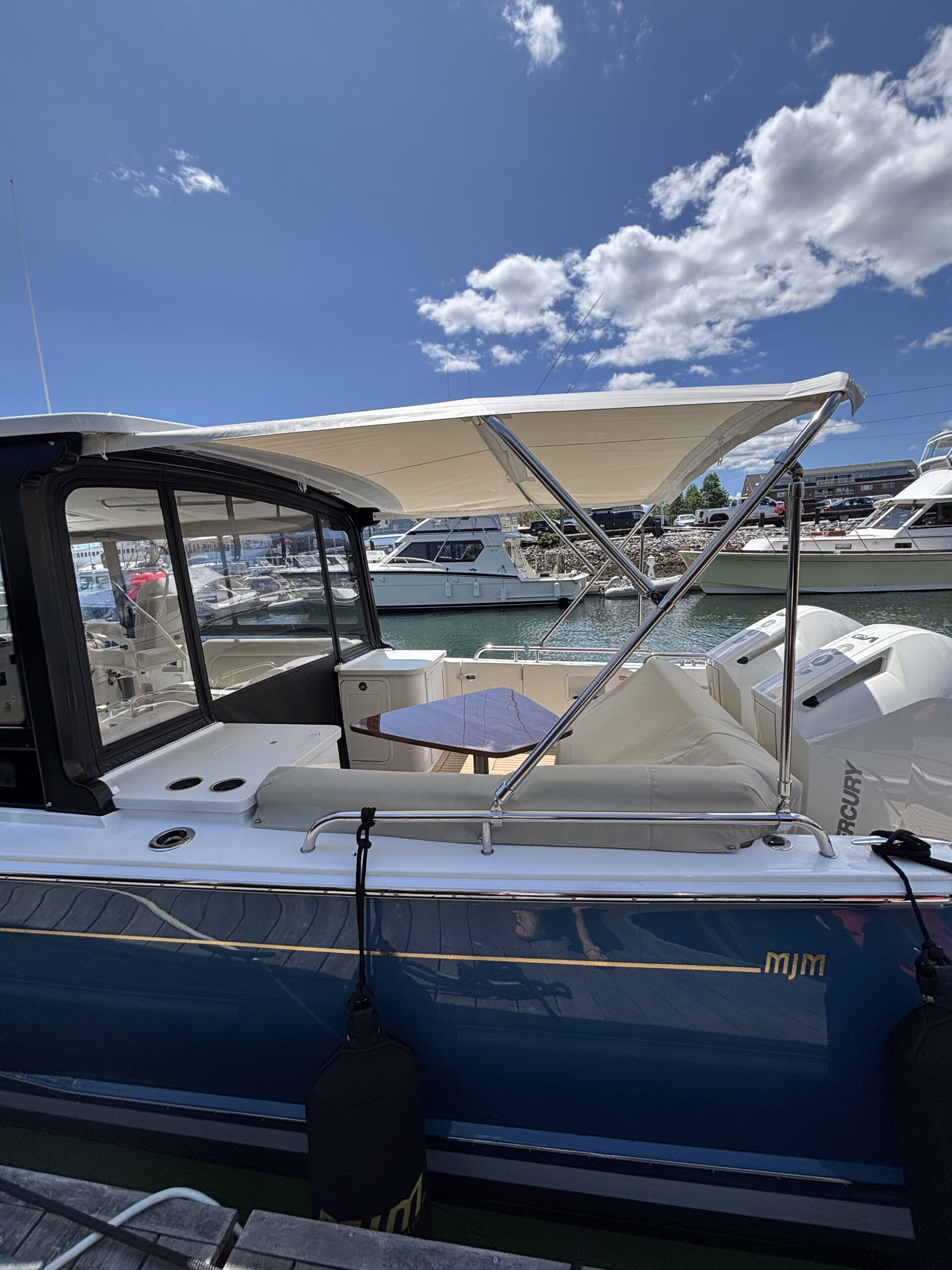 The MJM 3 is the ultimate day yacht for those who crave performance and style. Designed for all-weather comfort with a fully enclosed pilothouse and innovative flush deck layout, she delivers luxury with purpose. Spacious seating and an open cockpit invite you to relax and entertain with ease. Twin outboards, joystick control, and an advanced epoxy composite build make for smooth, efficient, confident cruising.
