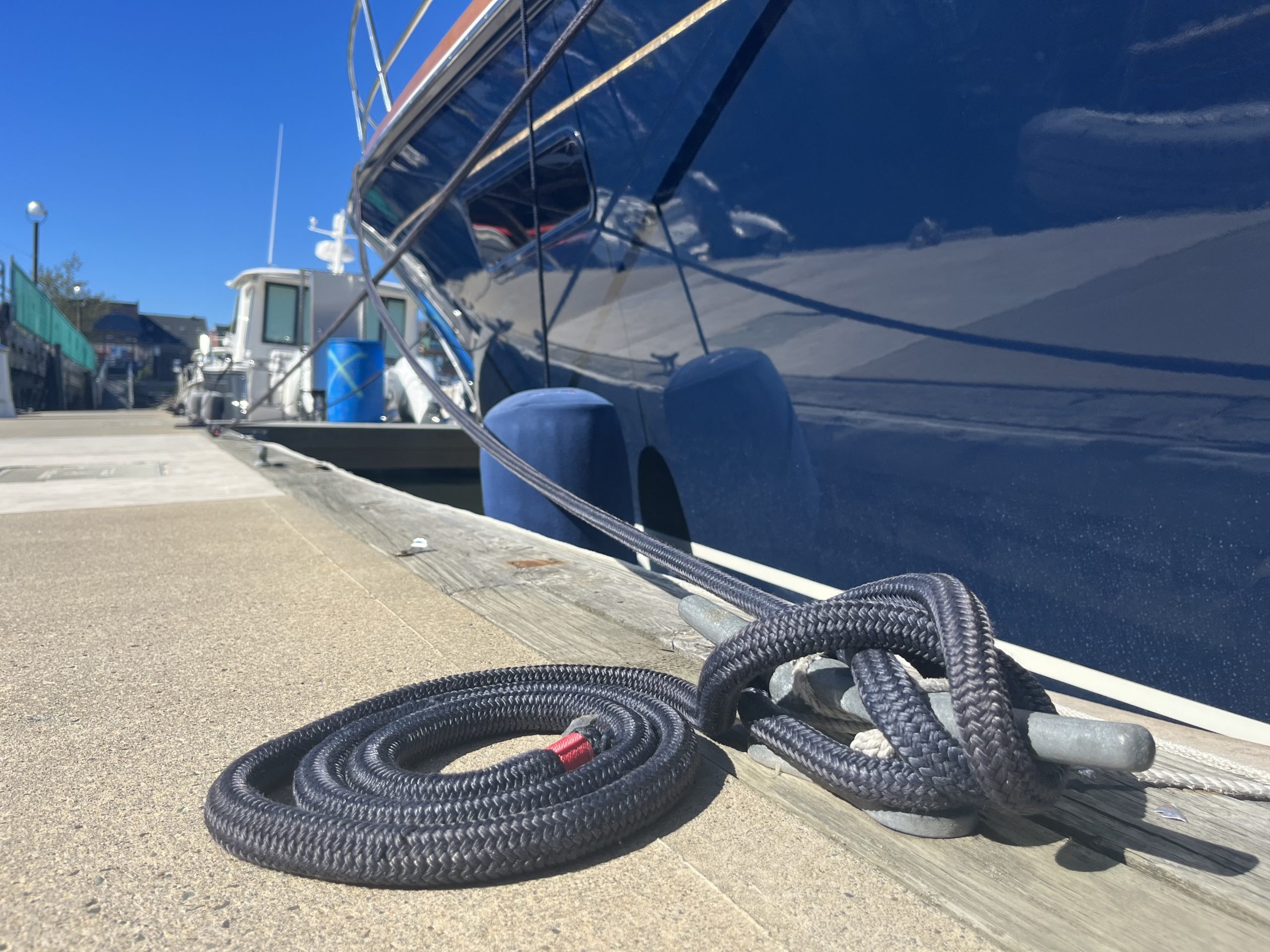 - Coiled line sitting on the dock