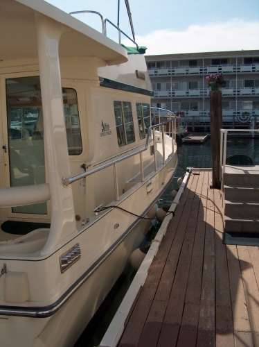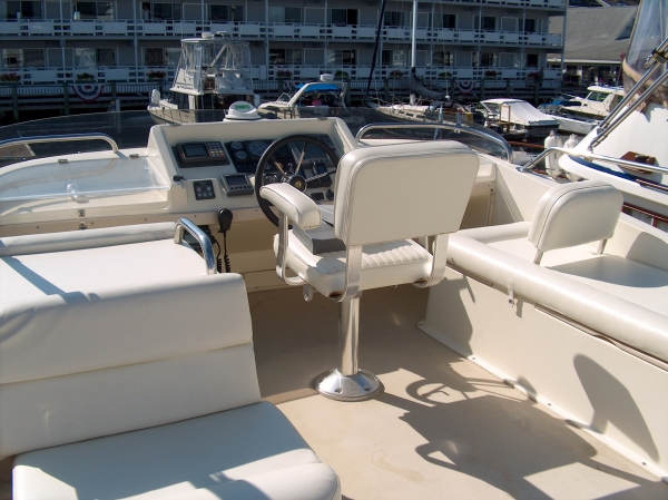 This innovative design provides the best of many style boats..efficiency and roominess of a single diesel trawler, cockpit of a convertible, and a great flybridge. One of only a few on the market, WHIT'S END is worth your first and second look. Trades considered.