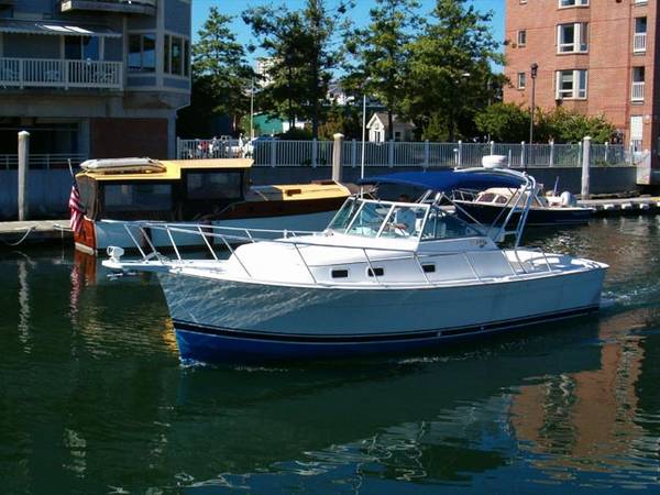 A beautiful downeast cruiser reluctantly offered to the market. This 1999 Mainship Pilot 30 includes many amenities such as the all popular 230hp Yanmar diesel, a bow thruster, trim tabs, fresh water washdown, AM/FM/CD stereo, remote searchlight, and more. Electronics included a Raytheon SL72 Radar, Garmin GPS Map 215D, ICOM IC-M59. The custom items are the brushed aluminum radar arch, alcohol stove and a bimini with 3-sided enclosure. Call today to see her in person.
