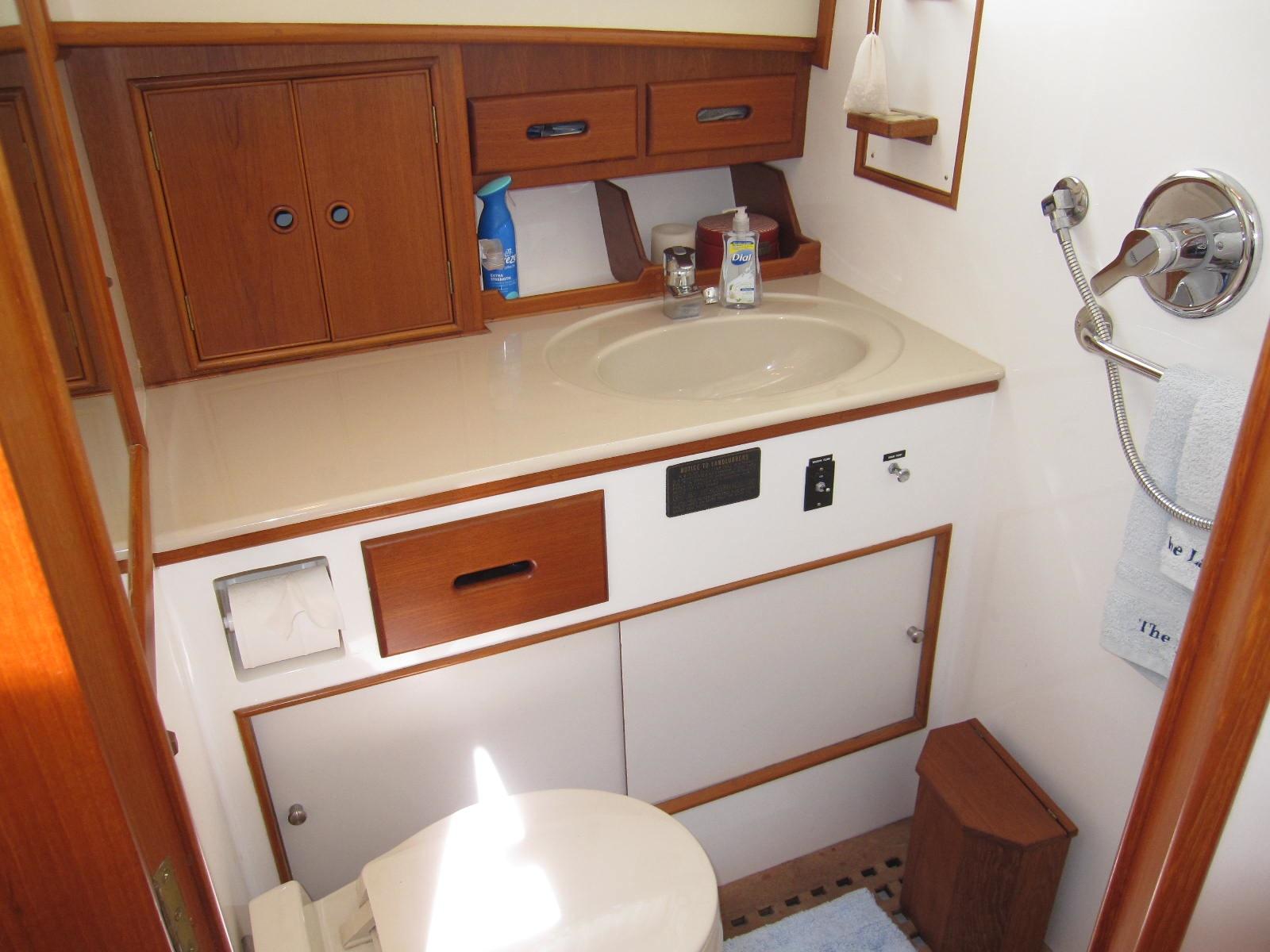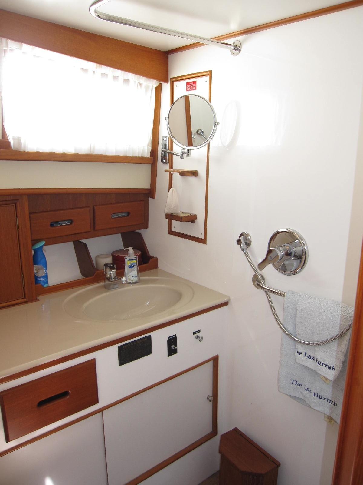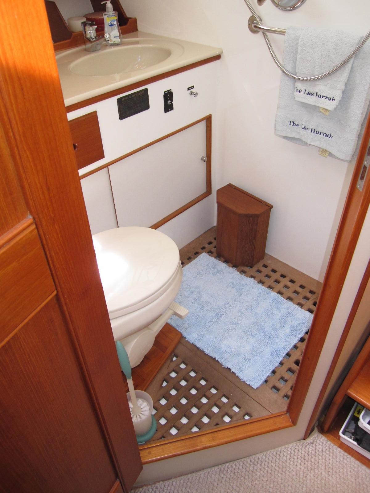 Separate stall shower to starboard