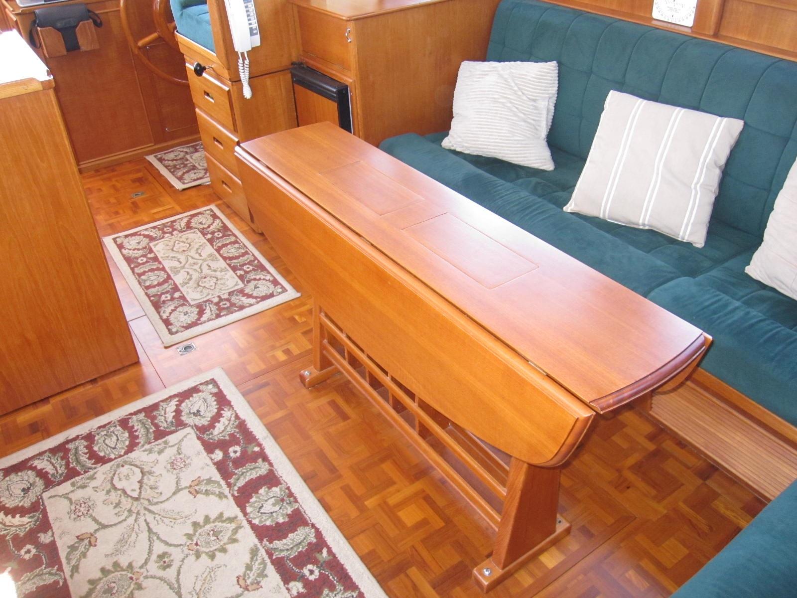 Teak dining table with integrated bottle storage