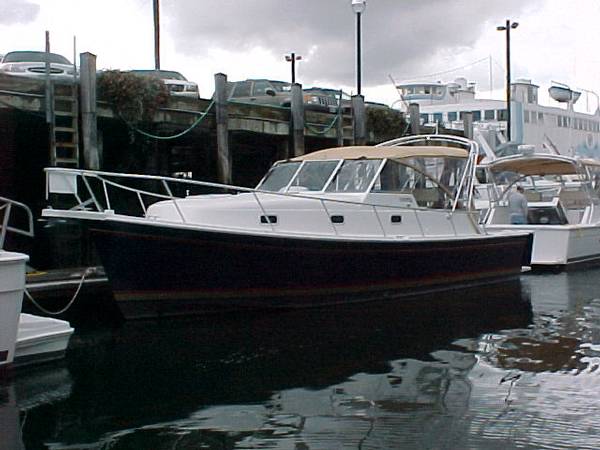 Speed, agility and comfort are hallmarks of the Pilot 34 but economy is not sacrified. Mainship is able to maximize performance without maximizing horsepower. The easily-driven hull is powered by twin reliable diesels mated to large reduction gears and efficient propellers to derive the best, most economical ride possible. Handling around the docks is a snap with the twin screw. Once down below, you'll see a large head complete with Corian-covered vanity, loads of storage, shower, and even an electric head. The teak-trimmed galley offers incredible storage, ample Corian counter space, microwave, a double burner electric stove, and refrigerator/freezer. The massive dinette converts into a double-berth to accommodate guests and plenty of storage is included. A color TV/VCR is standard and can be viewed from the dinette, galley or forward stateroom. Forward in the private stateroom, hanging lockers and drawers will allow plenty of storage for extended weekend or month long trips. Extra-long innerspring berths guaratee a great night's sleep. The cockpit is huge to allow many people to move freely about. Call us at DiMillo's Yacht Sales for more information.