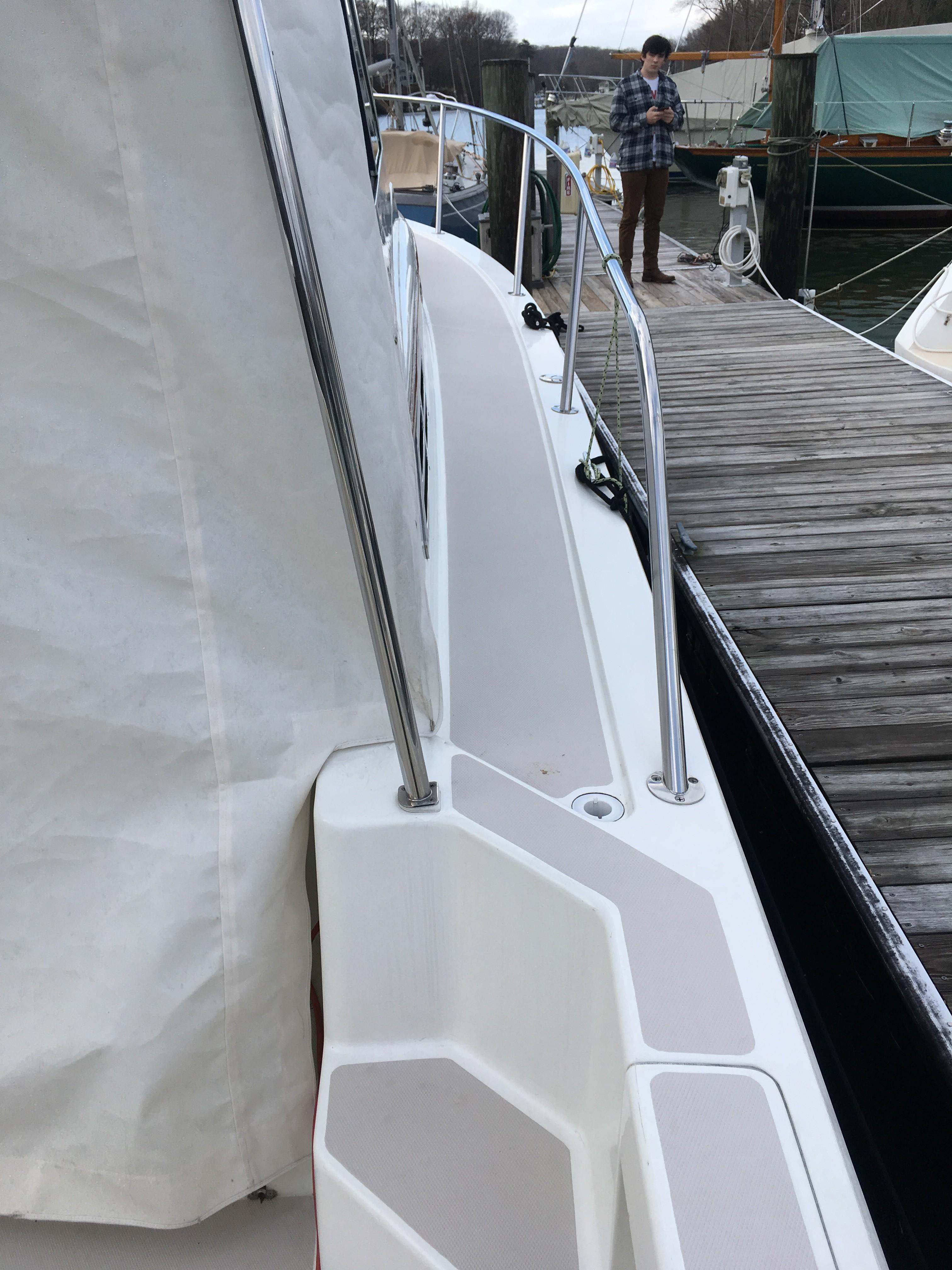 Port and starboard molded steps leading to side and fore deck