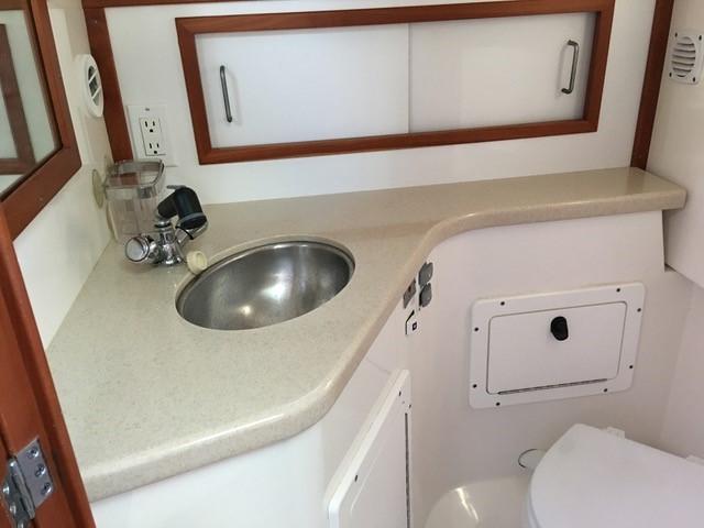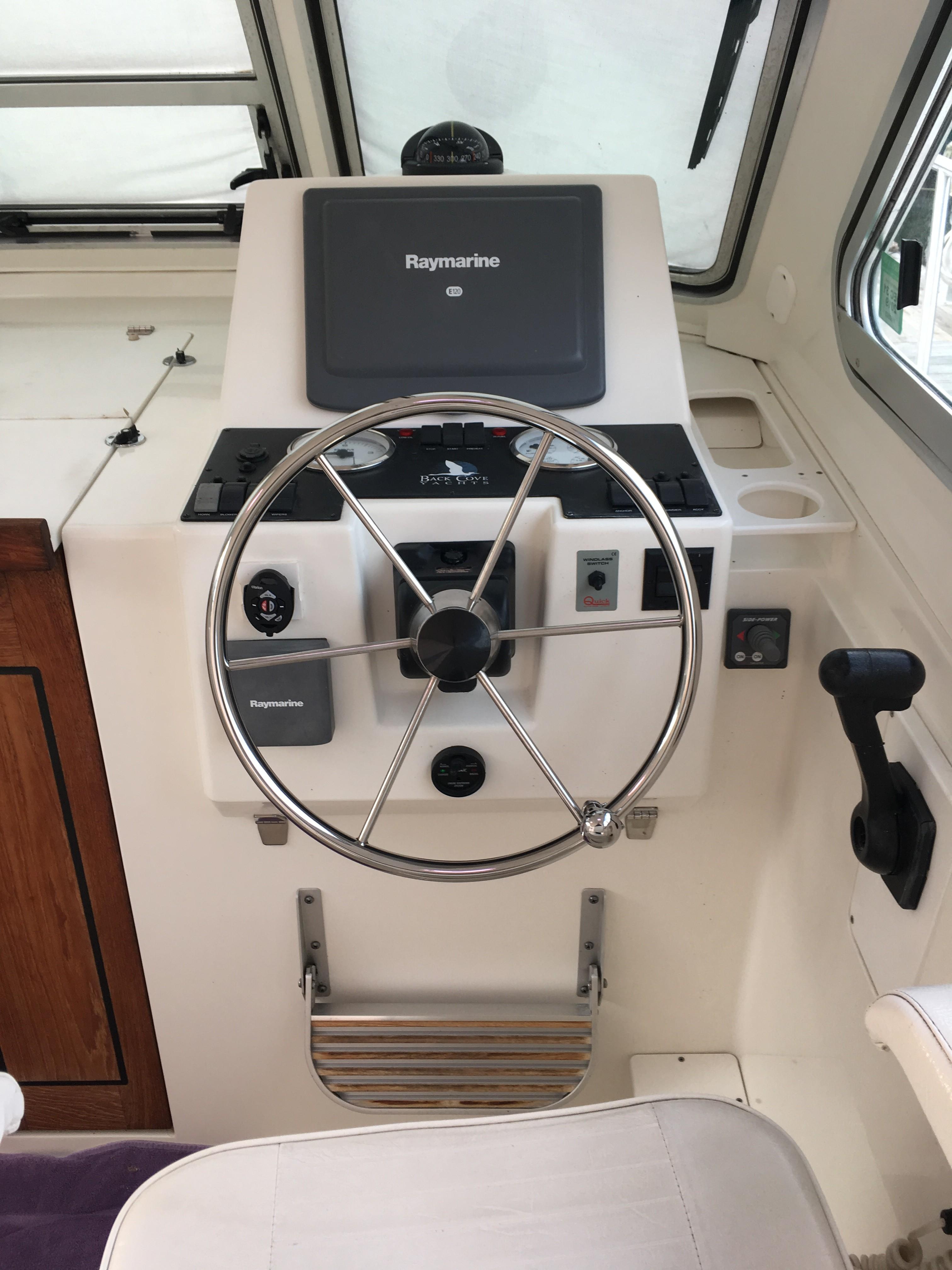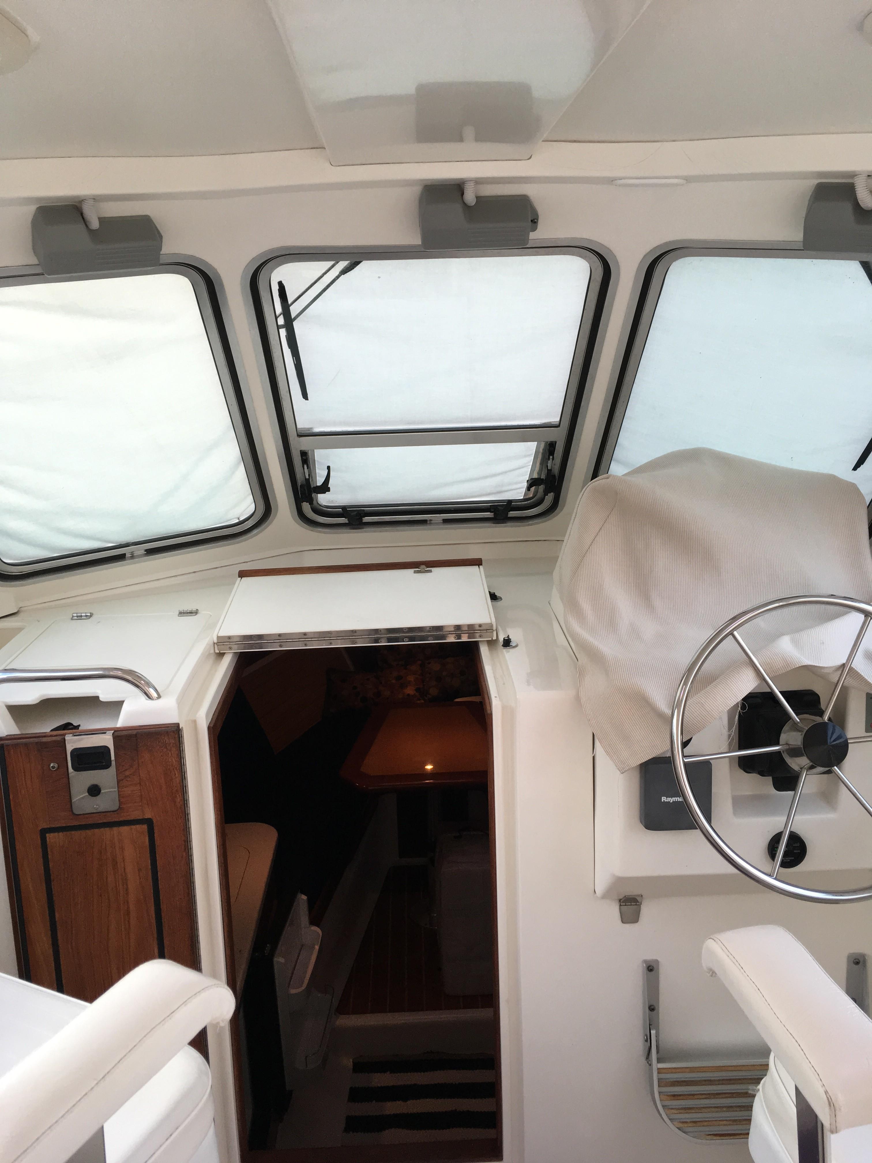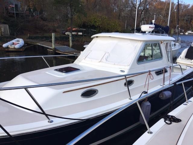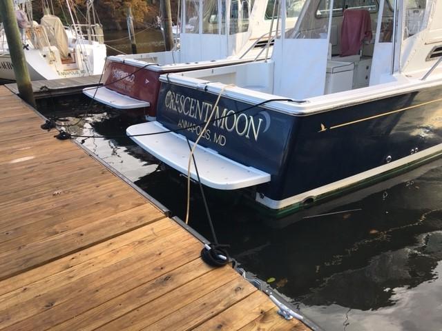 Crescent Moon has been been loving looked after by her original owners and has been the star of many regattas as a mark boat. She is equipped with numerous upgrades including hard top, generator, bow thruster, AC/Heat, Ray Marine E-120 multi-display with Smart Pilot, Depth, and Radar, Horizon Phanton PS2000 VHF radio with dual antenna mounts along with raw water anchor wash down pump mounted in Anchor locker, Engine & Generator fuel polishing system and GROCO Safety Seacock plug for Engine/Generator/AC intakes, which makes winterizing a snap
