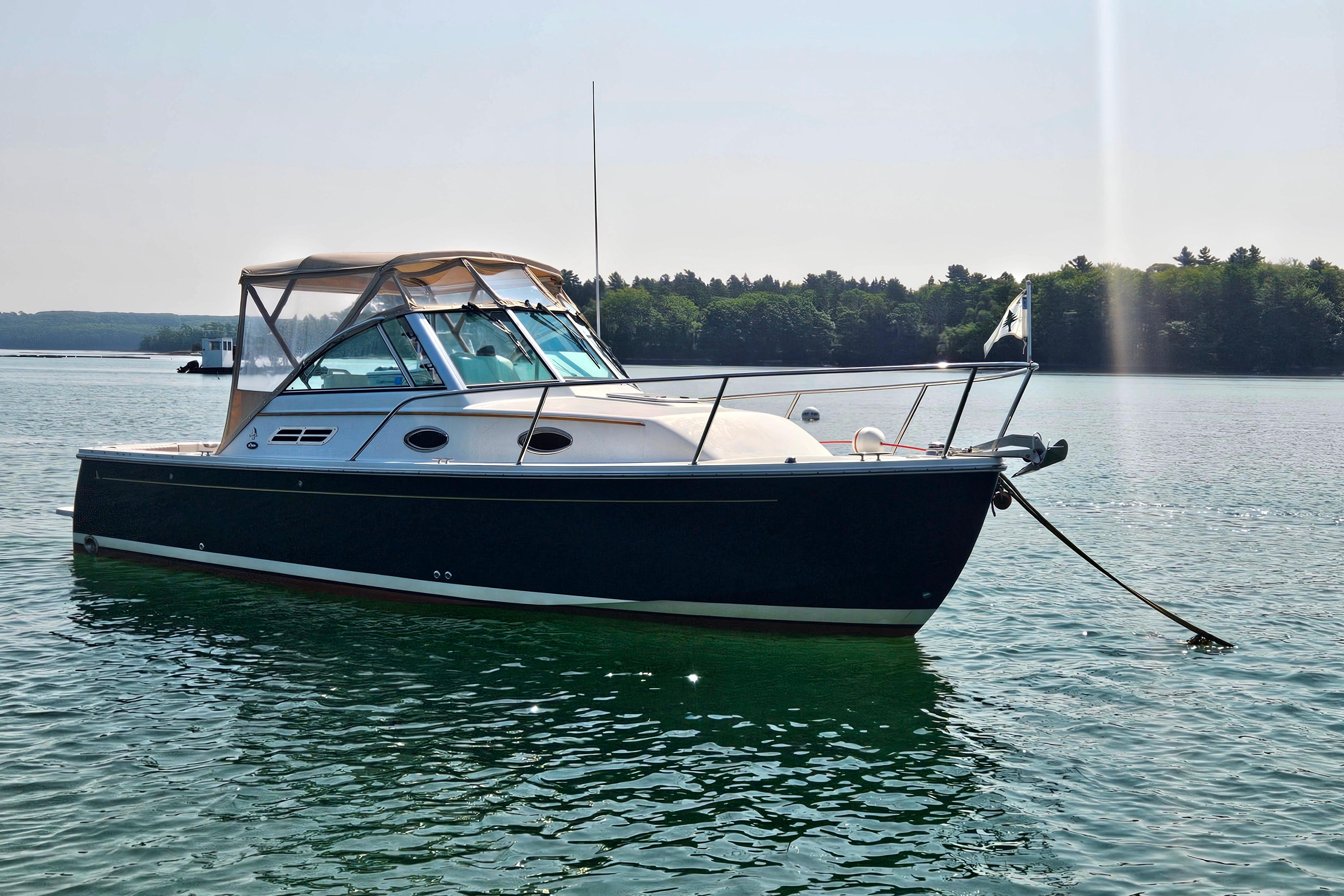 The Back Cove 26 is a single-engine, classic Downeast-style motor yacht designed for efficient cruising and easy handling, often compared to a Maine lobster boat. It is known for its quality construction, comfortable accommodations, and seakindly ride, with key features including a standard bow thruster and a single diesel engine for fuel efficiency. Below deck, it features a cherry-wood interior with a convertible dinette that sleeps two, a compact galley, and an enclosed head with a shower.