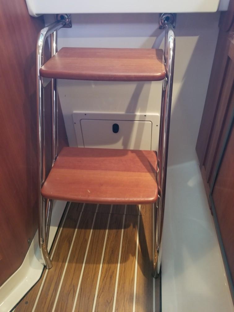 Port and starboard molded steps leading to side and fore deck