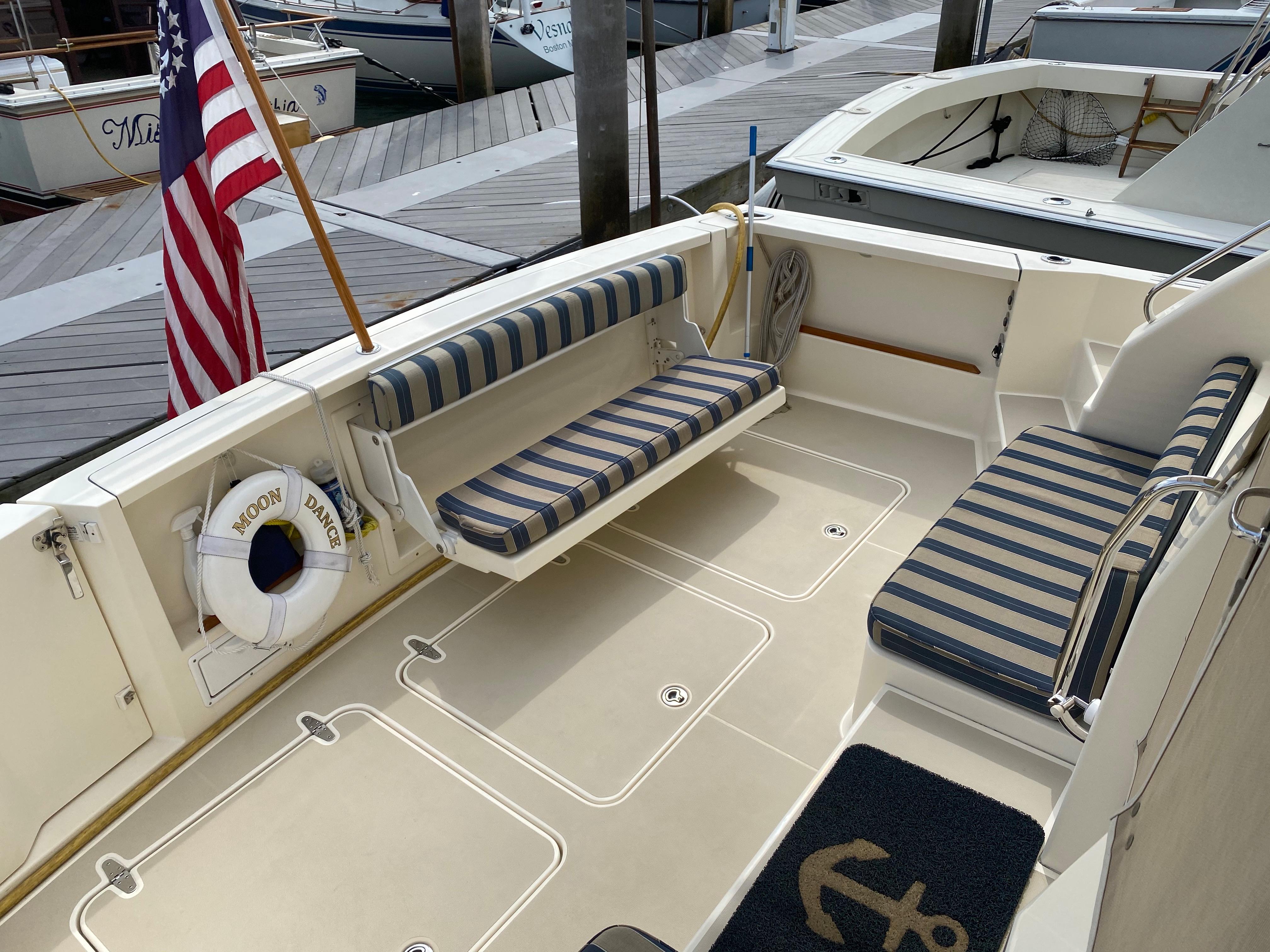 Moondance is a beautiful example of the now legendary 42 Hardtop Express. She features a wide beam and roomy interior, perhaps the best helm deck seating arrangement in the express market, and a functional engine room.