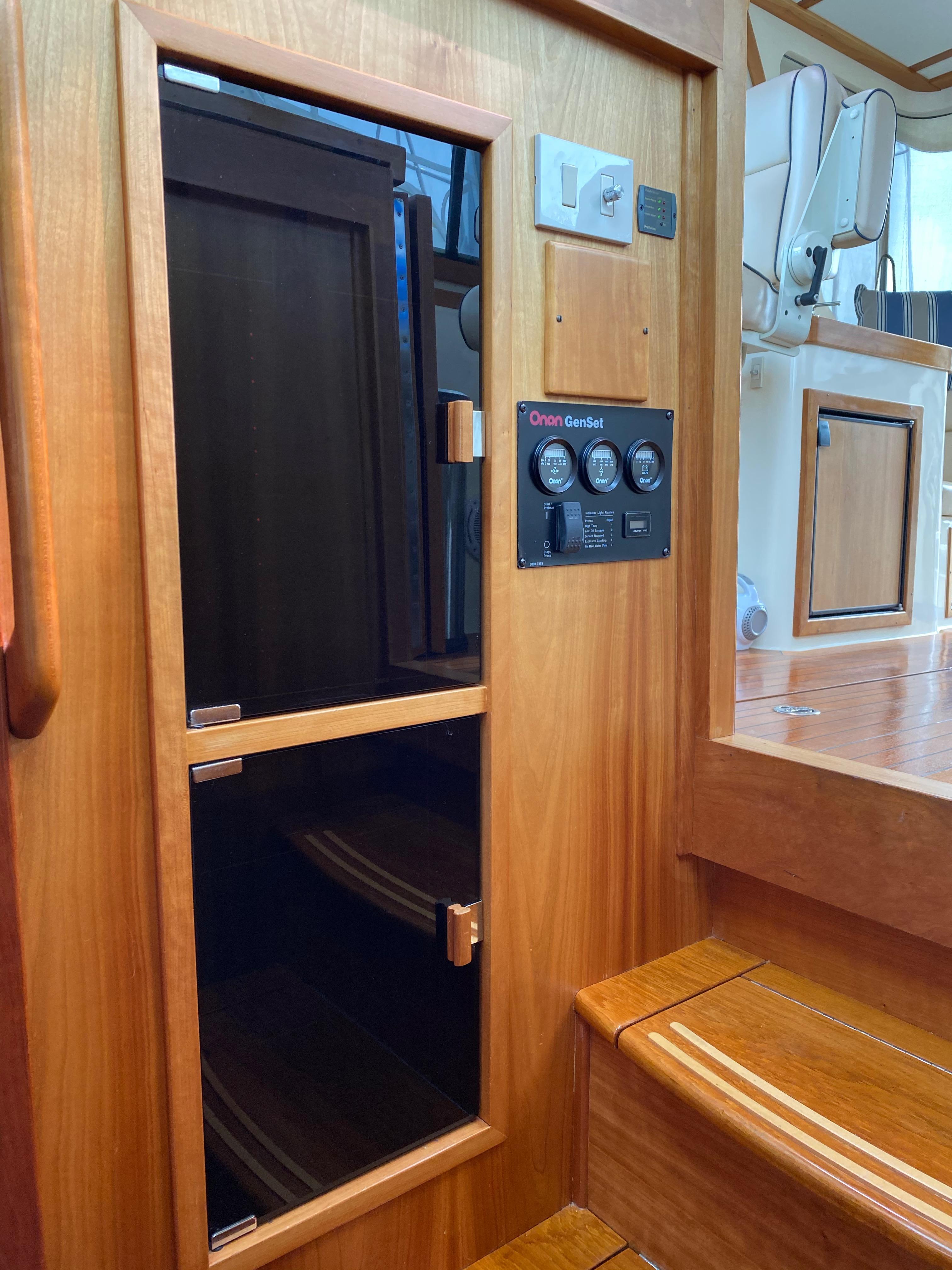 Bass illuminated main circuit breaker distribution panel 120-VAC outlets in each cabin and engine room.