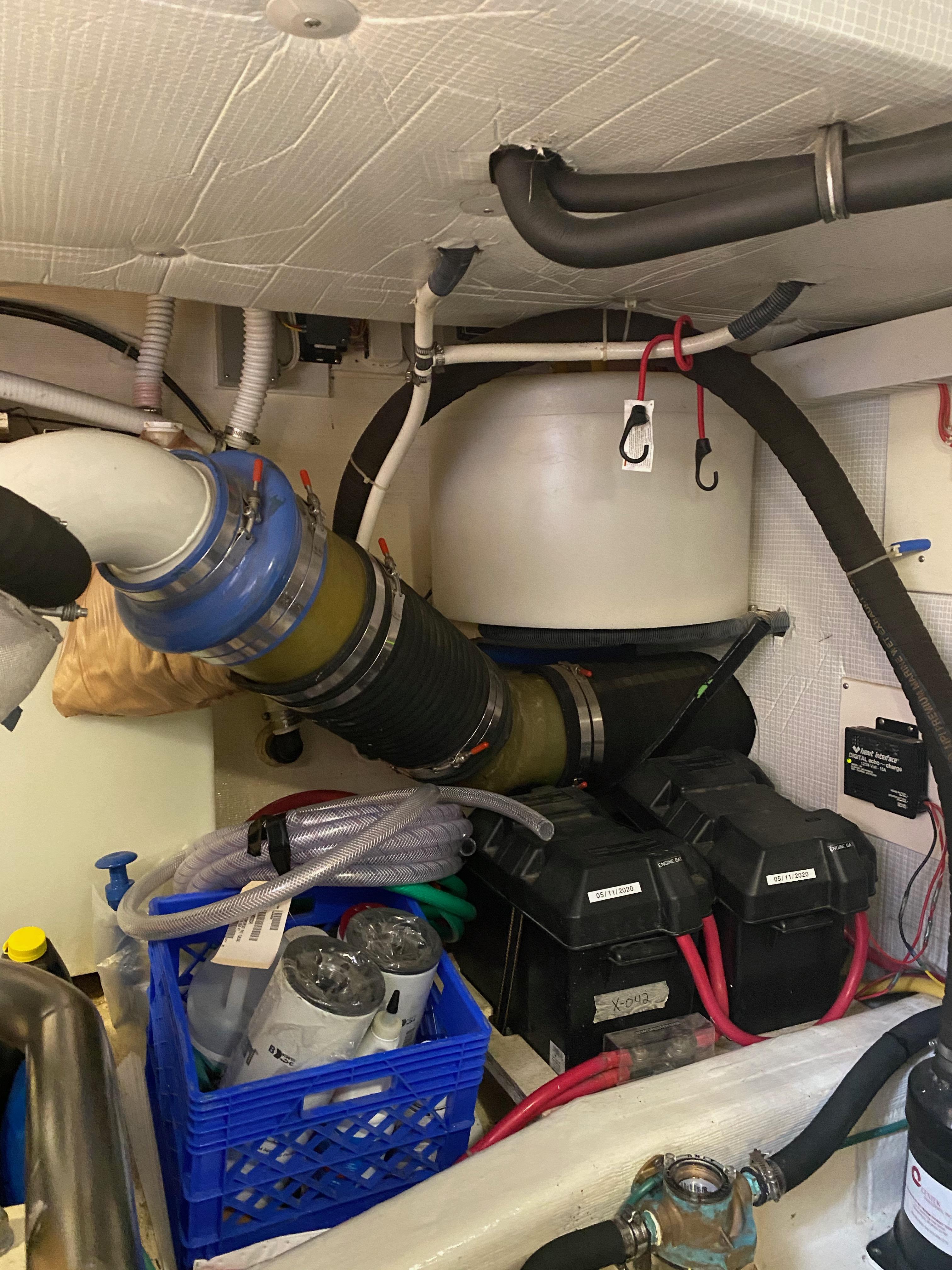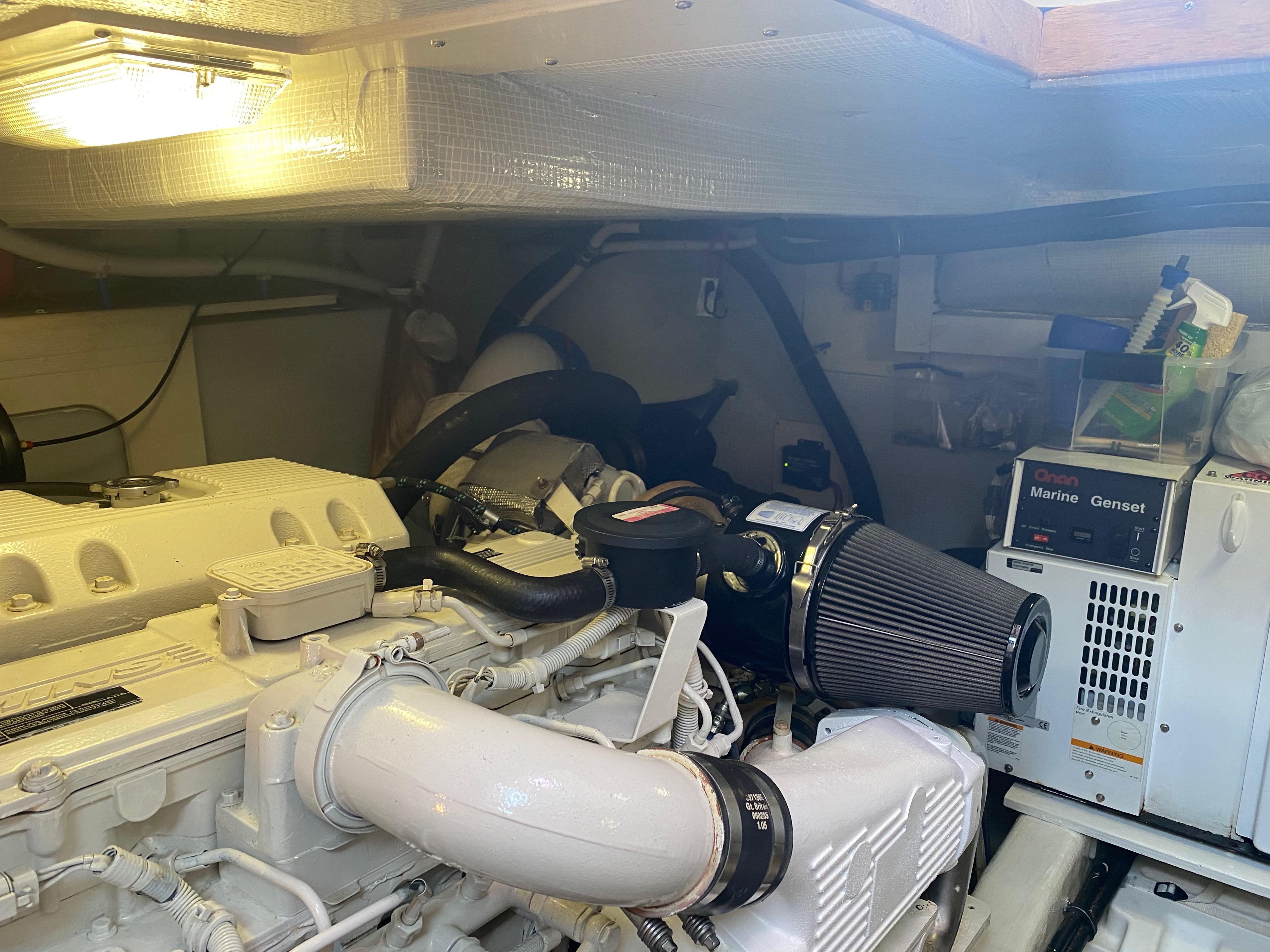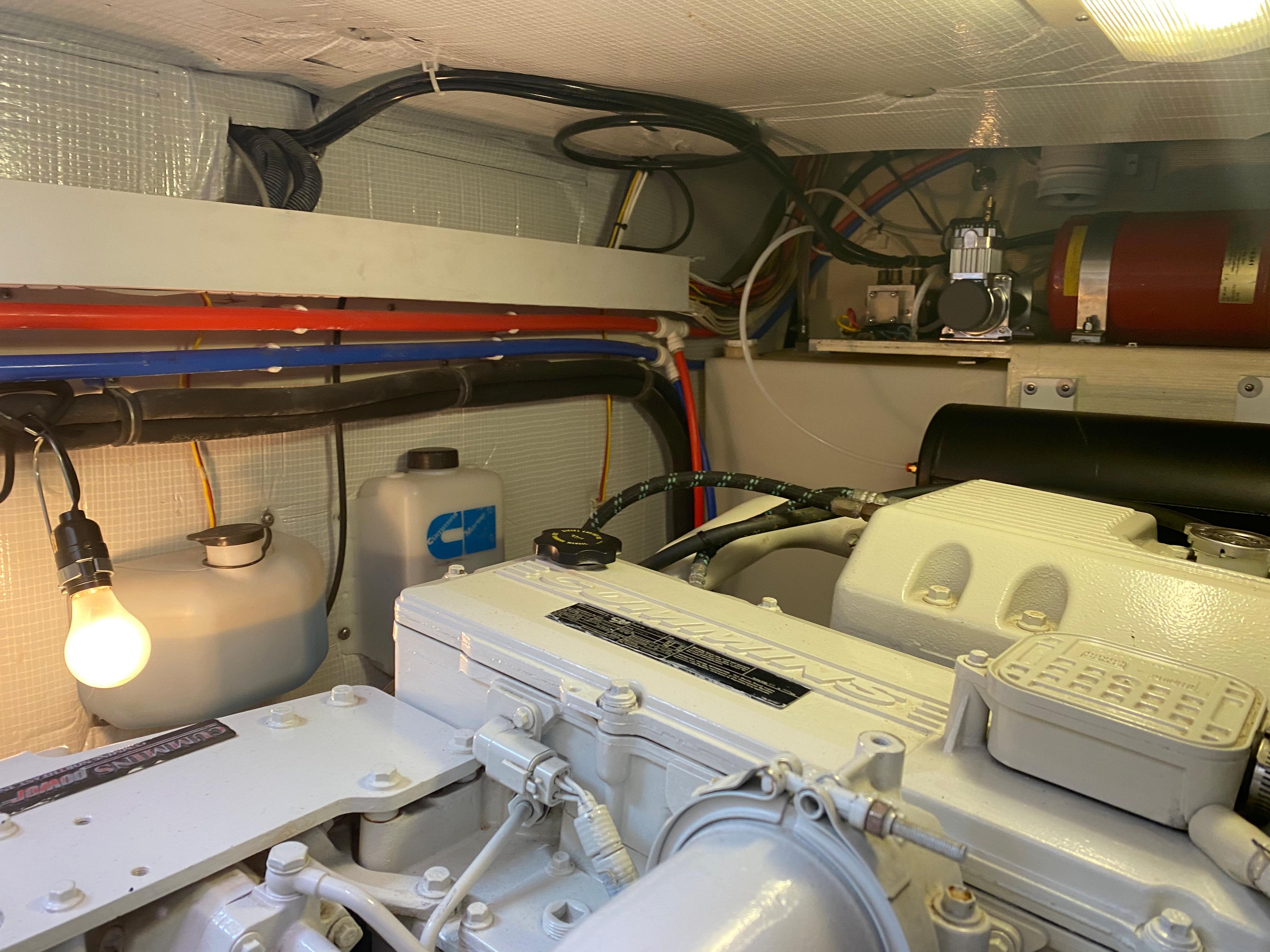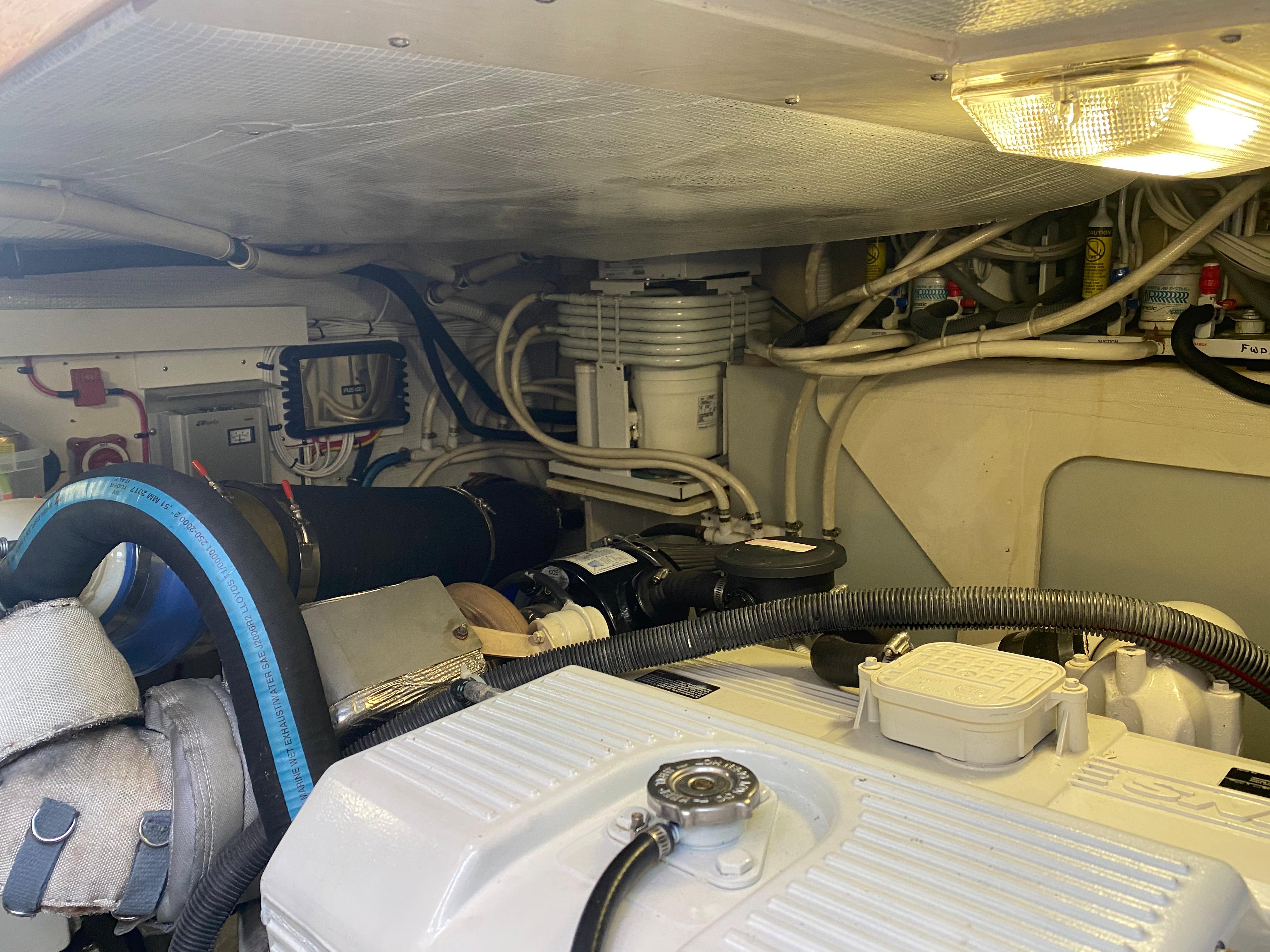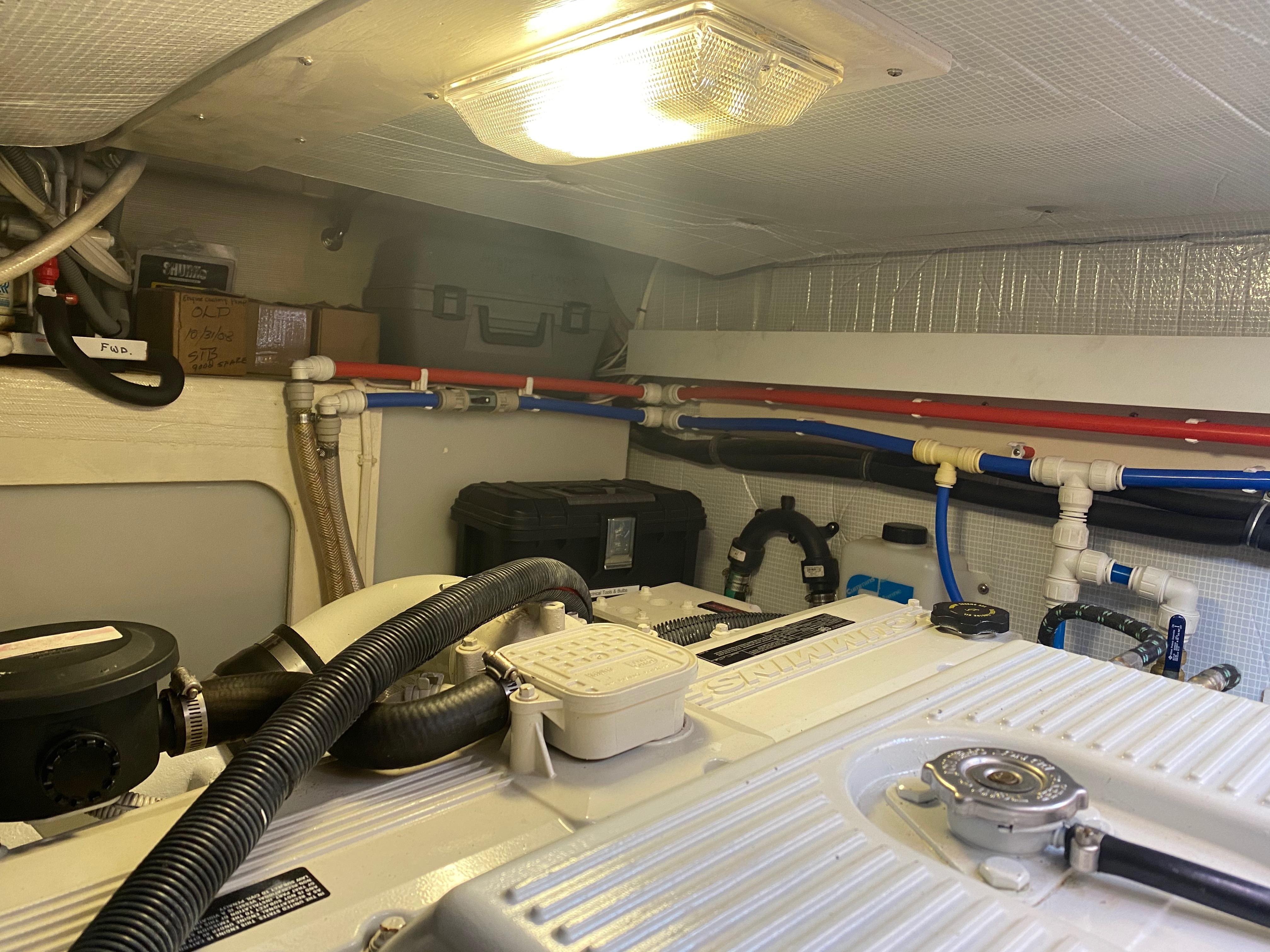 White painted engine room. Fully insulated with Soundown foam noise barrier.