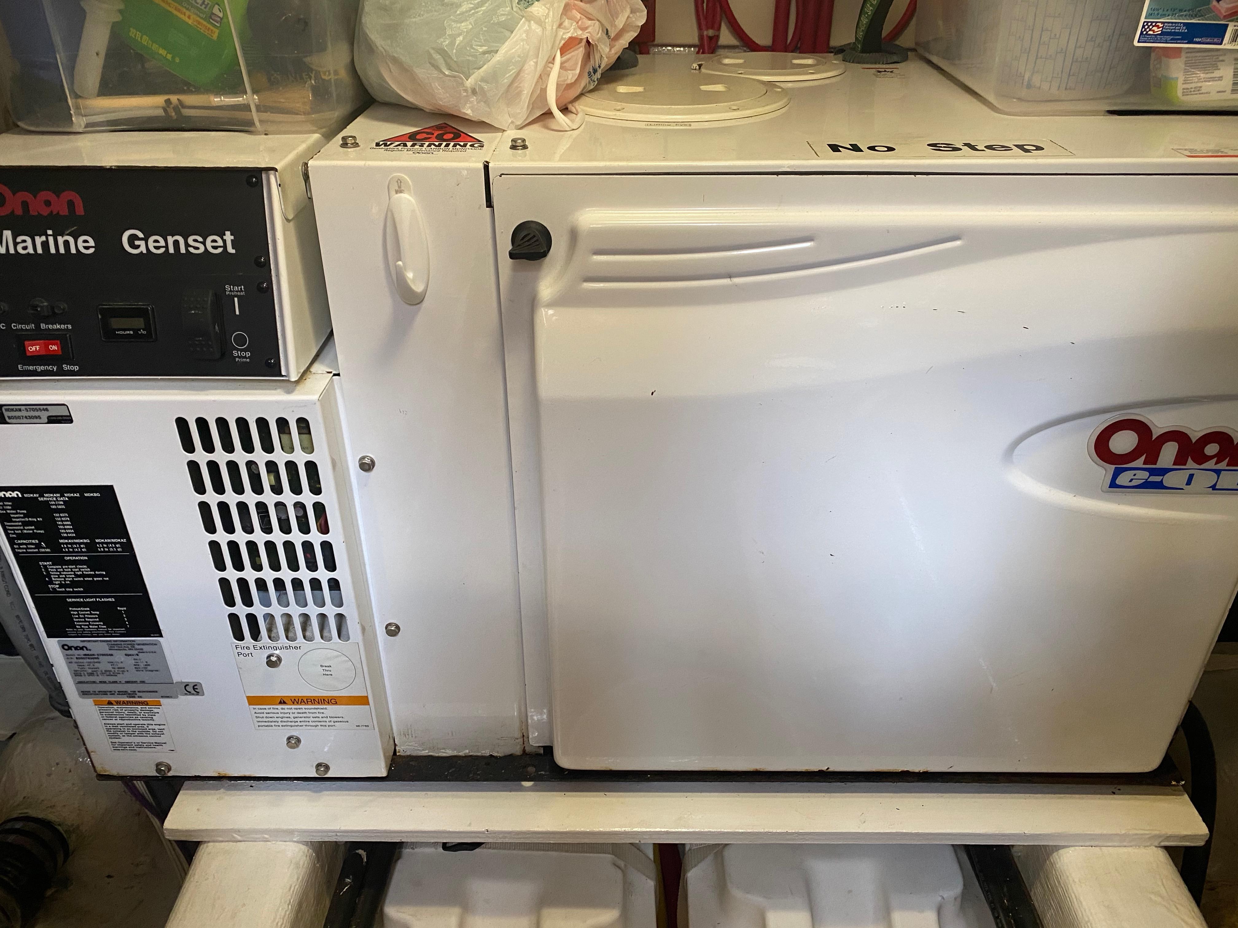 11.5-kw Onan generator with water lift muffler, intake strainer, sound shield, transfer switch and dedicated start battery.