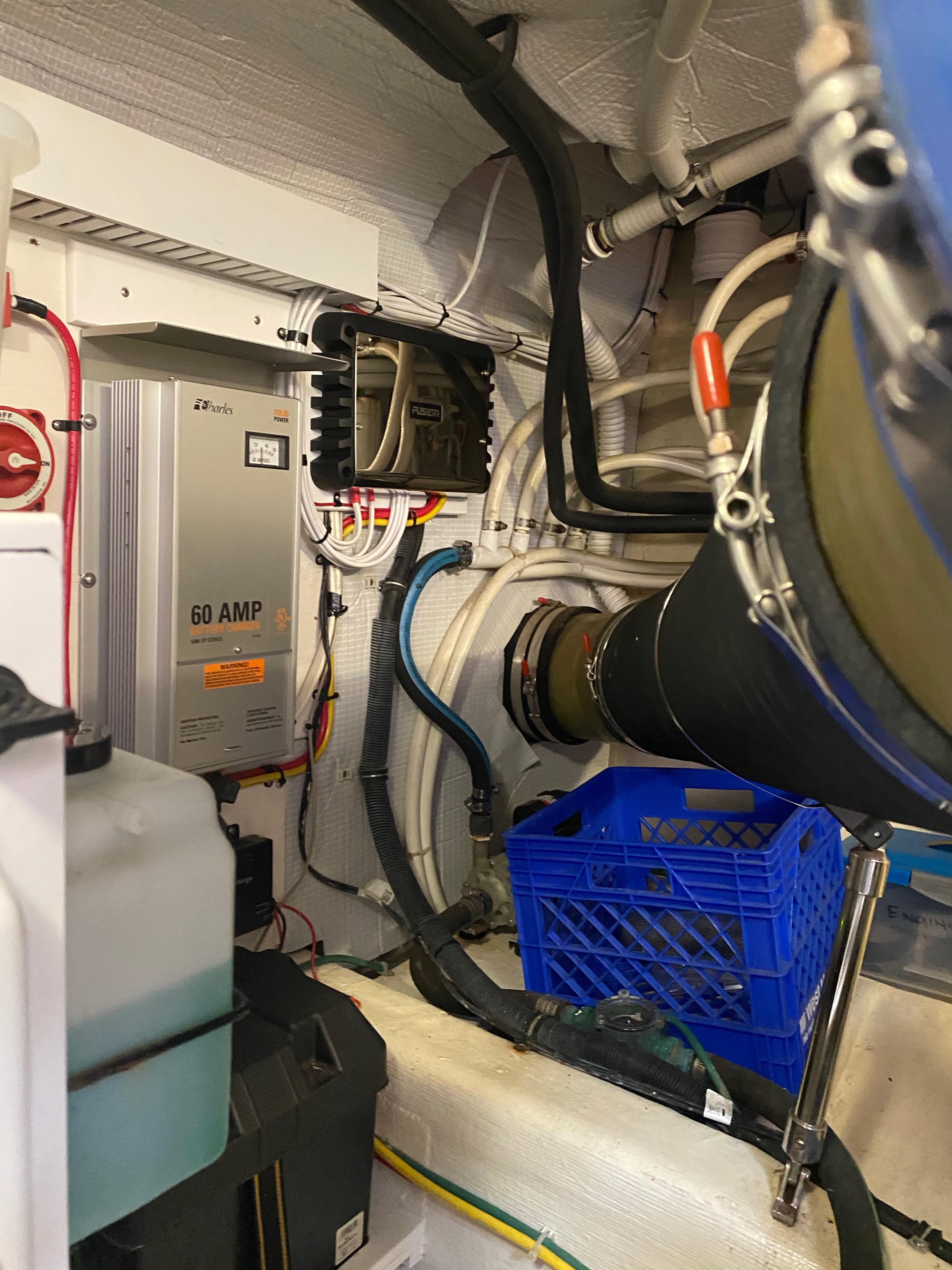 Battery disconnect and emergency crossover switches in engine room.