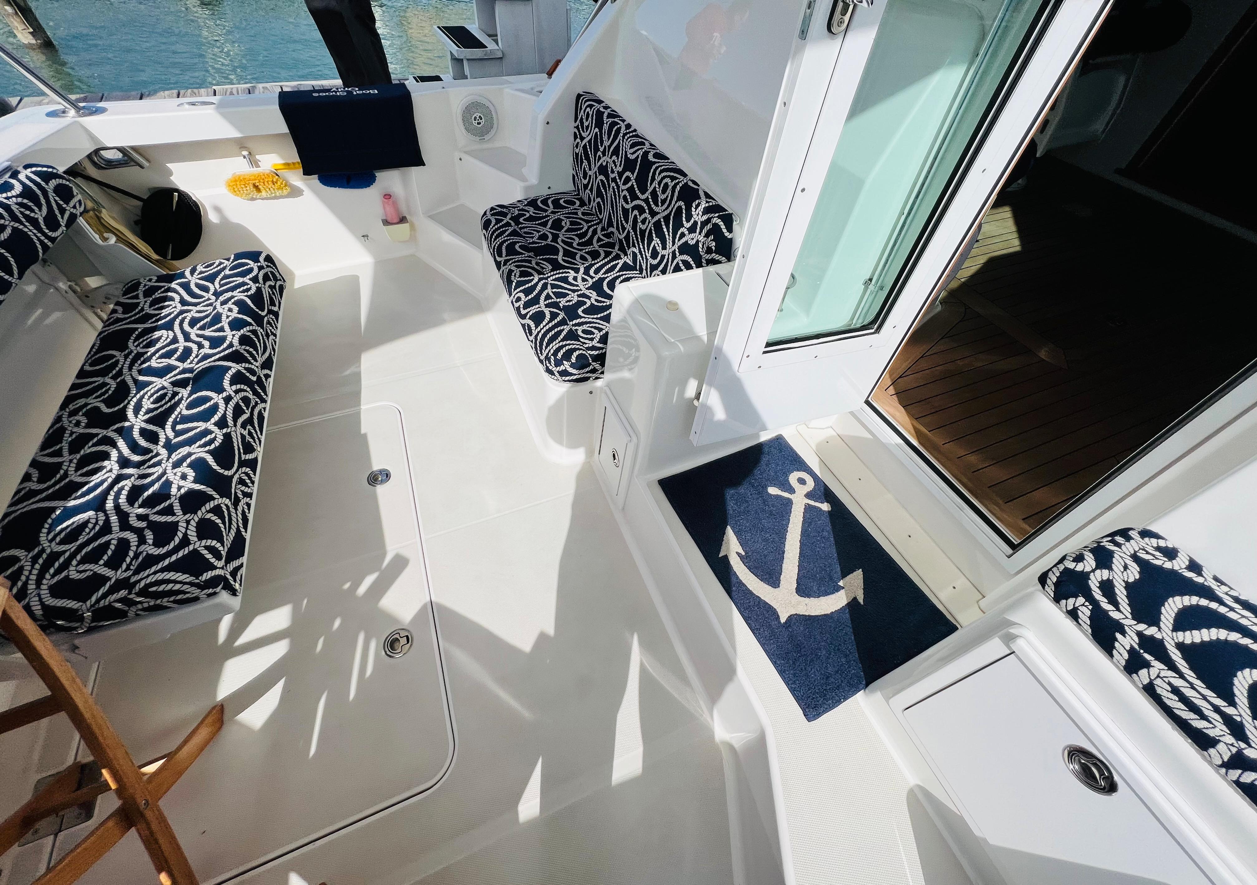 Sunbrella covers for pilot house windows & exterior cushions (2018)