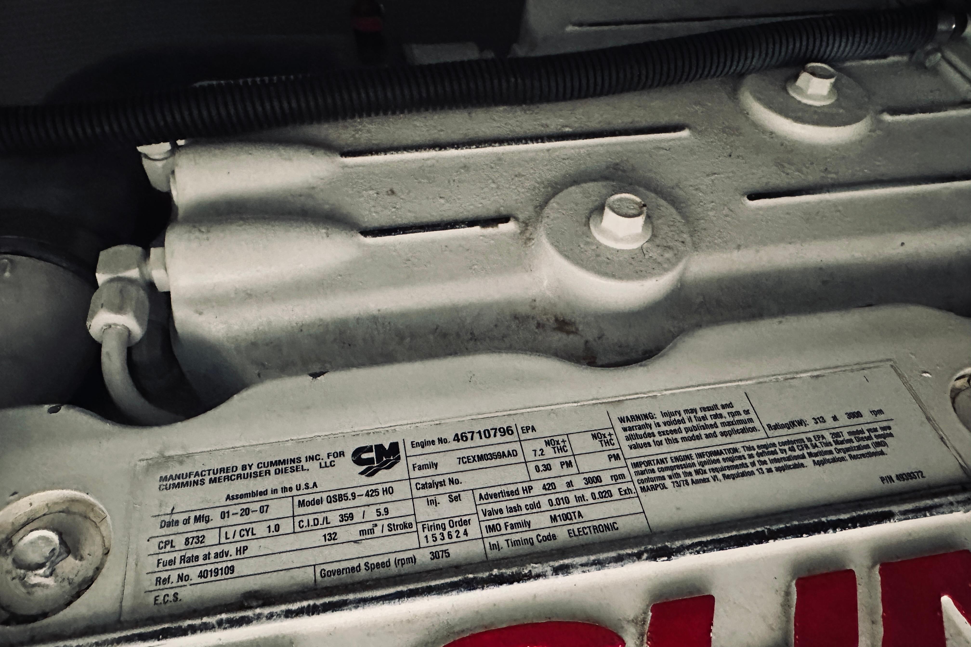 Twin Cummins 425hp QSB5.9 common-rail diesel engines, fresh water cooled