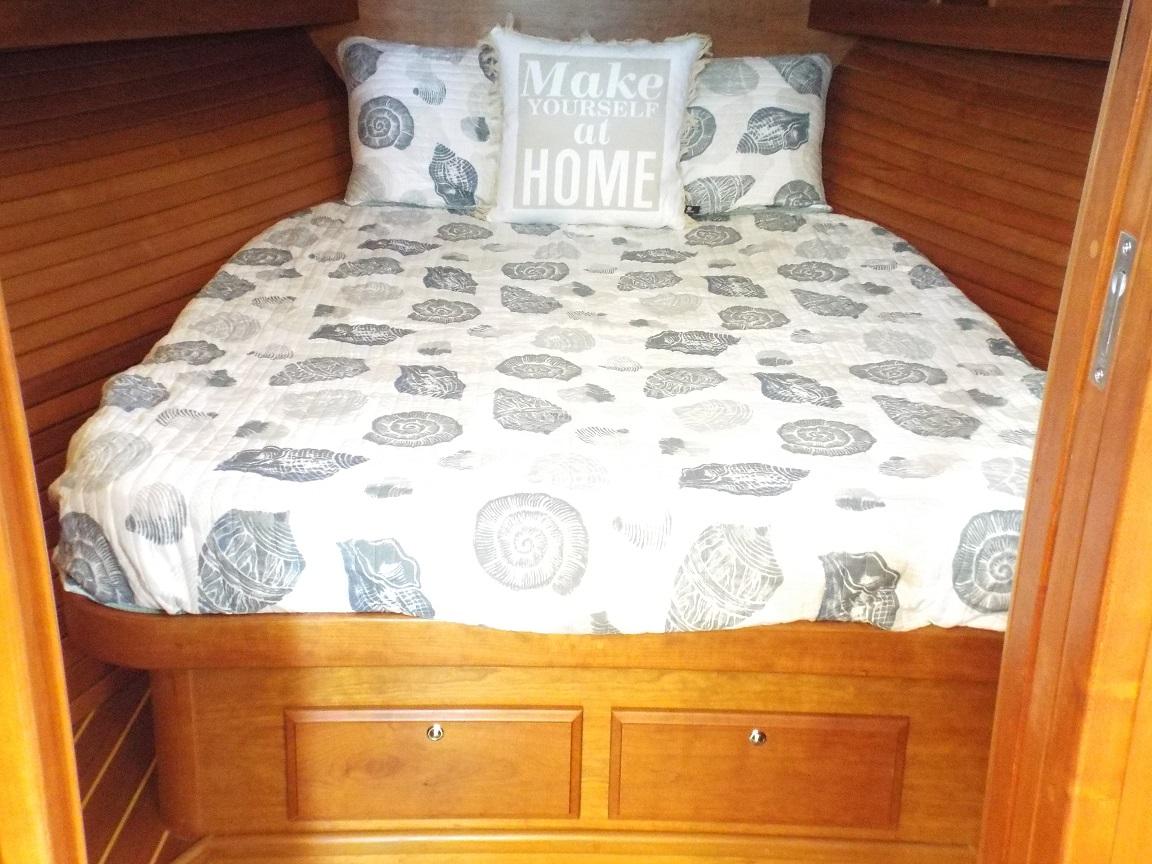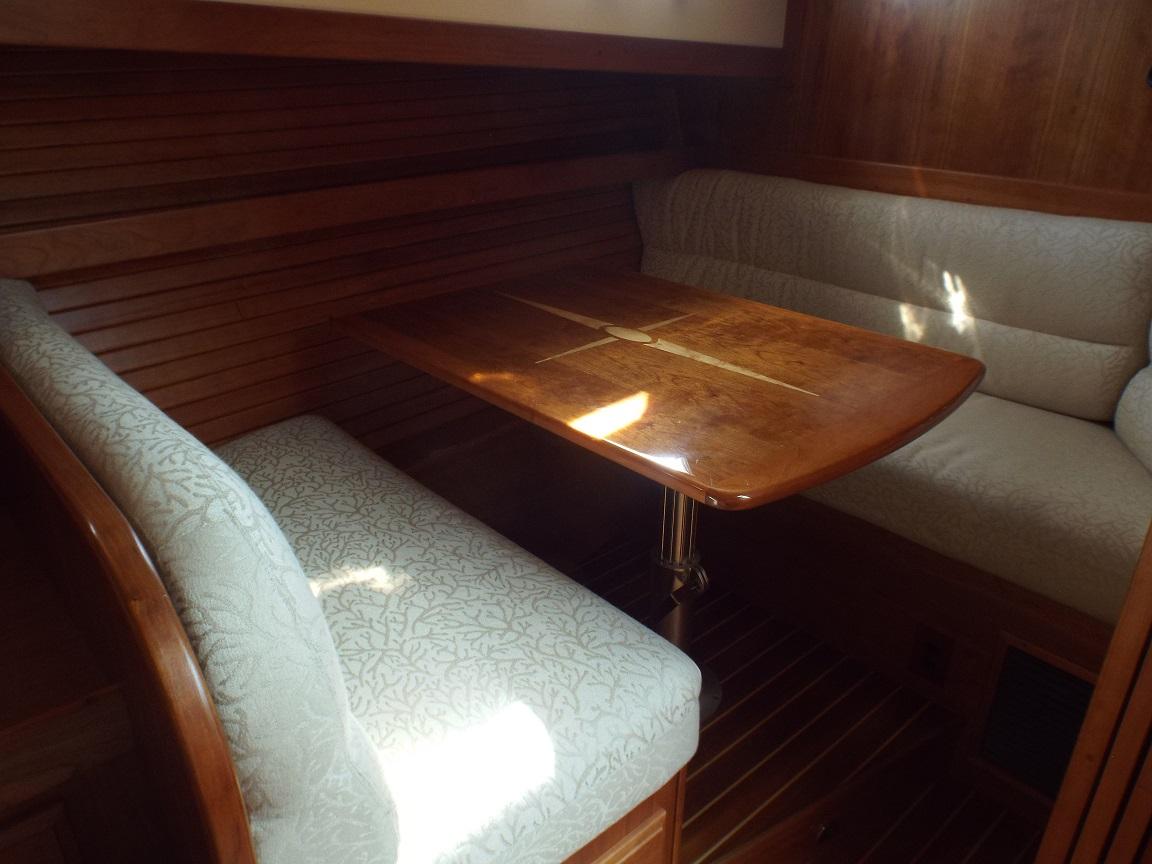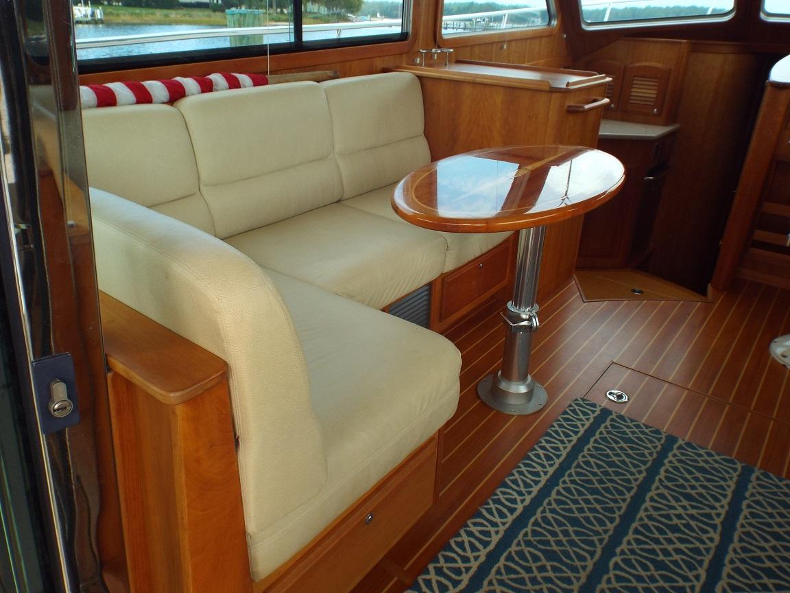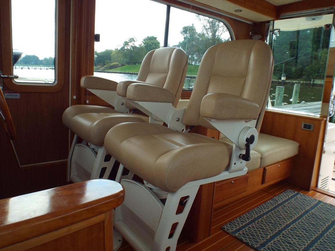 Anne Elise offers a Flag Blue Awlgrip painted hull, 417 hours on Cummins engines with Zeus drives, and Garmin electronics. She has the popular dinette layout, which offers the flexibility to convert to a separate sleeping cabin when needed.