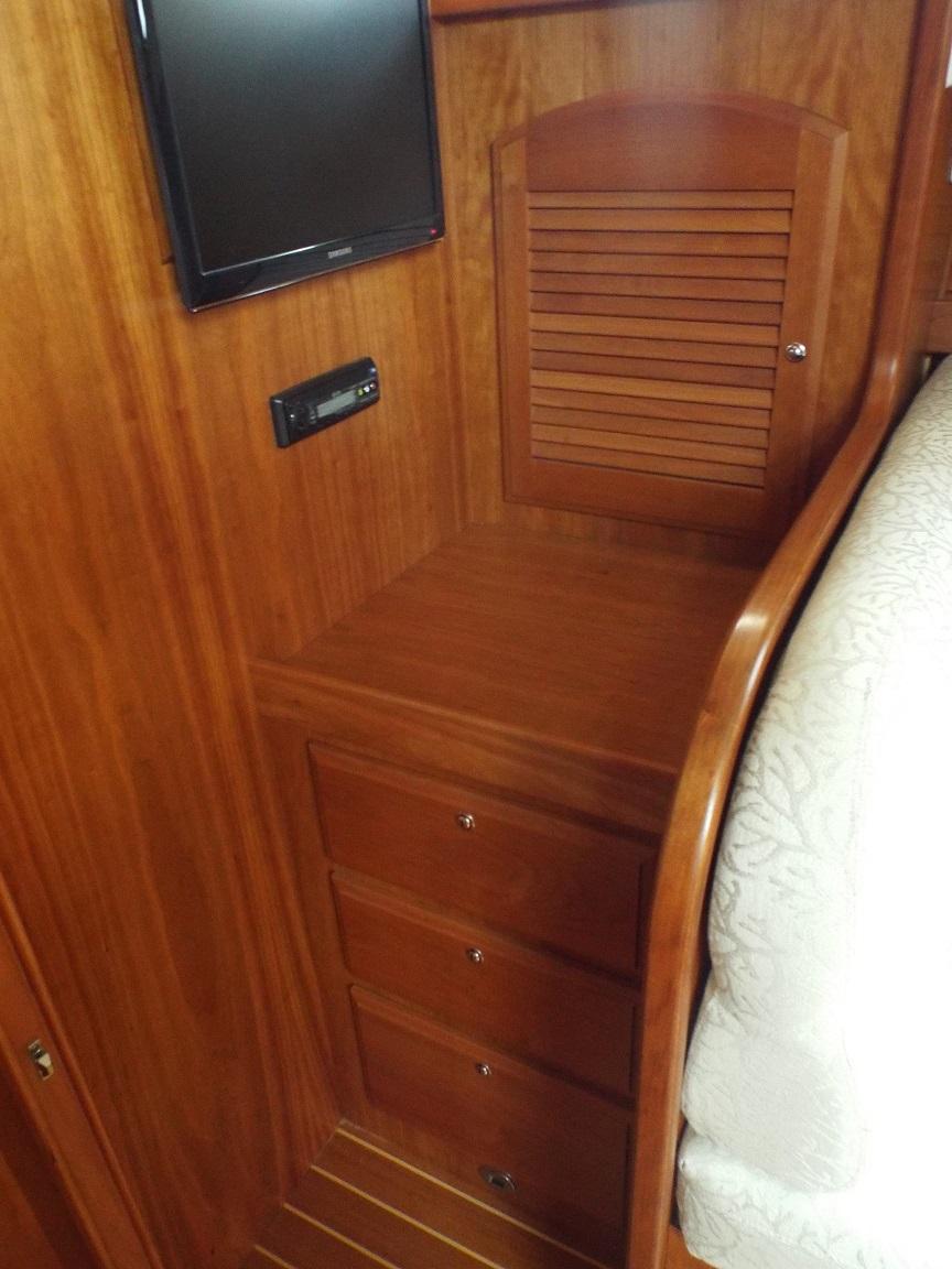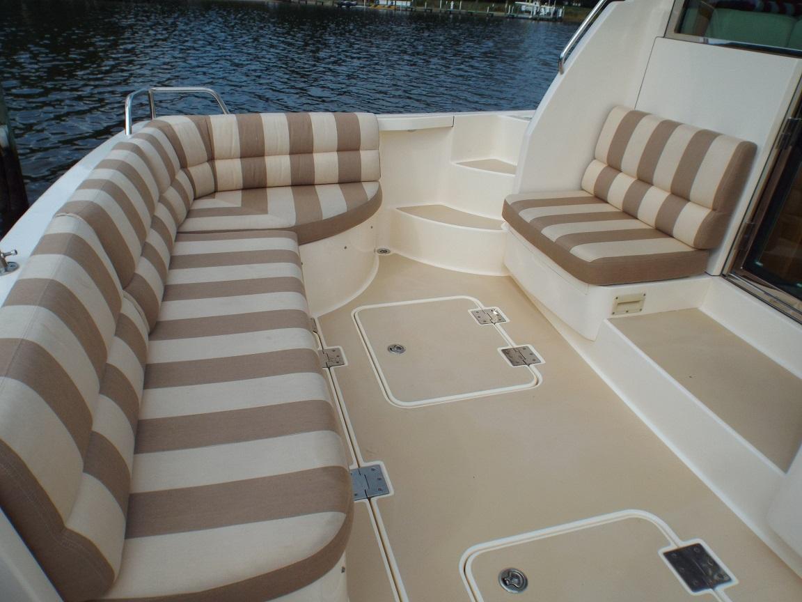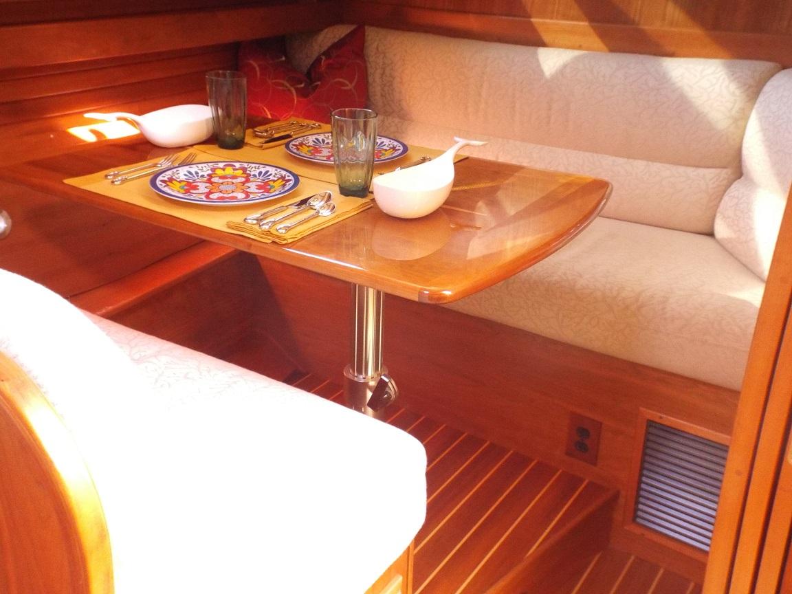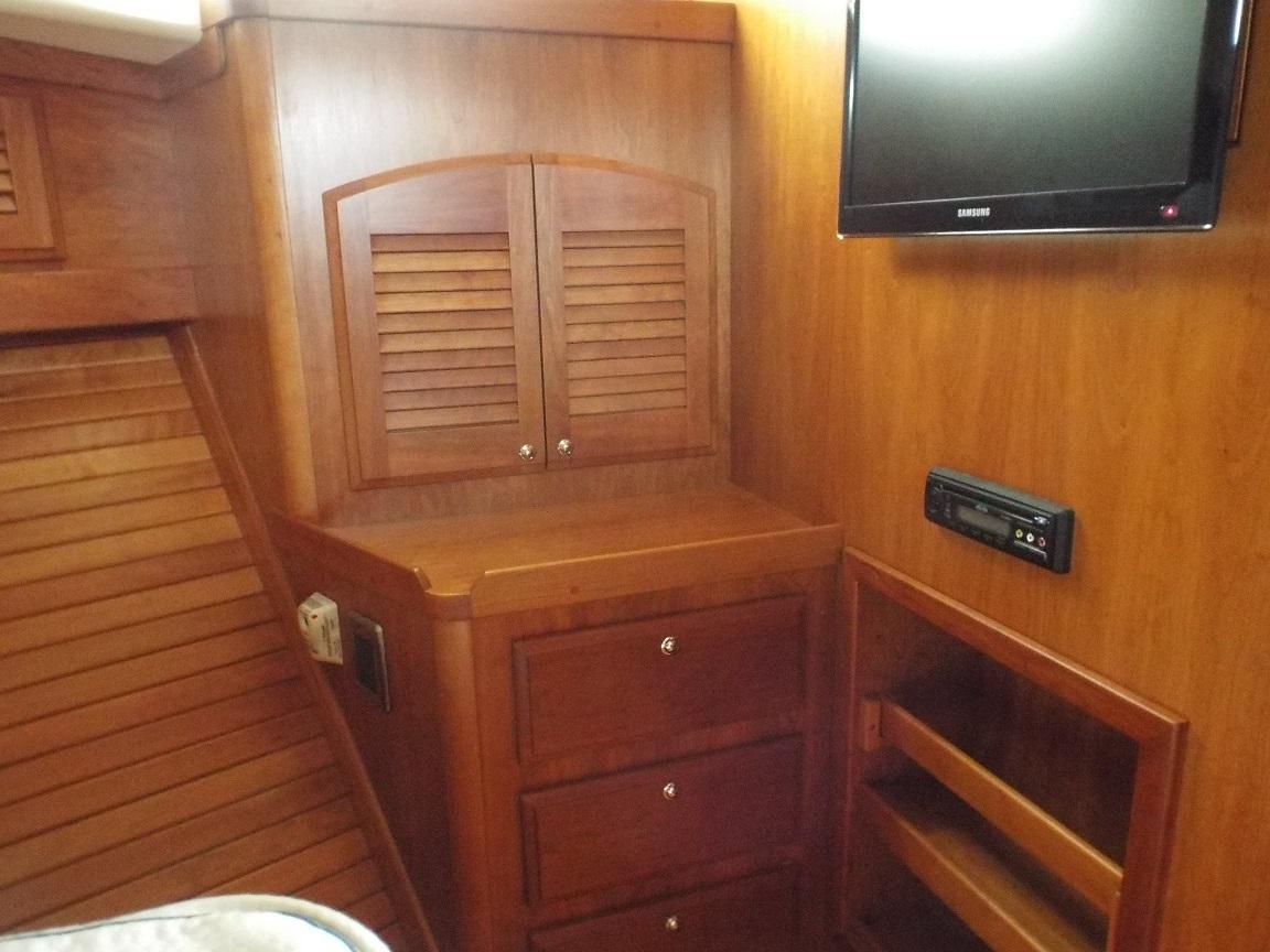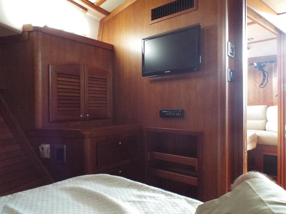 Anne Elise offers a Flag Blue Awlgrip painted hull, 417 hours on Cummins engines with Zeus drives, and Garmin electronics. She has the popular dinette layout, which offers the flexibility to convert to a separate sleeping cabin when needed.
