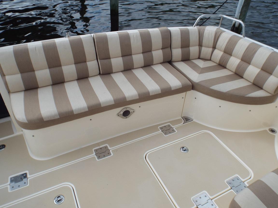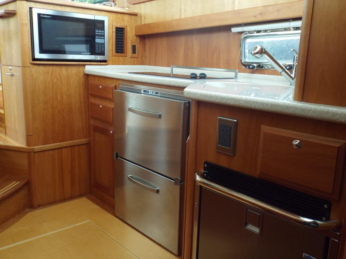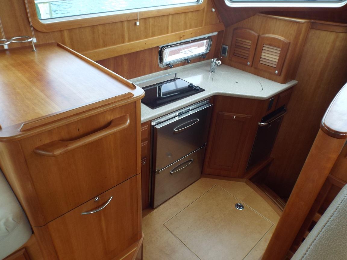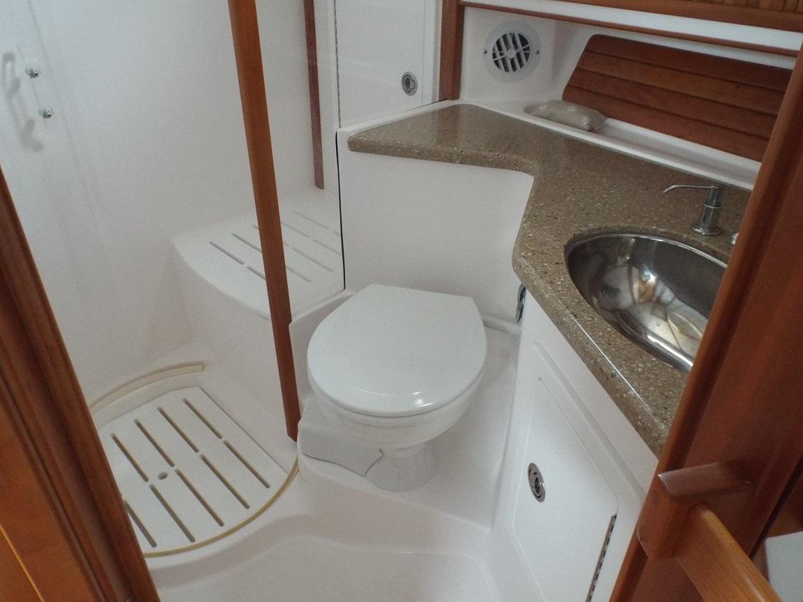 Anne Elise offers a Flag Blue Awlgrip painted hull, 417 hours on Cummins engines with Zeus drives, and Garmin electronics. She has the popular dinette layout, which offers the flexibility to convert to a separate sleeping cabin when needed.