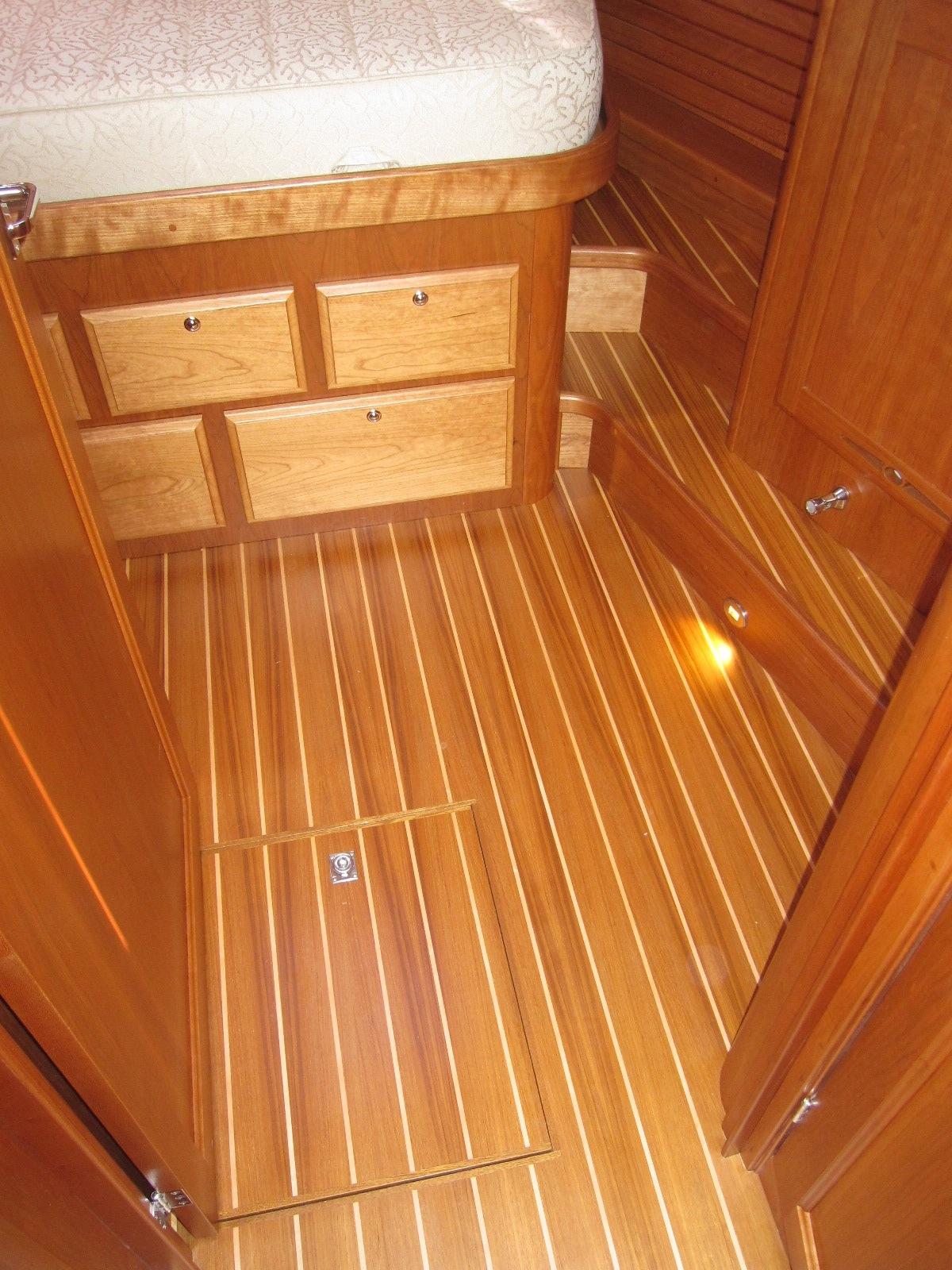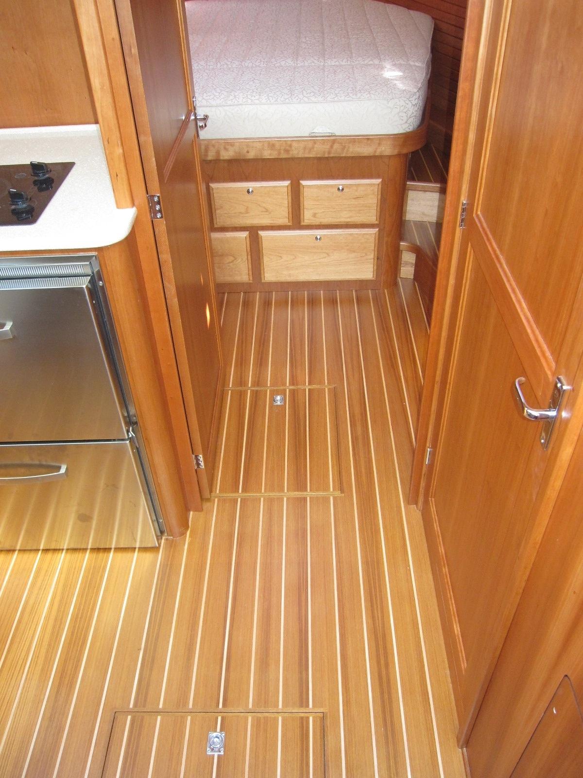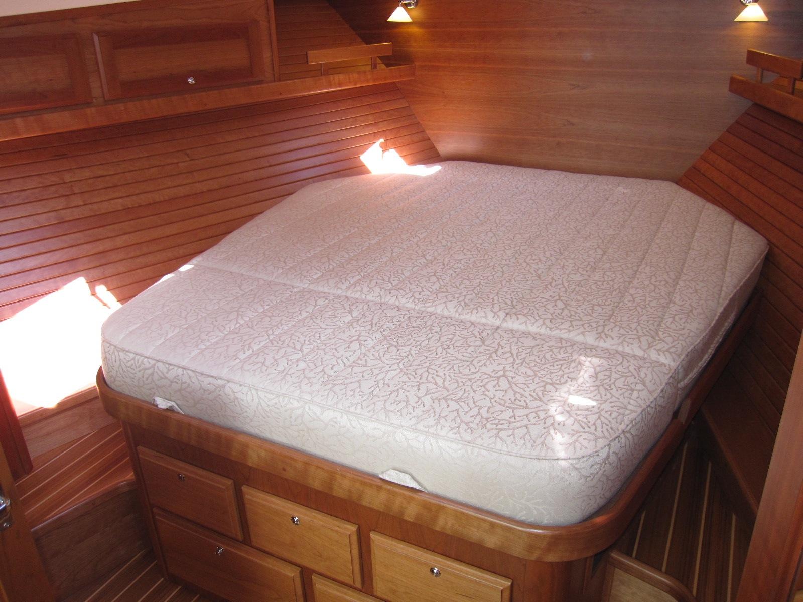 Spacious Island Berth layout with 5" mattress. ¾” laminated trim on berth top.