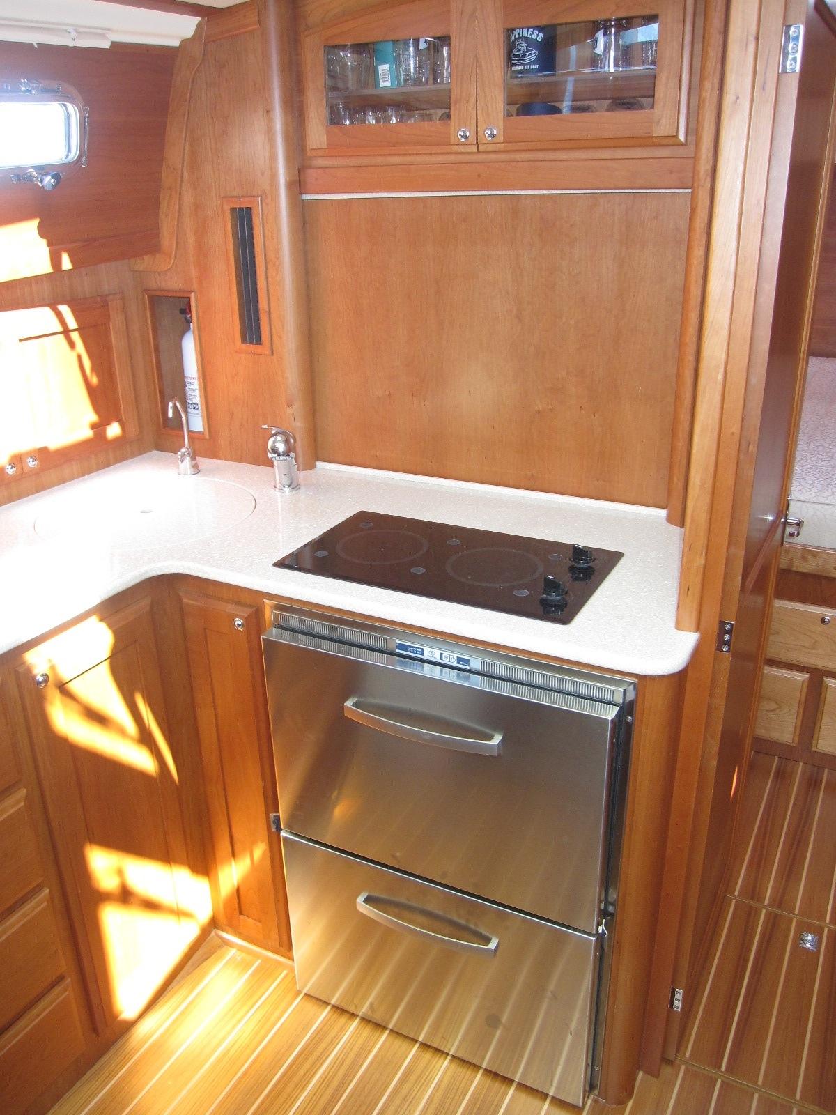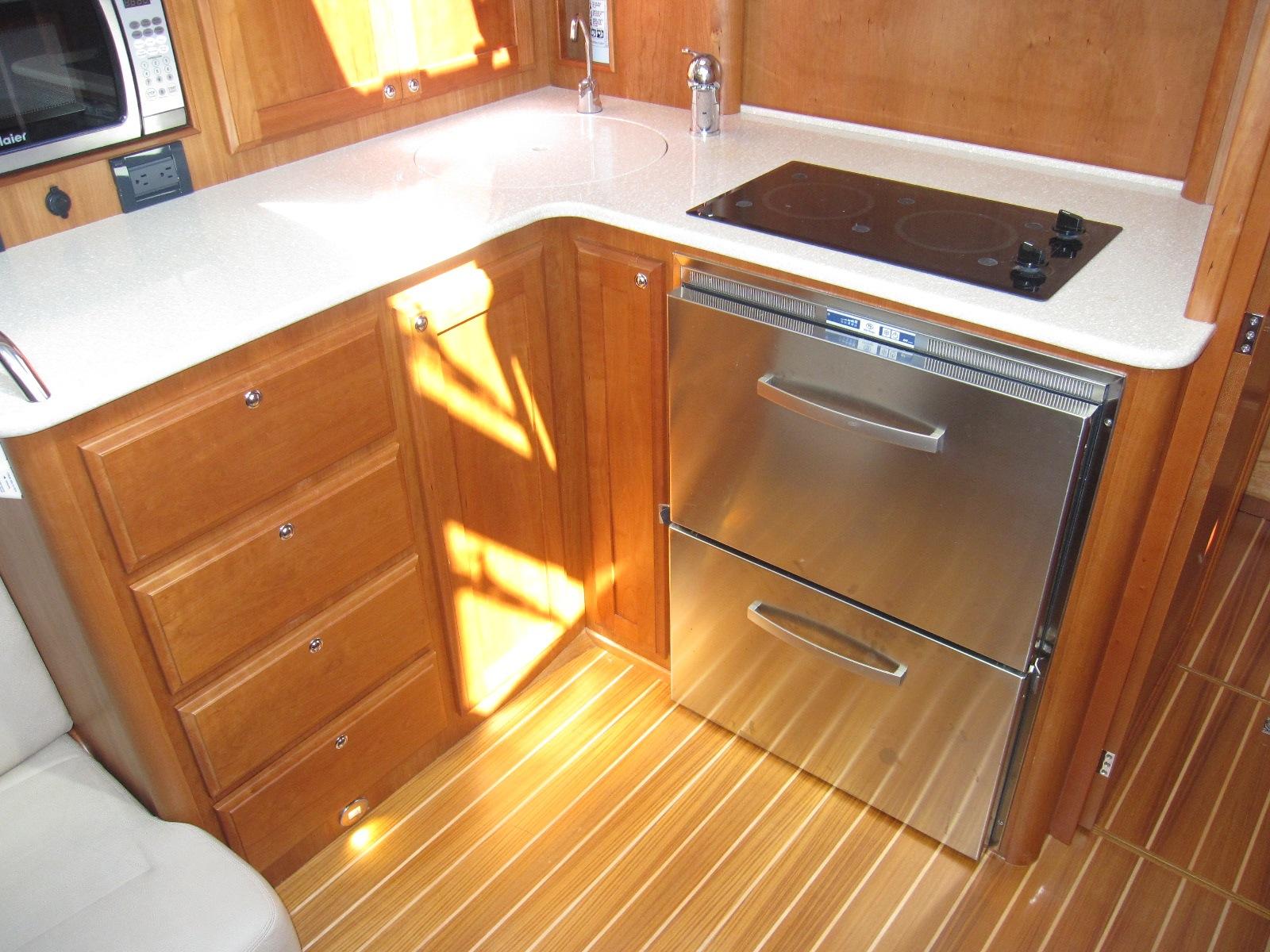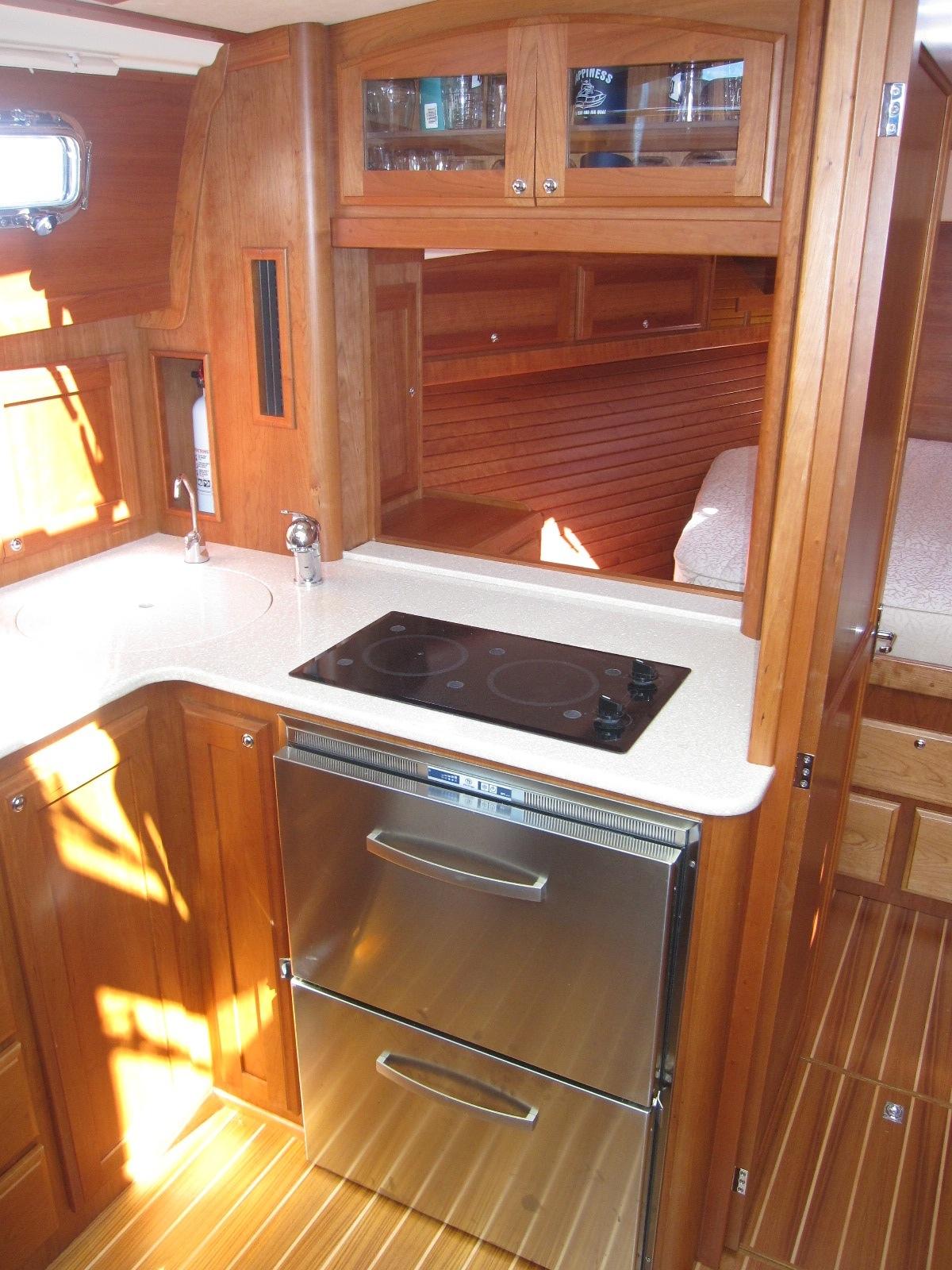 Spacious Island Berth layout with 5" mattress. ¾” laminated trim on berth top.