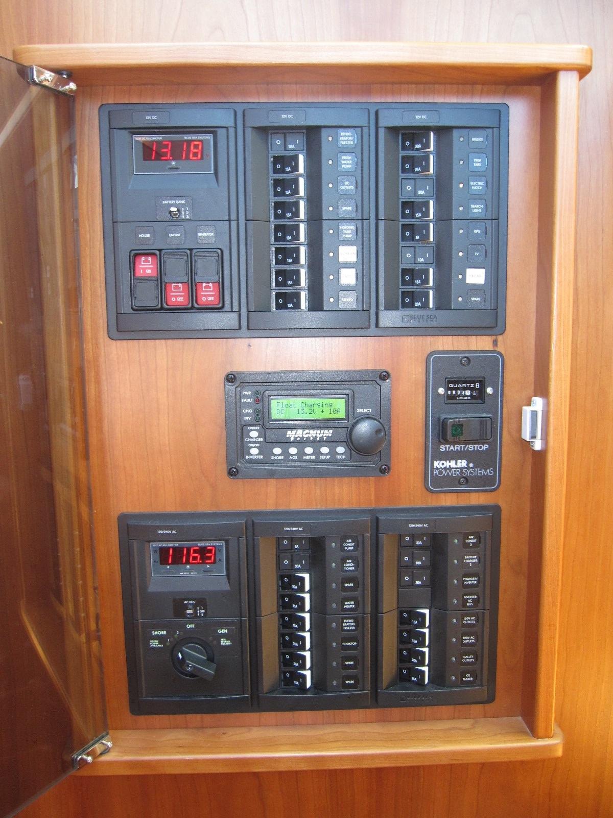 Illuminated main circuit breaker distribution panel w/battery condition gauge