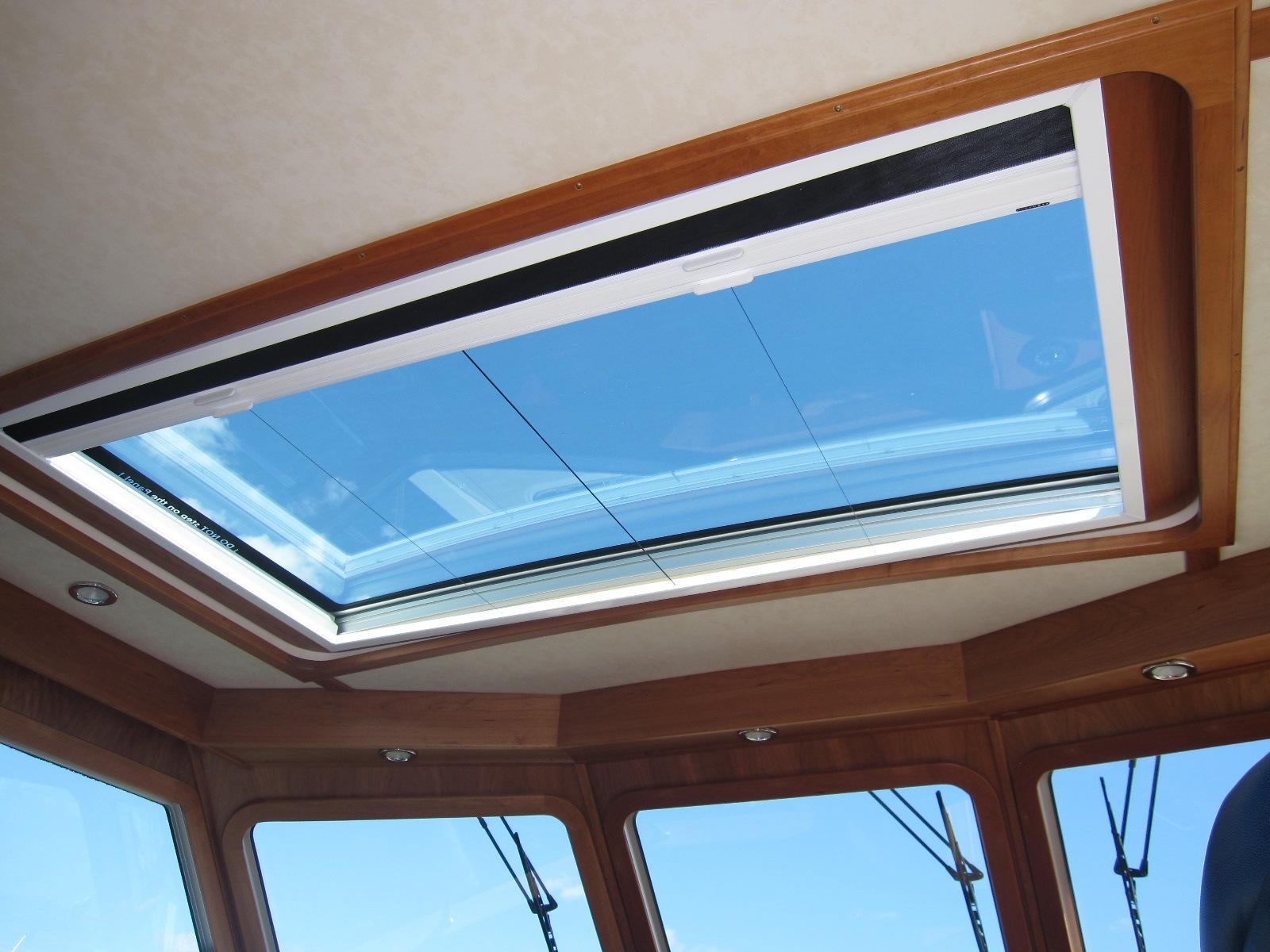 Hinged stainless steel companionway door with drop down windows port and starboard