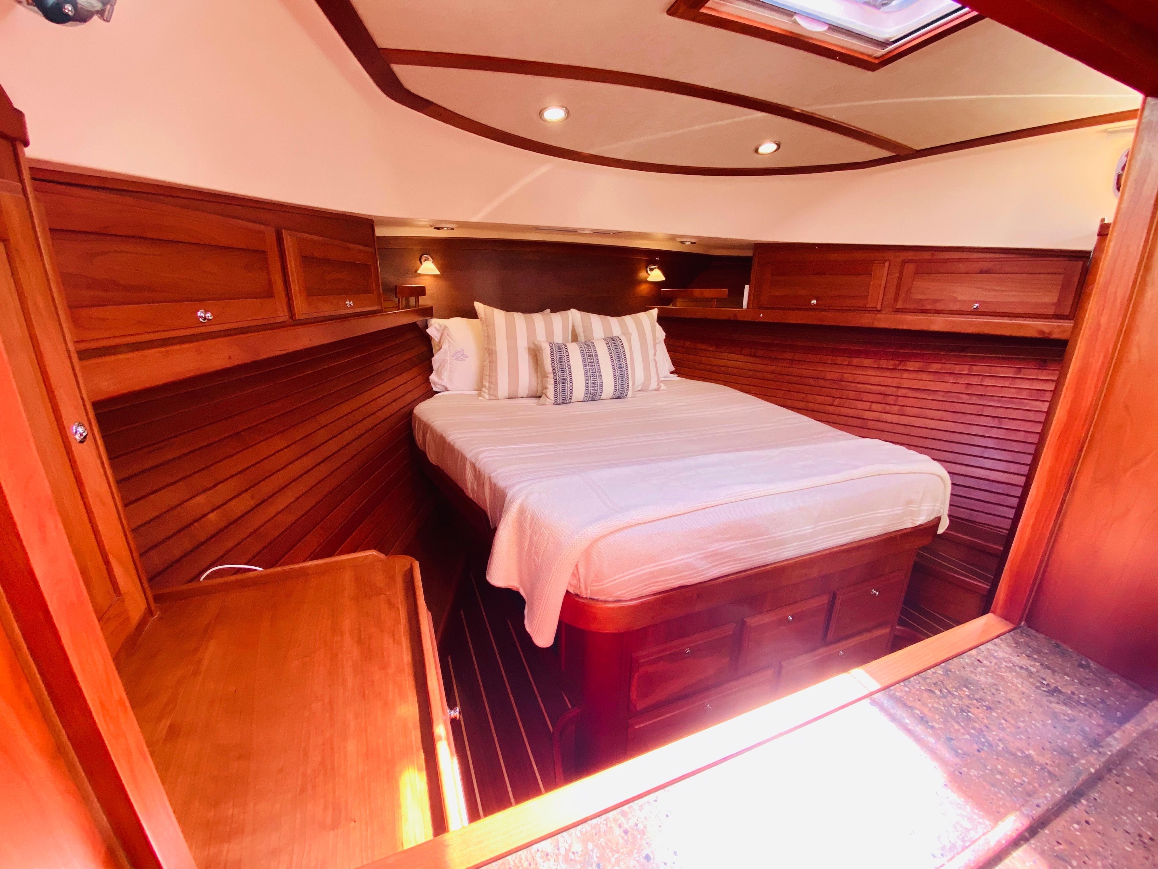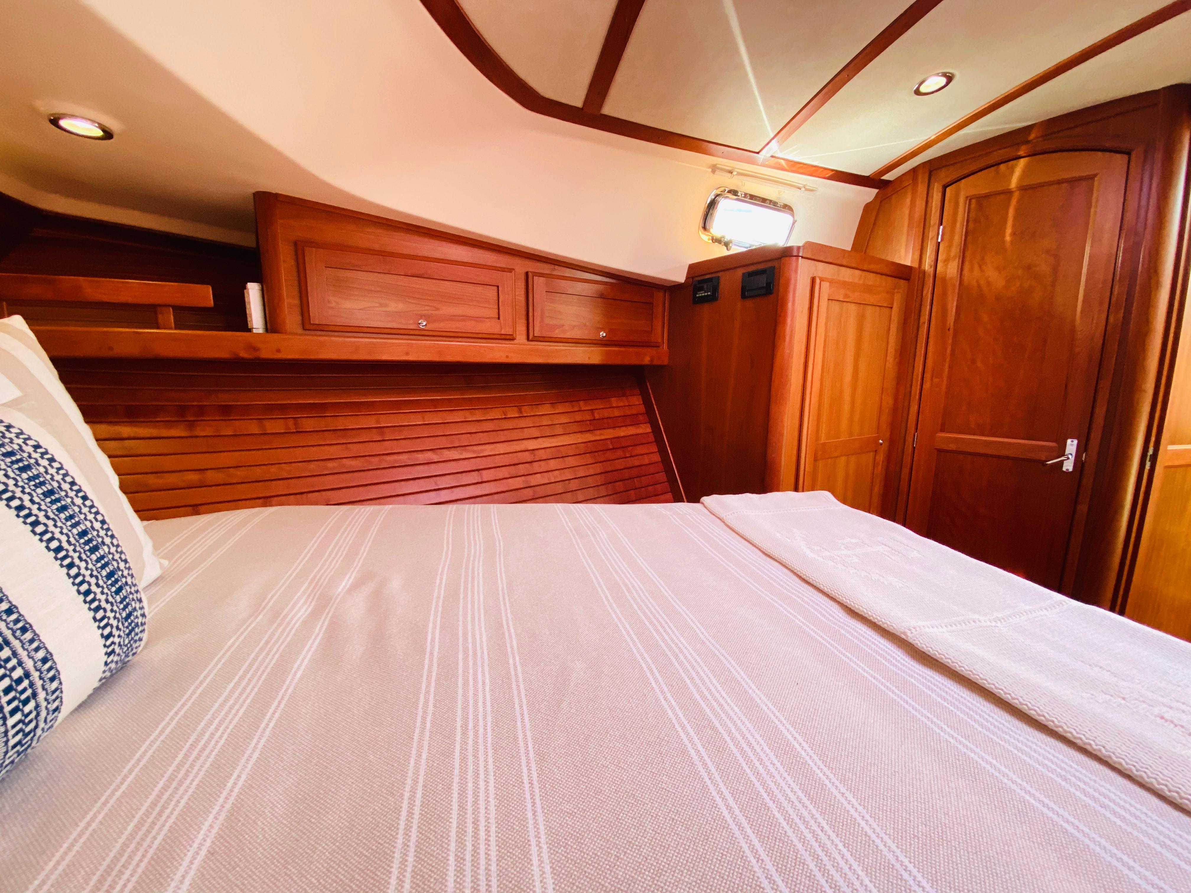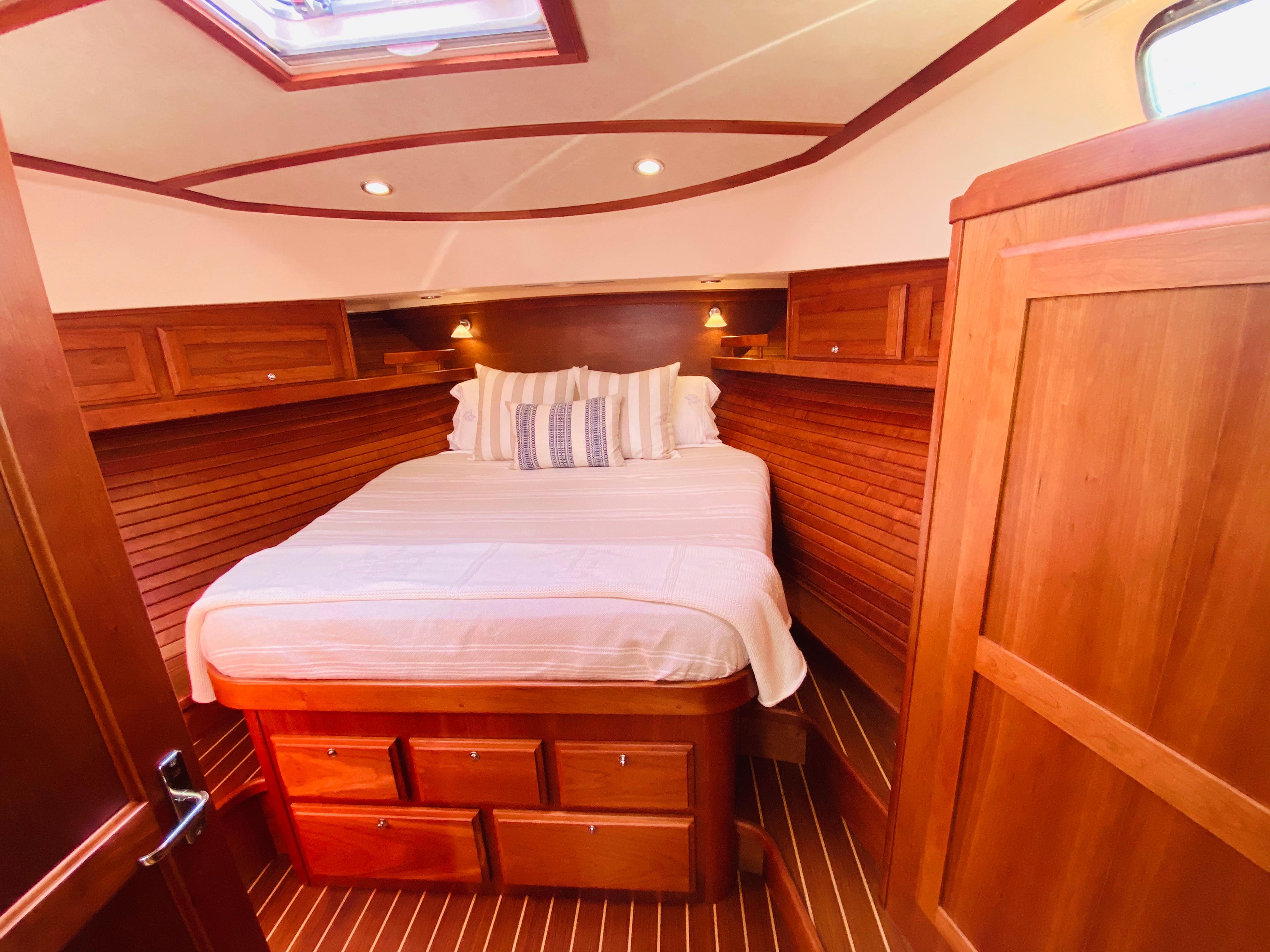 Large hanging locker to starboard, cedar lined with shelf and hangar pole