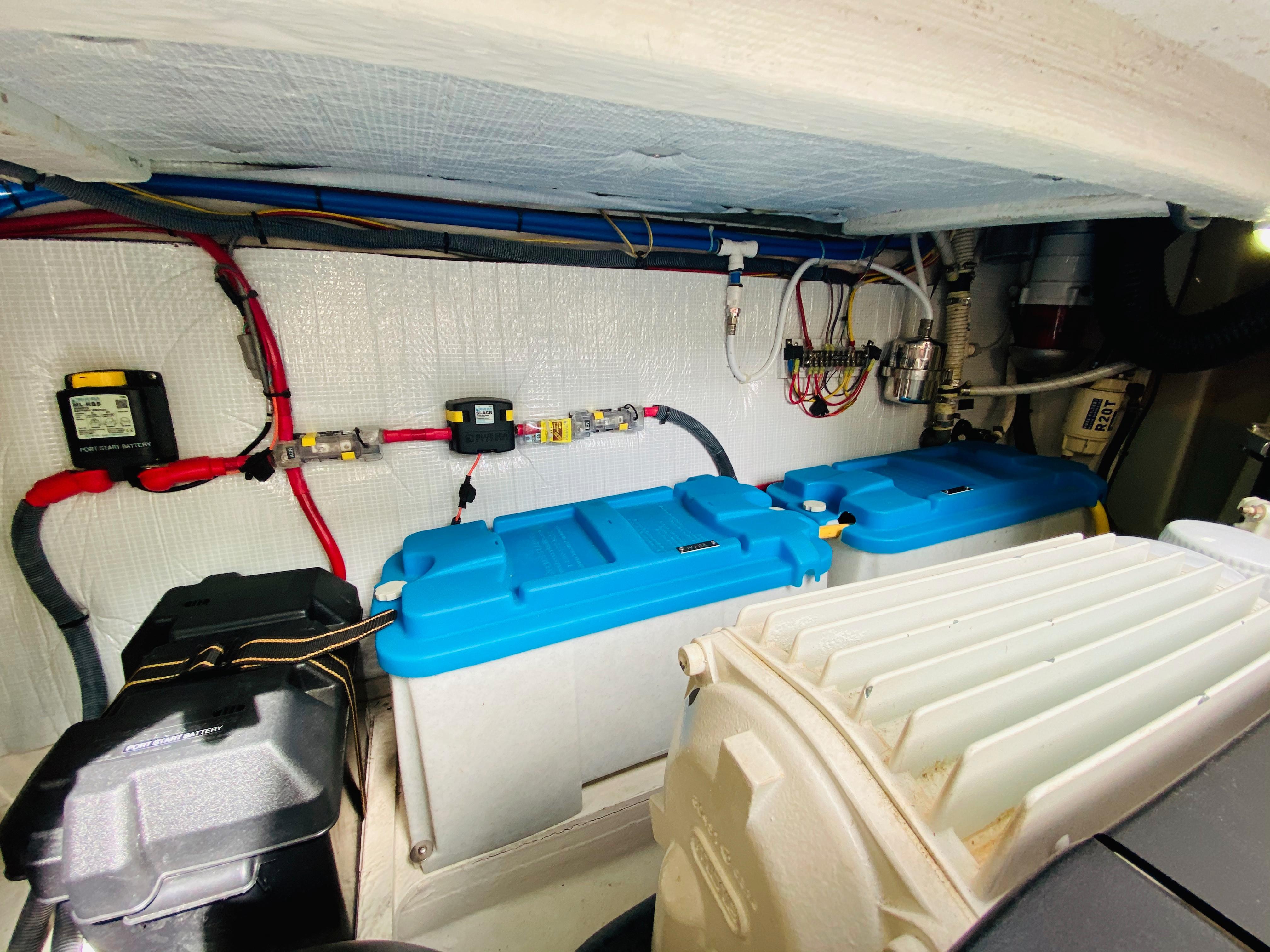 Two 4D 210 Amp hour deep cycle ship's service batteries