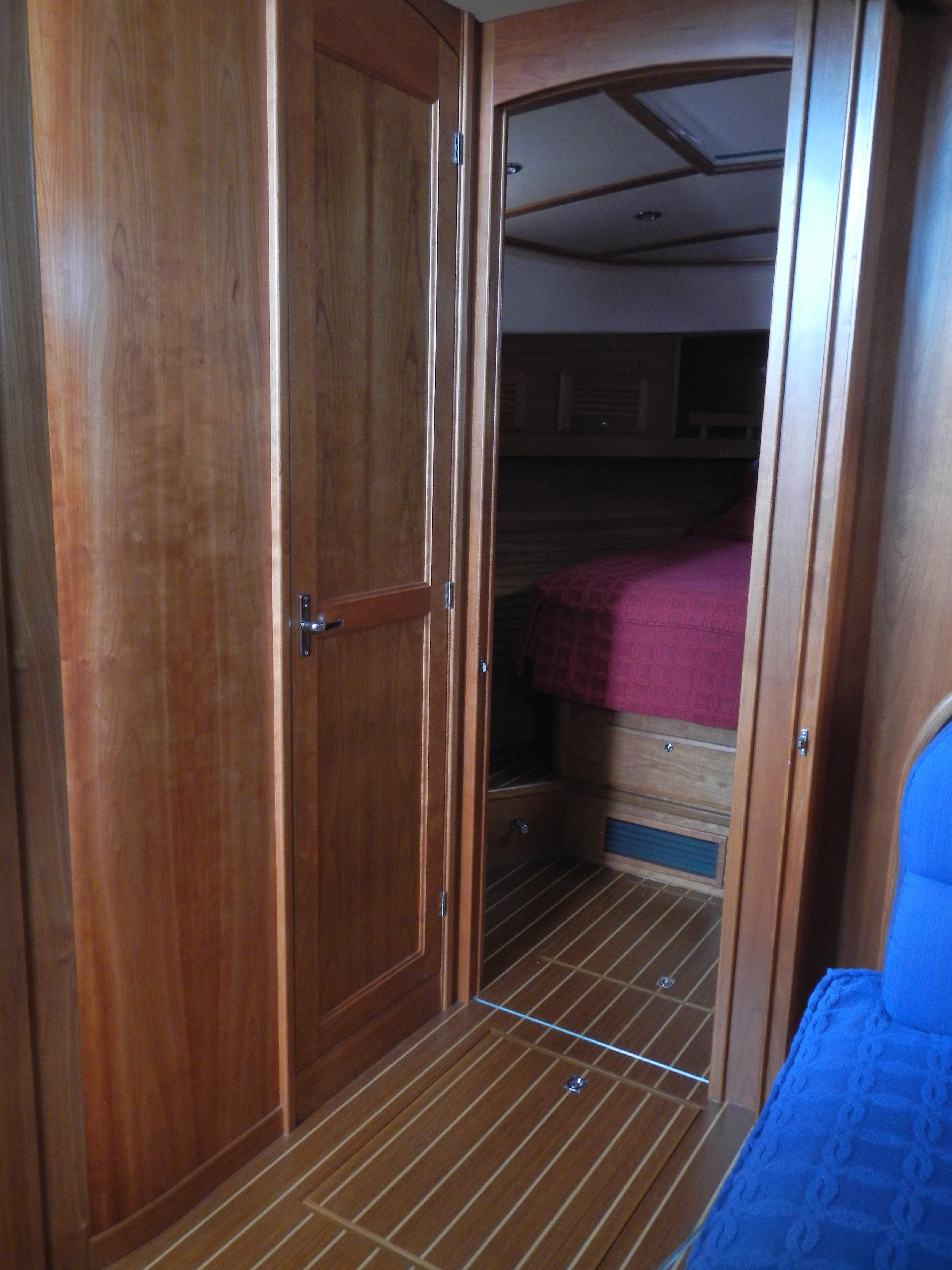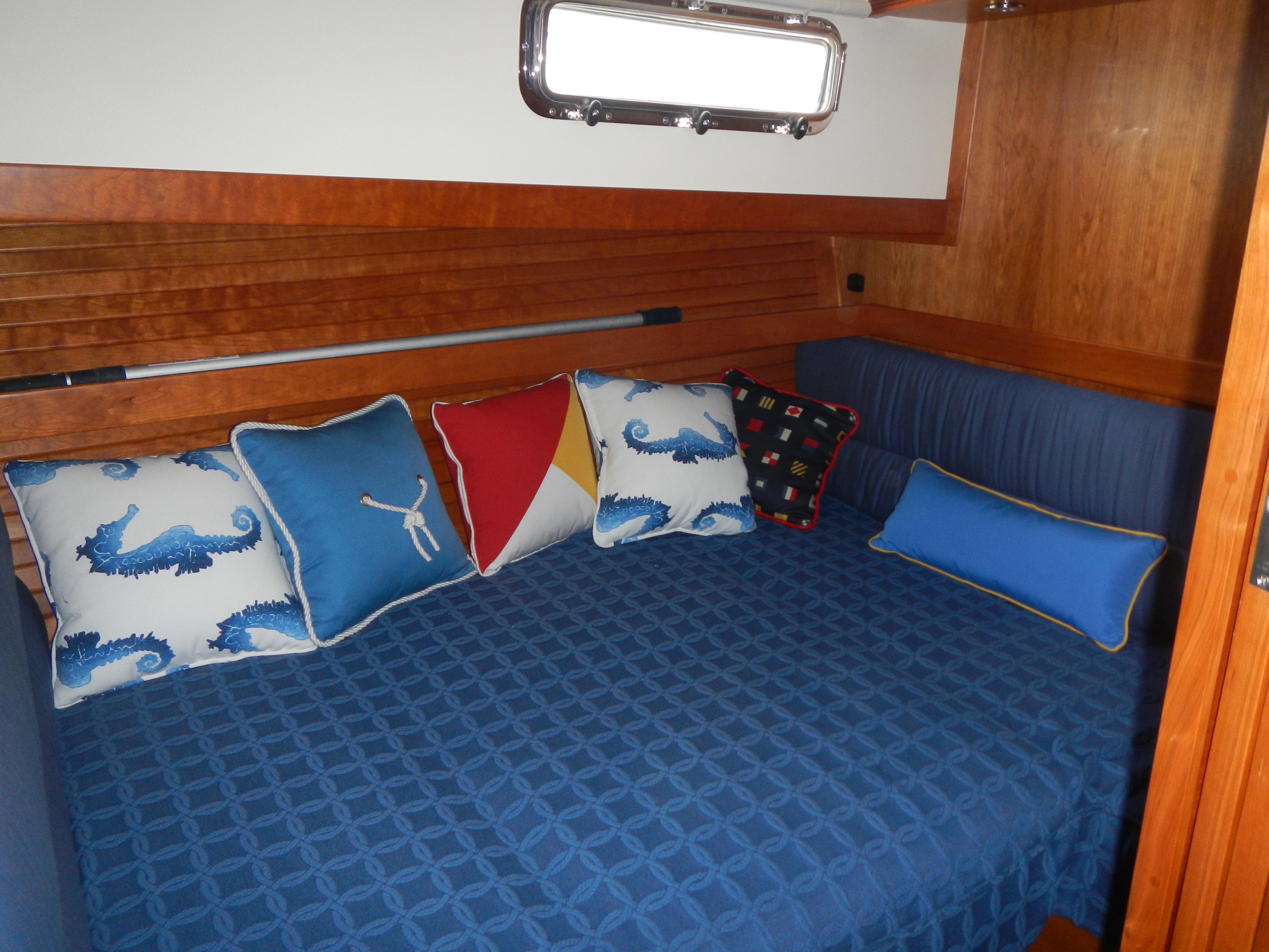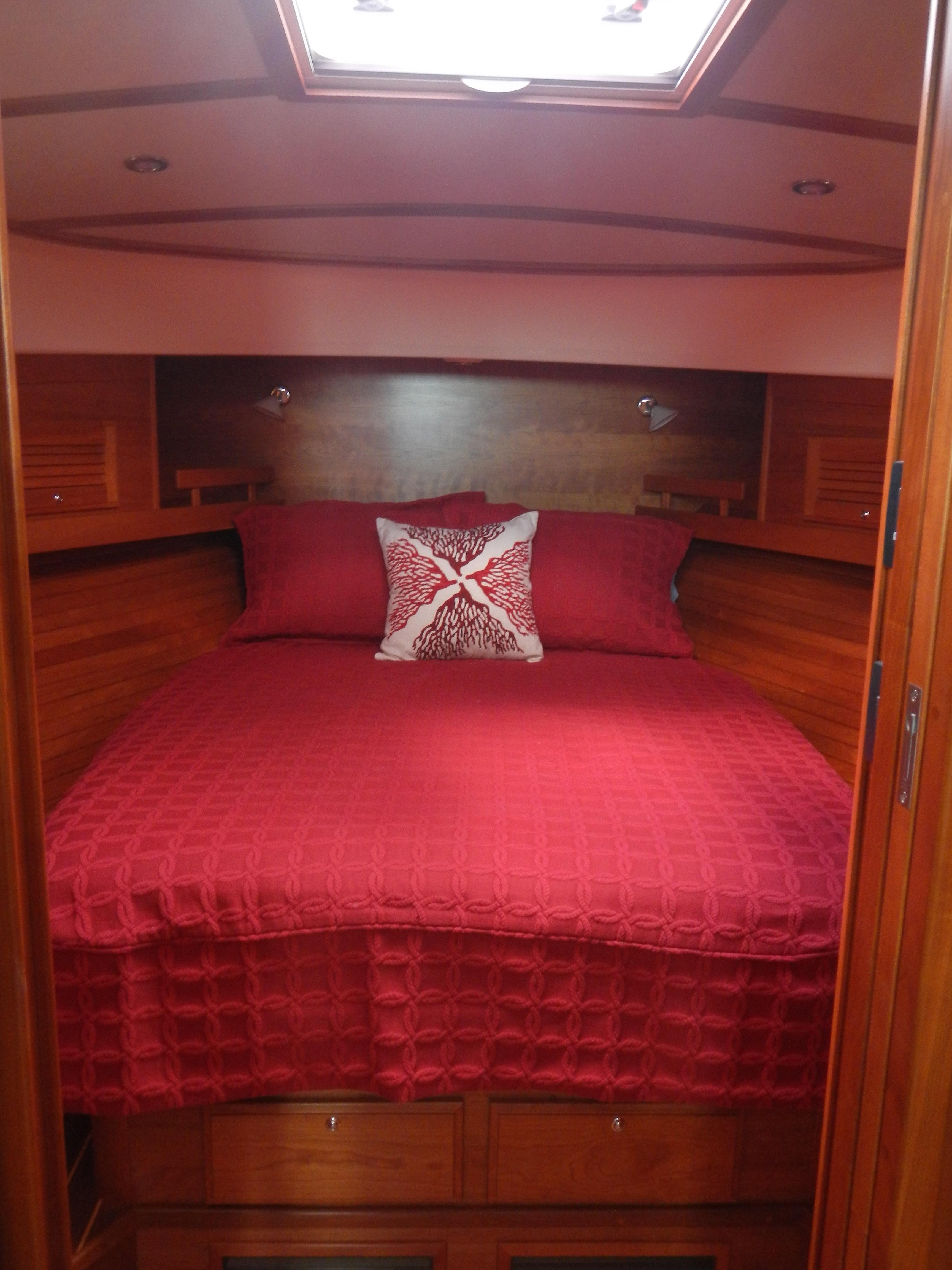 Spacious Island Berth layout with 5" cushion. 3/4" laminated trim;