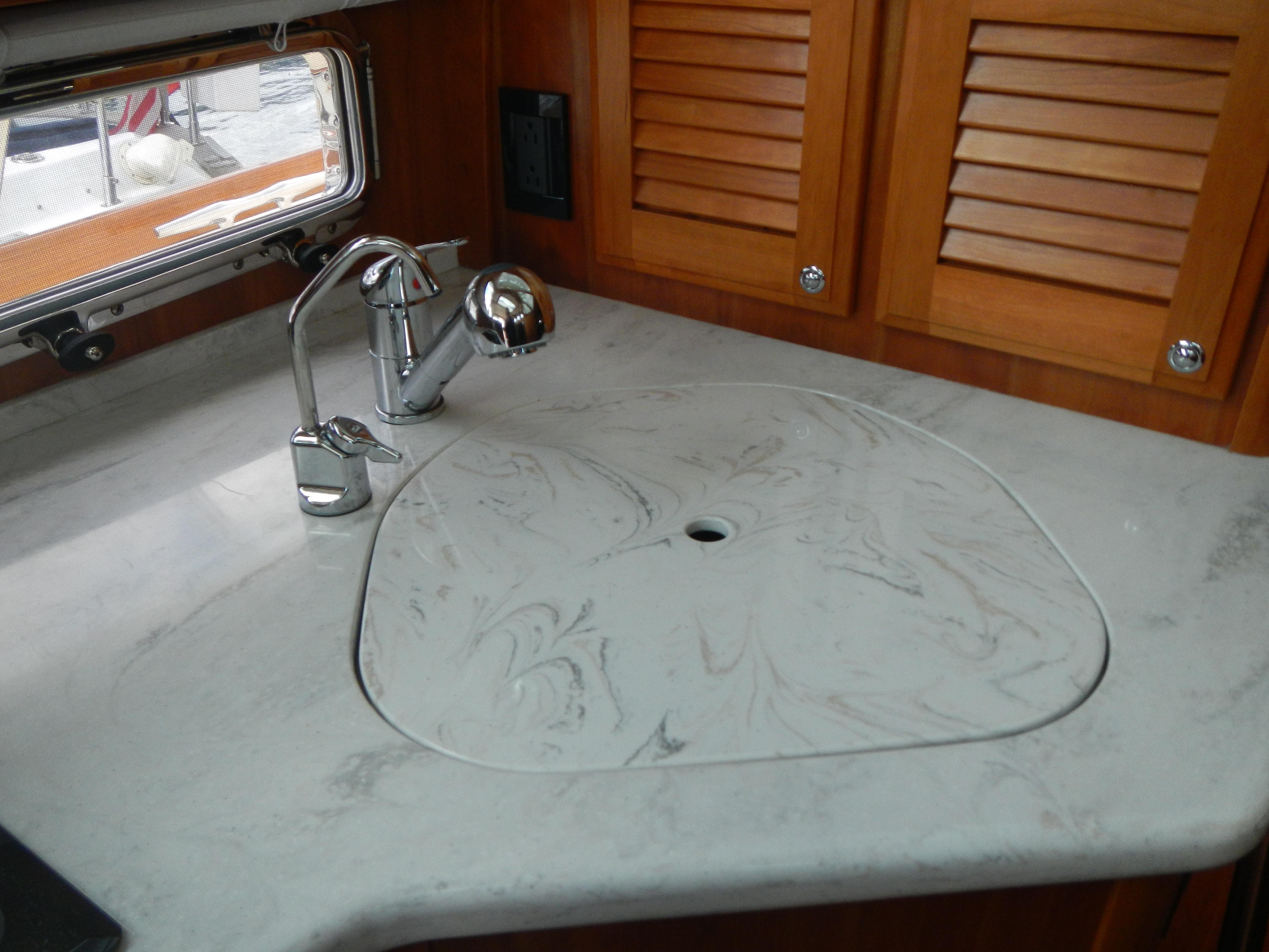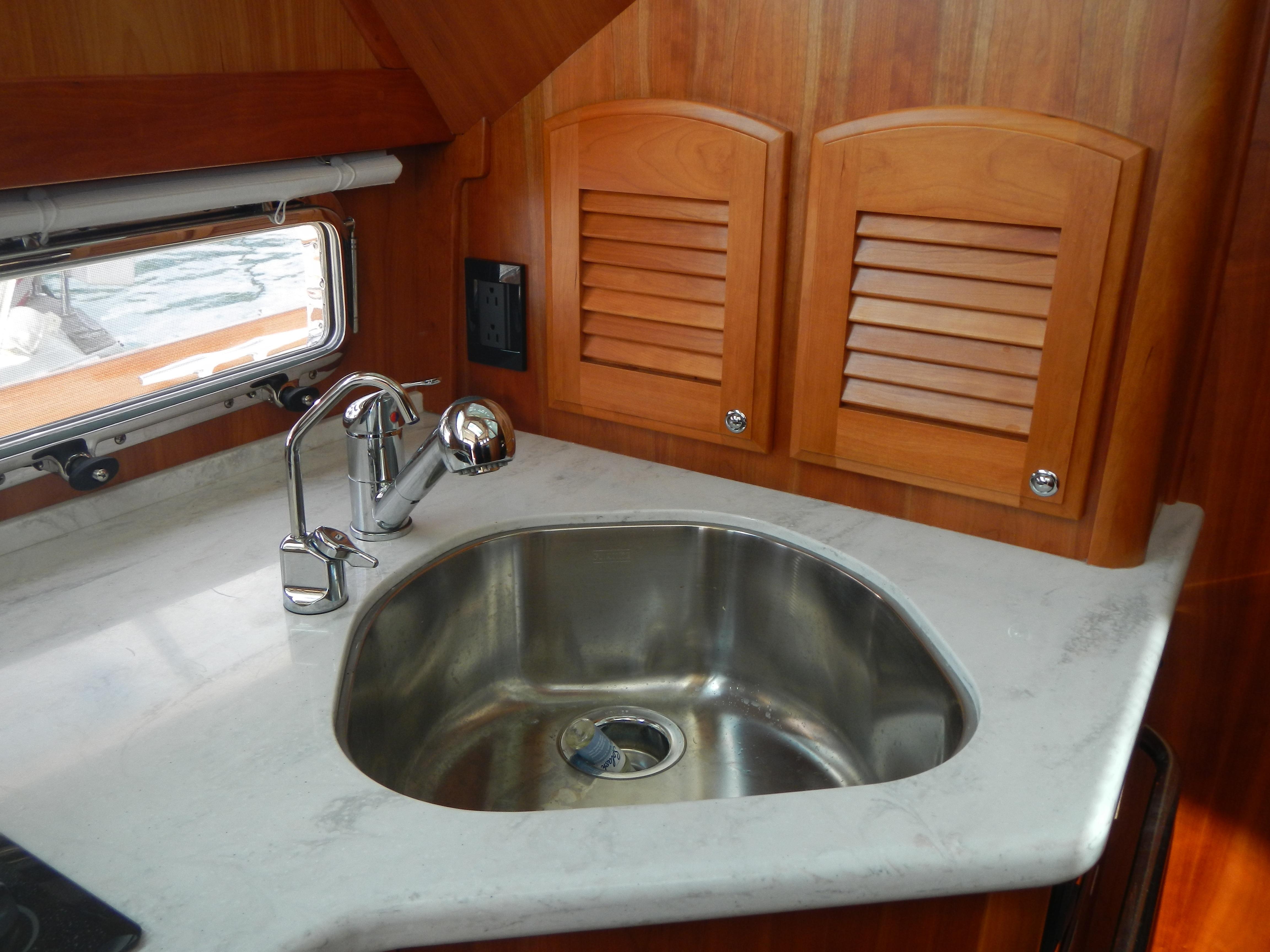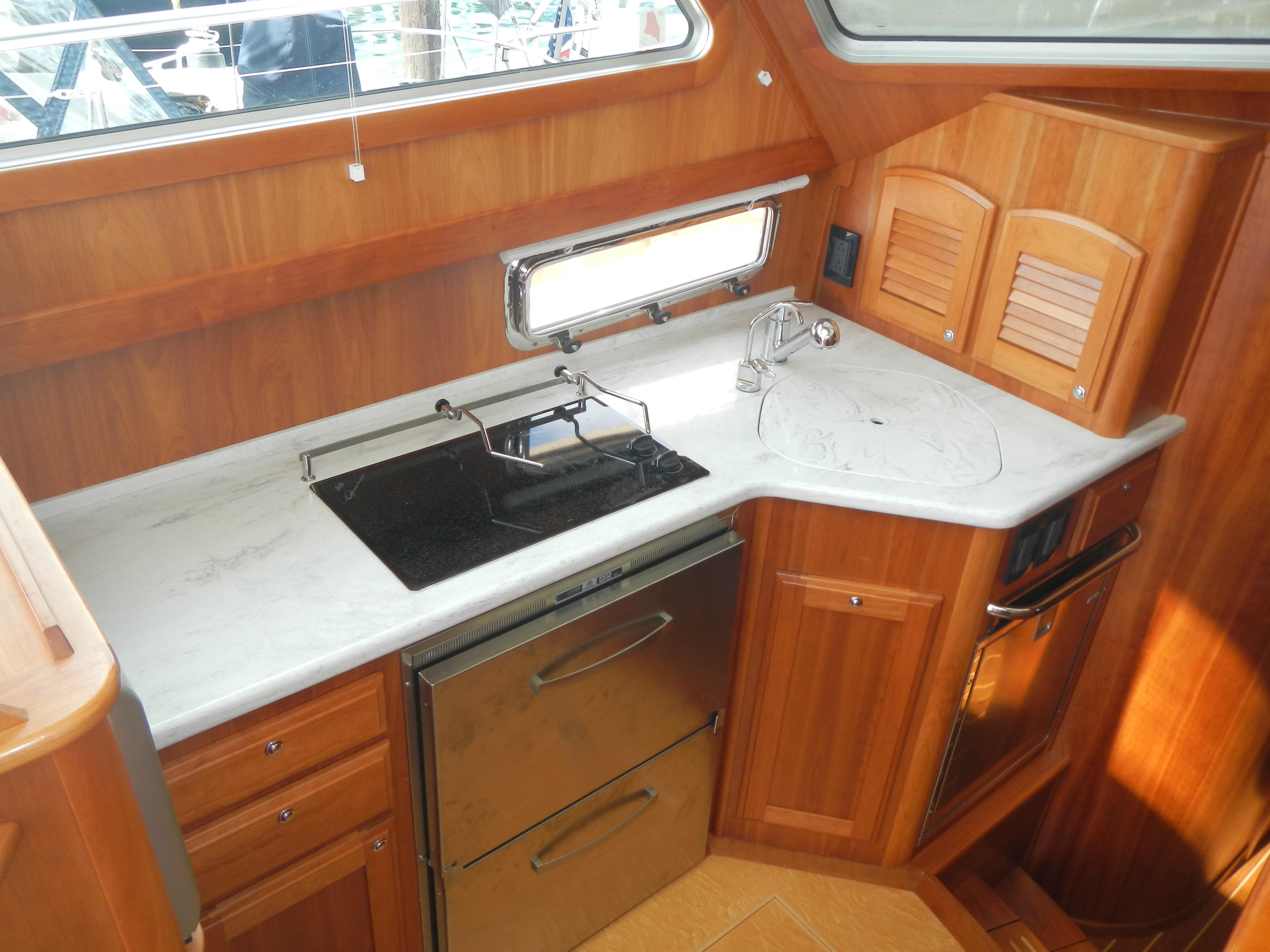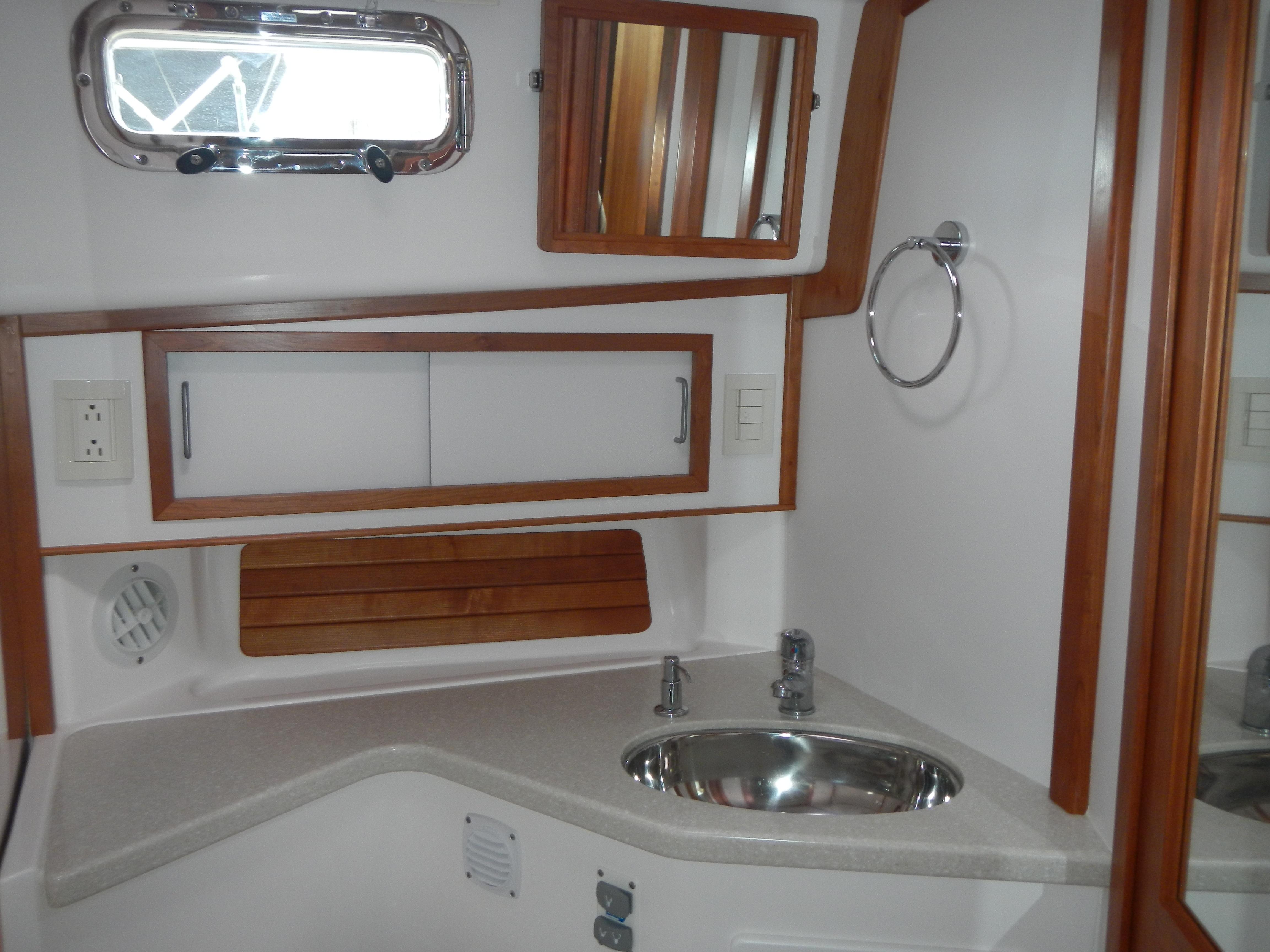 Spacious Island Berth layout with 5" cushion. 3/4" laminated trim;