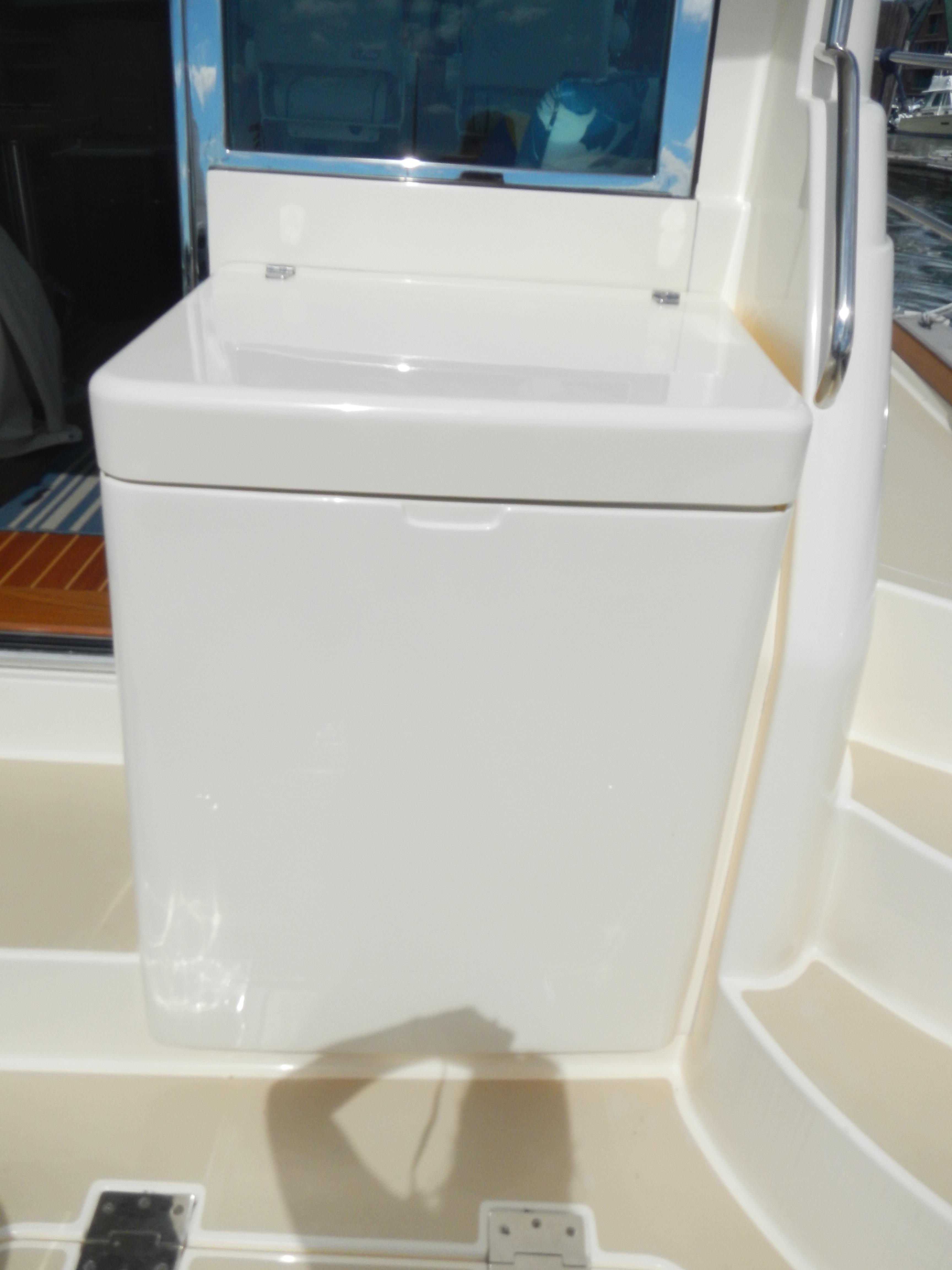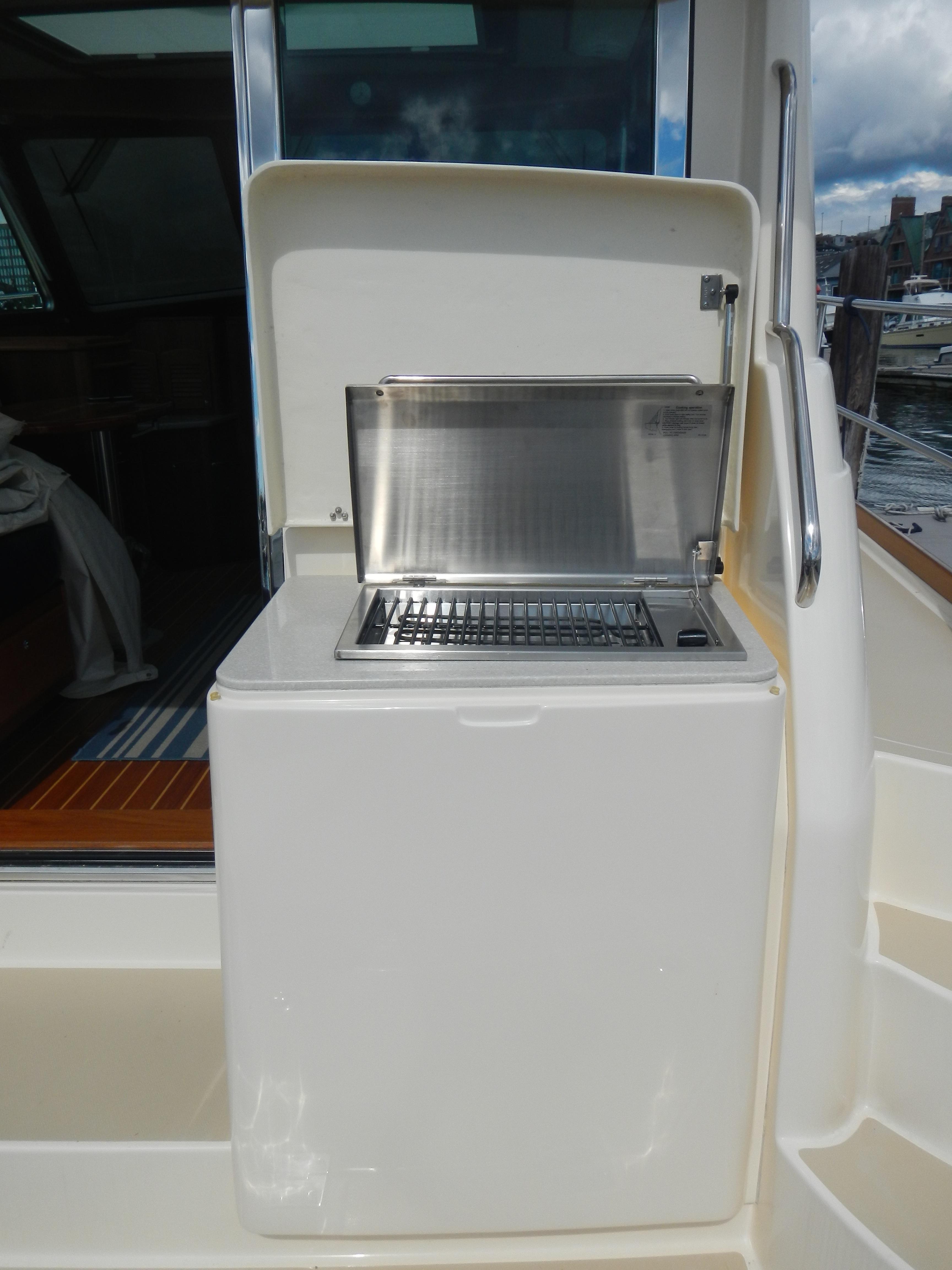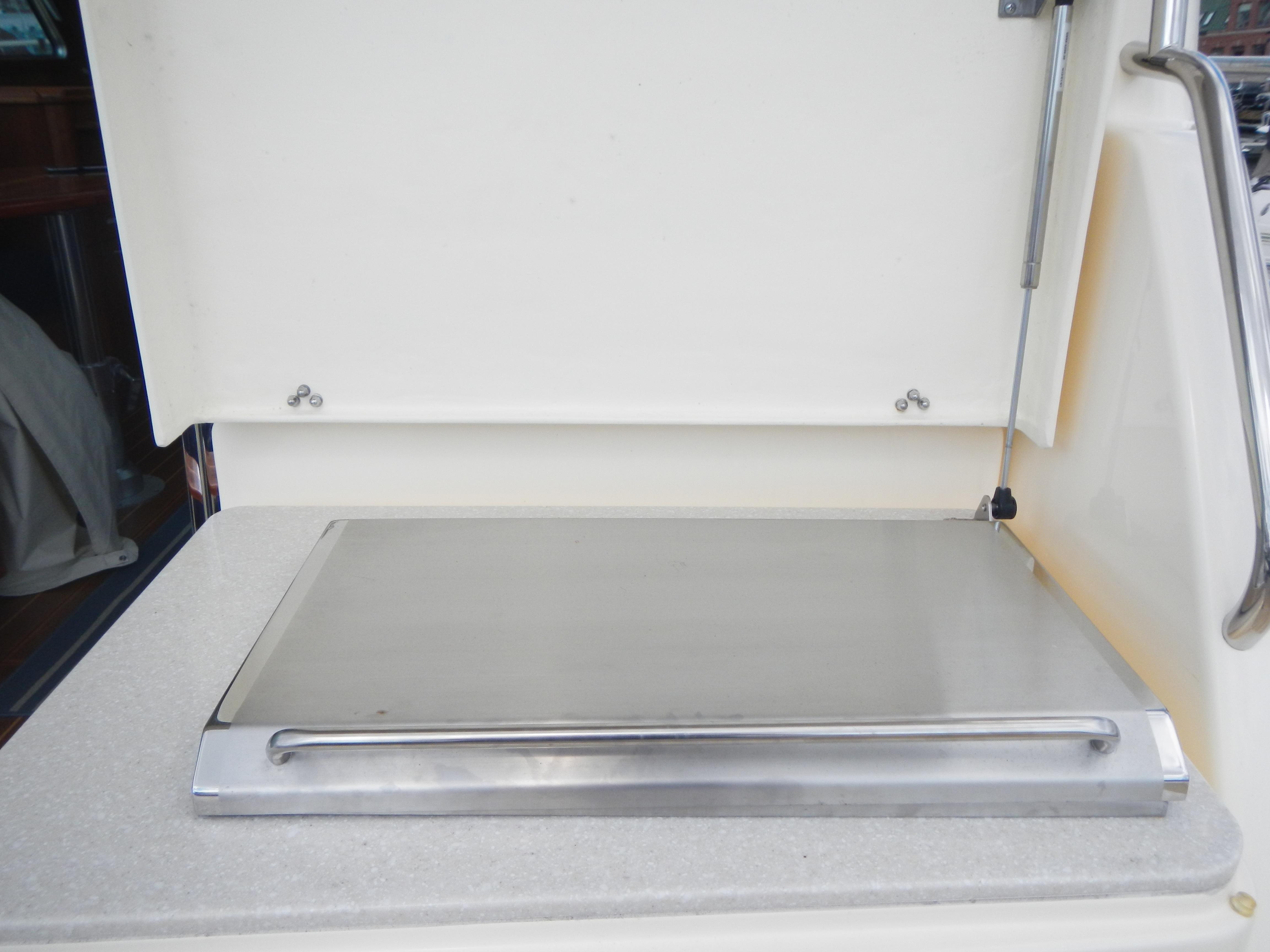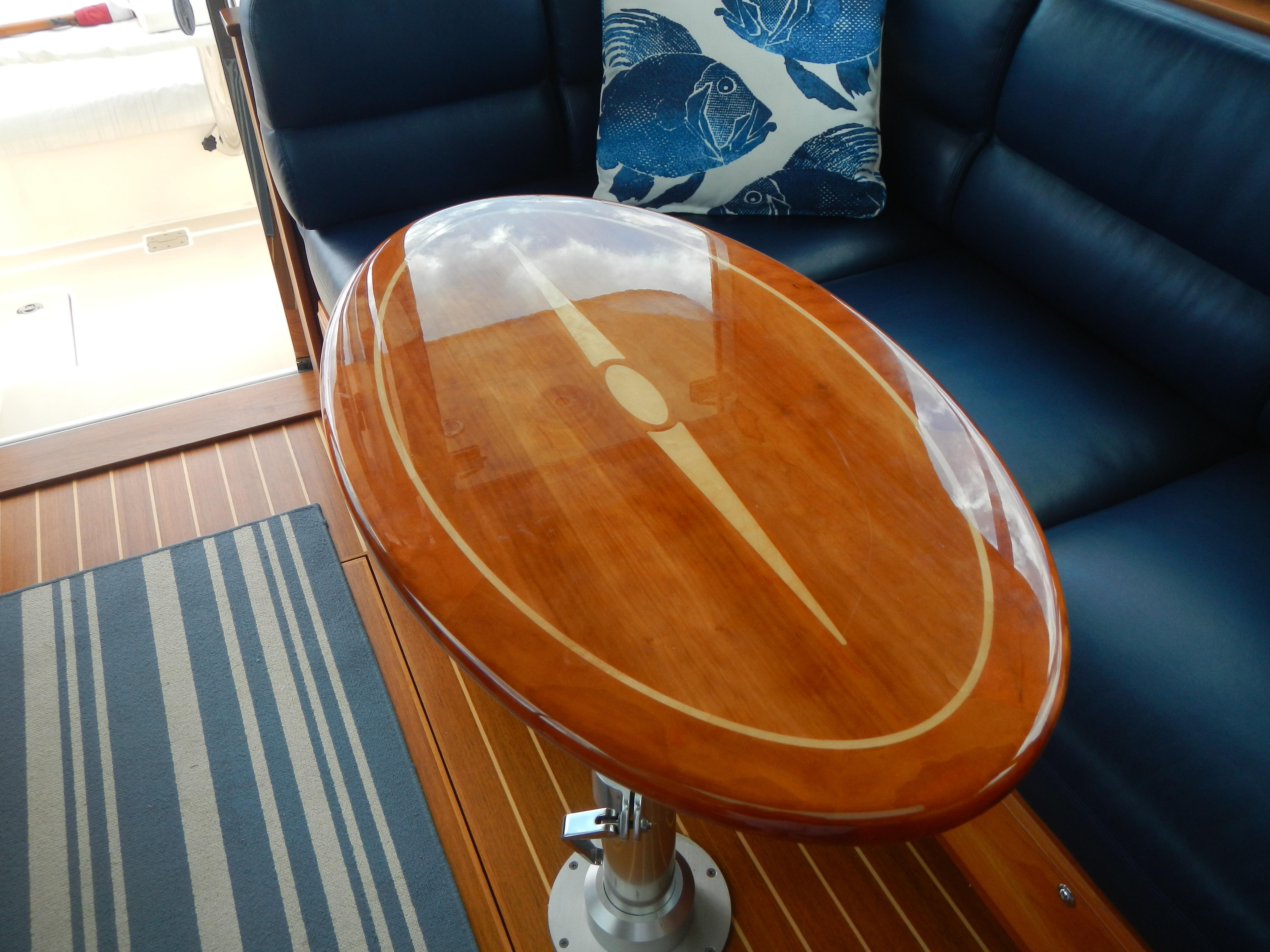 End table to starboard with 24" flat screen LED TV on lift with DVD player (installed at dash);