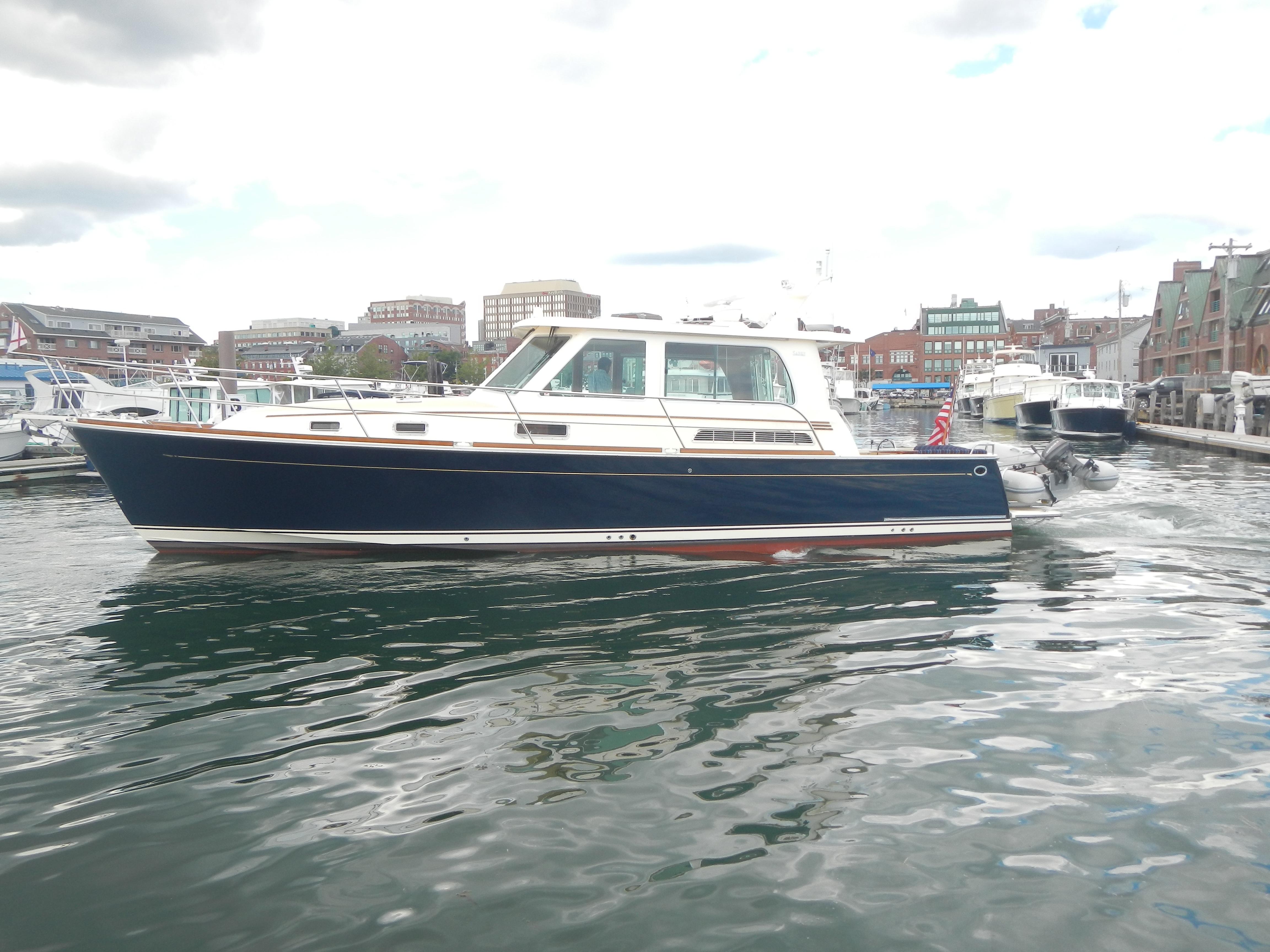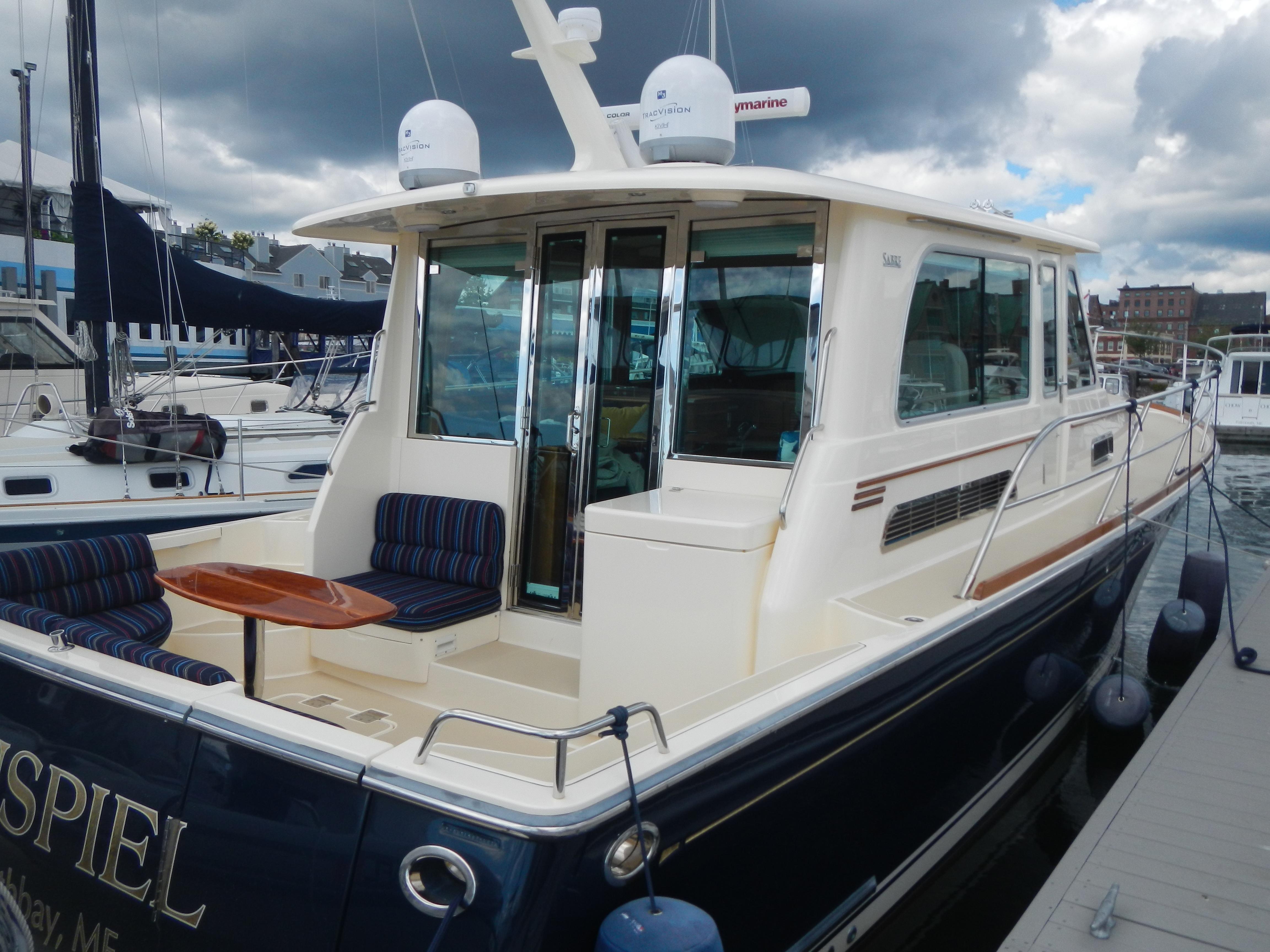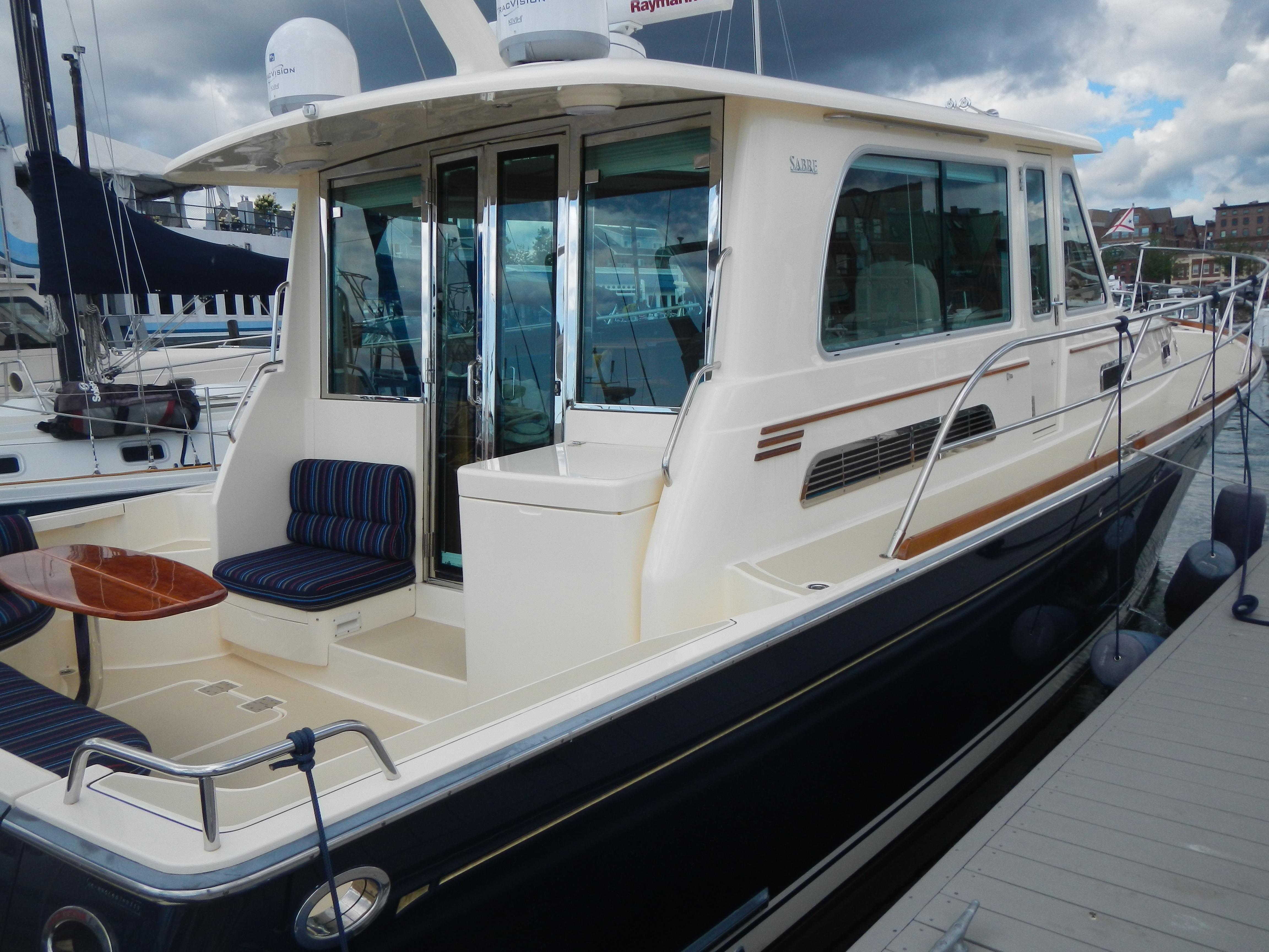 At Sabre Yachts our goal has always been to fulfill the dreams and wishes of our boat owners by listening carefully to their requests and blending their ideas into exciting designs. We consider our owners and potential owners to be valued members of the Sabre Design Team. The Sabre 42 is the result of our observation that our clients want to enjoy the same levels of personal luxury and comfort that they have come to expect in their homes and in their automobiles. To that end we have developed a style of sedan, available with or without fly bridge, that permits boaters to operate from the comfort of the yacht's interior or from the openness of an optional fly bridge. Technology is advancing rapidly and our owners have come to expect that if there is a new technology available, we will employ it in our designs. We have dramatically changed the way we build our yachts and the way in which they are propelled. Traditional values such as fine craftsmanship and great looks remain, as our owners have come to expect, but below the surface things are state-of-the-art.In our fiberglass shop we have changed infusion molding. It is greener in the sense that it uses considerably less resin and cleaner in that the emissions levels are much lower. It's lighter because we use less resin and that allows the hull to run faster and use less fuel. Infusion differs from traditional hand lay-up in that all materials are loaded dry into the mold in a stack, the stack is then covered with a plastic bag and resin is infused into the stack. This creates a stronger part with higher glass to resin ratios. With Zeus Pod everything has changed and nothing remains the same. The smaller engines using vectored thrust propel the boat at higher speeds using less fuel. And when maneuvering in tight spaces a joy stick makes child's play of docking.