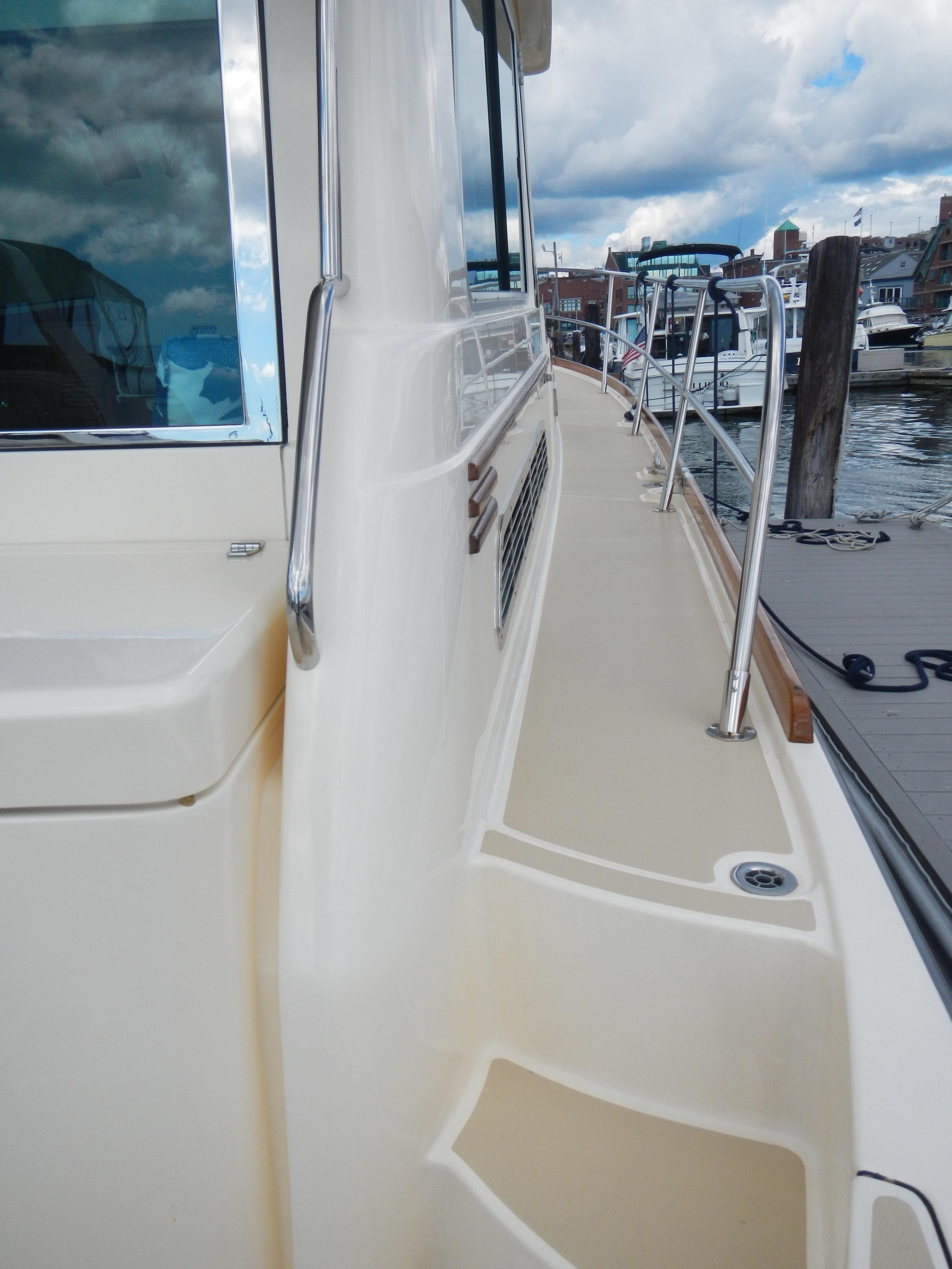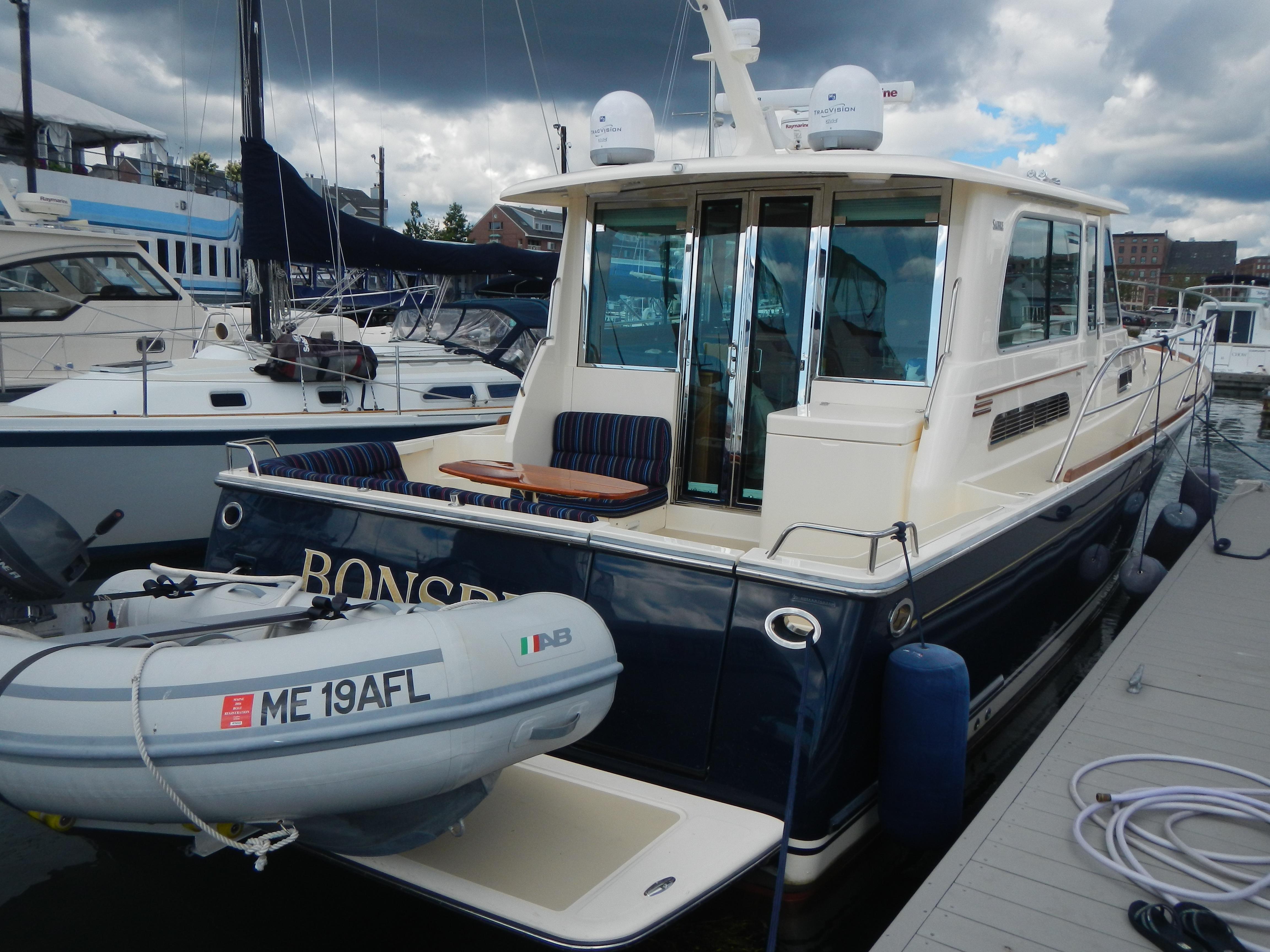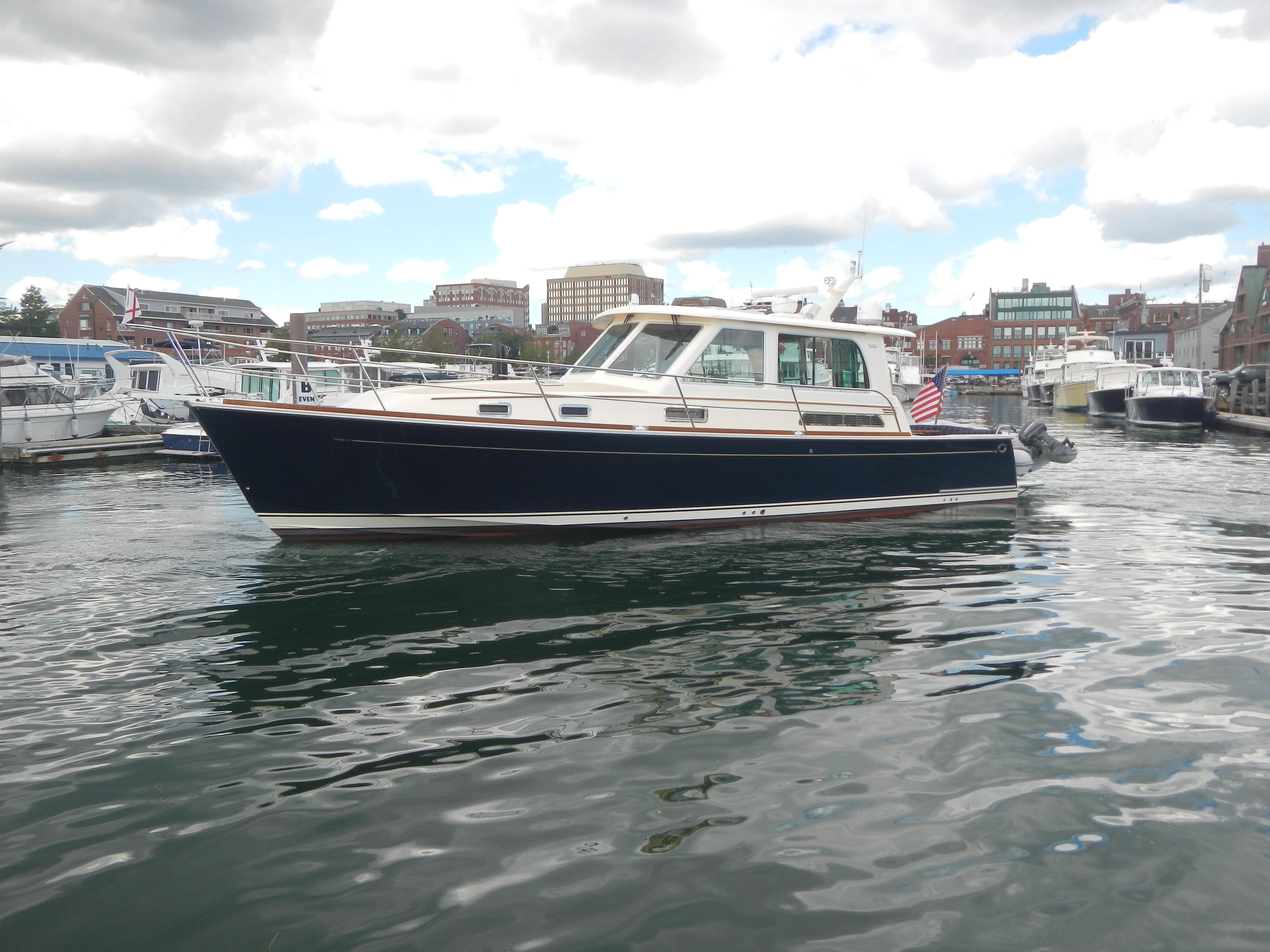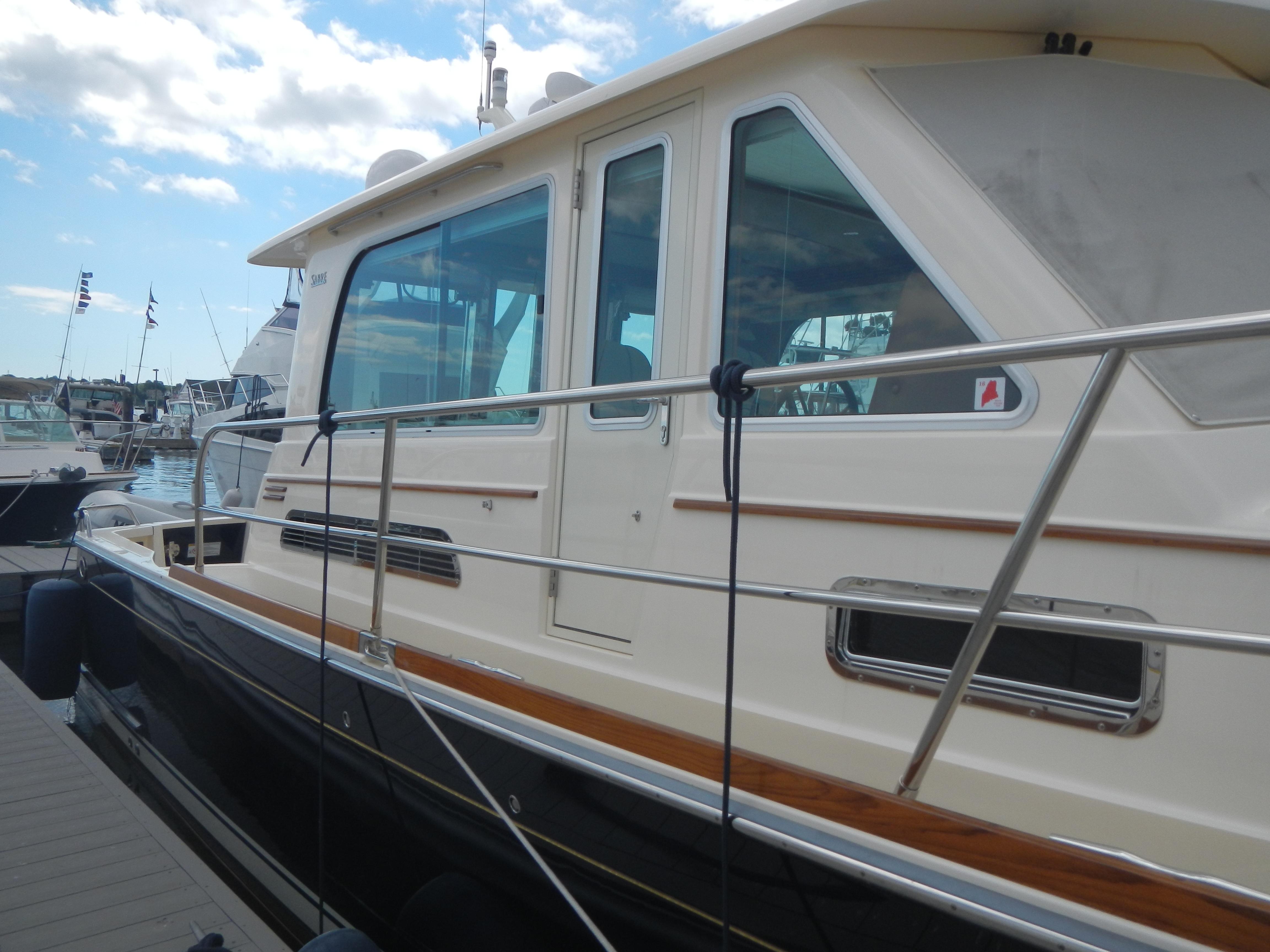 At Sabre Yachts our goal has always been to fulfill the dreams and wishes of our boat owners by listening carefully to their requests and blending their ideas into exciting designs. We consider our owners and potential owners to be valued members of the Sabre Design Team. The Sabre 42 is the result of our observation that our clients want to enjoy the same levels of personal luxury and comfort that they have come to expect in their homes and in their automobiles. To that end we have developed a style of sedan, available with or without fly bridge, that permits boaters to operate from the comfort of the yacht's interior or from the openness of an optional fly bridge. Technology is advancing rapidly and our owners have come to expect that if there is a new technology available, we will employ it in our designs. We have dramatically changed the way we build our yachts and the way in which they are propelled. Traditional values such as fine craftsmanship and great looks remain, as our owners have come to expect, but below the surface things are state-of-the-art.In our fiberglass shop we have changed infusion molding. It is greener in the sense that it uses considerably less resin and cleaner in that the emissions levels are much lower. It's lighter because we use less resin and that allows the hull to run faster and use less fuel. Infusion differs from traditional hand lay-up in that all materials are loaded dry into the mold in a stack, the stack is then covered with a plastic bag and resin is infused into the stack. This creates a stronger part with higher glass to resin ratios. With Zeus Pod everything has changed and nothing remains the same. The smaller engines using vectored thrust propel the boat at higher speeds using less fuel. And when maneuvering in tight spaces a joy stick makes child's play of docking.