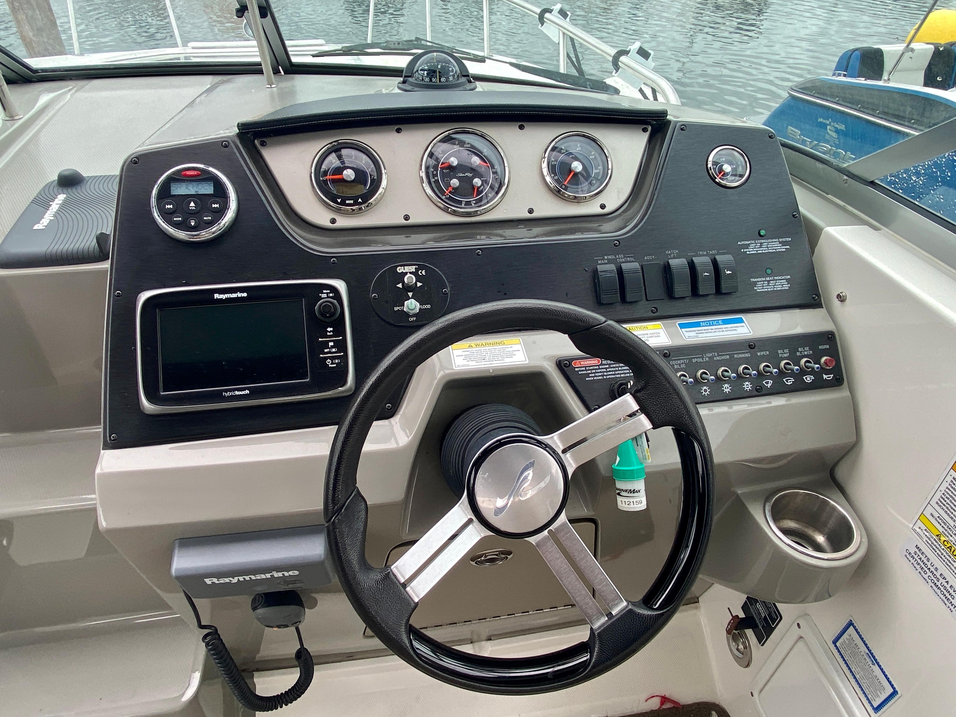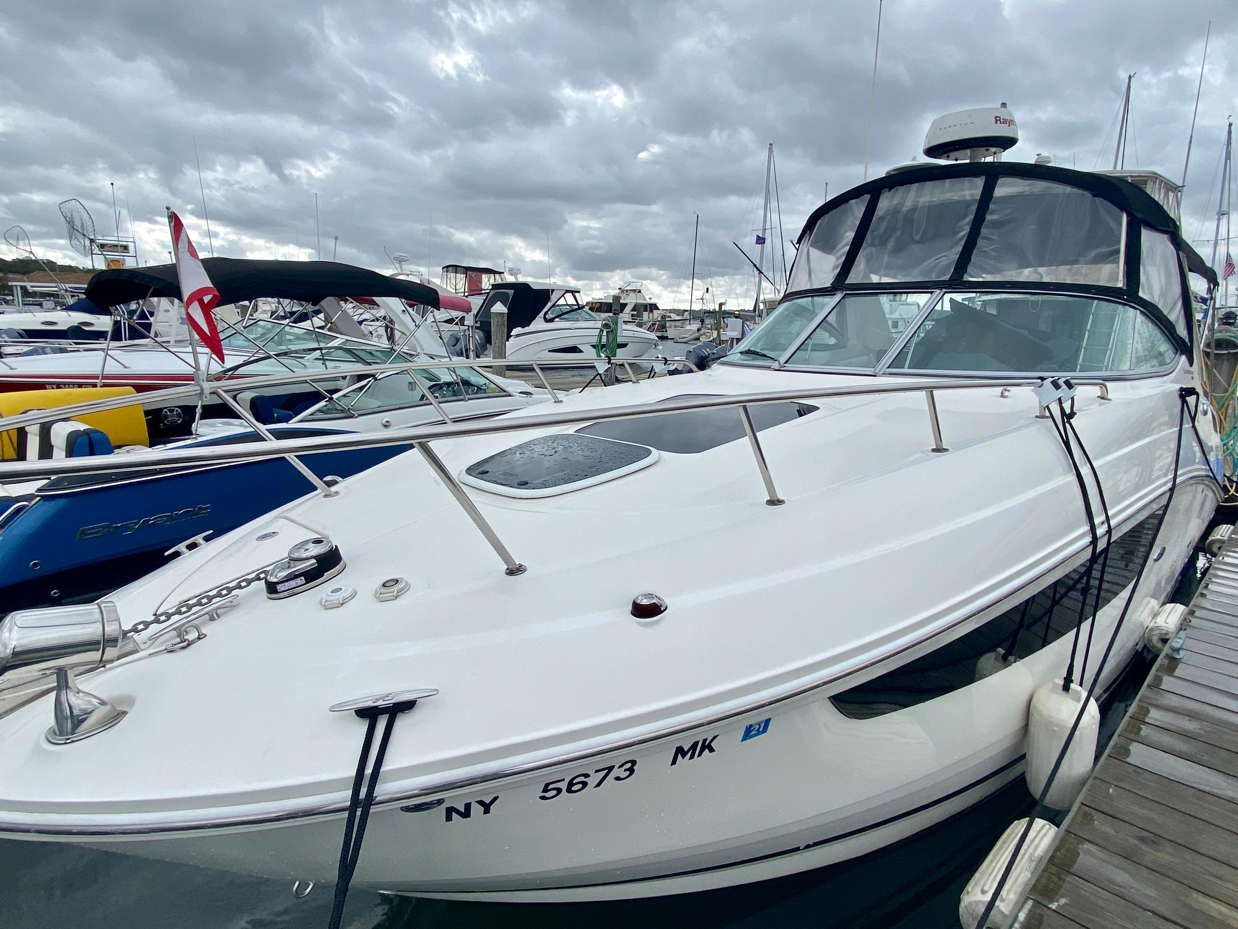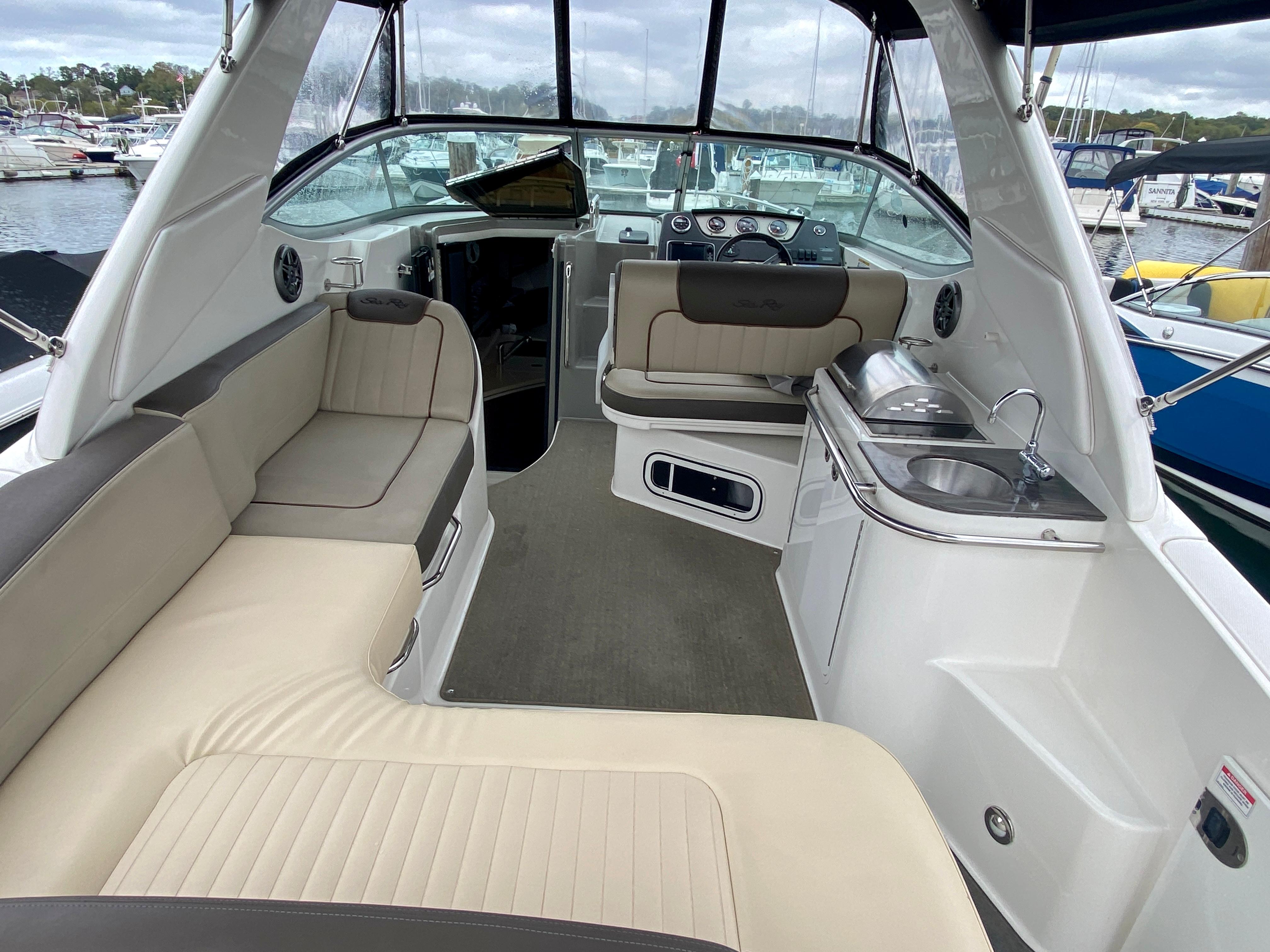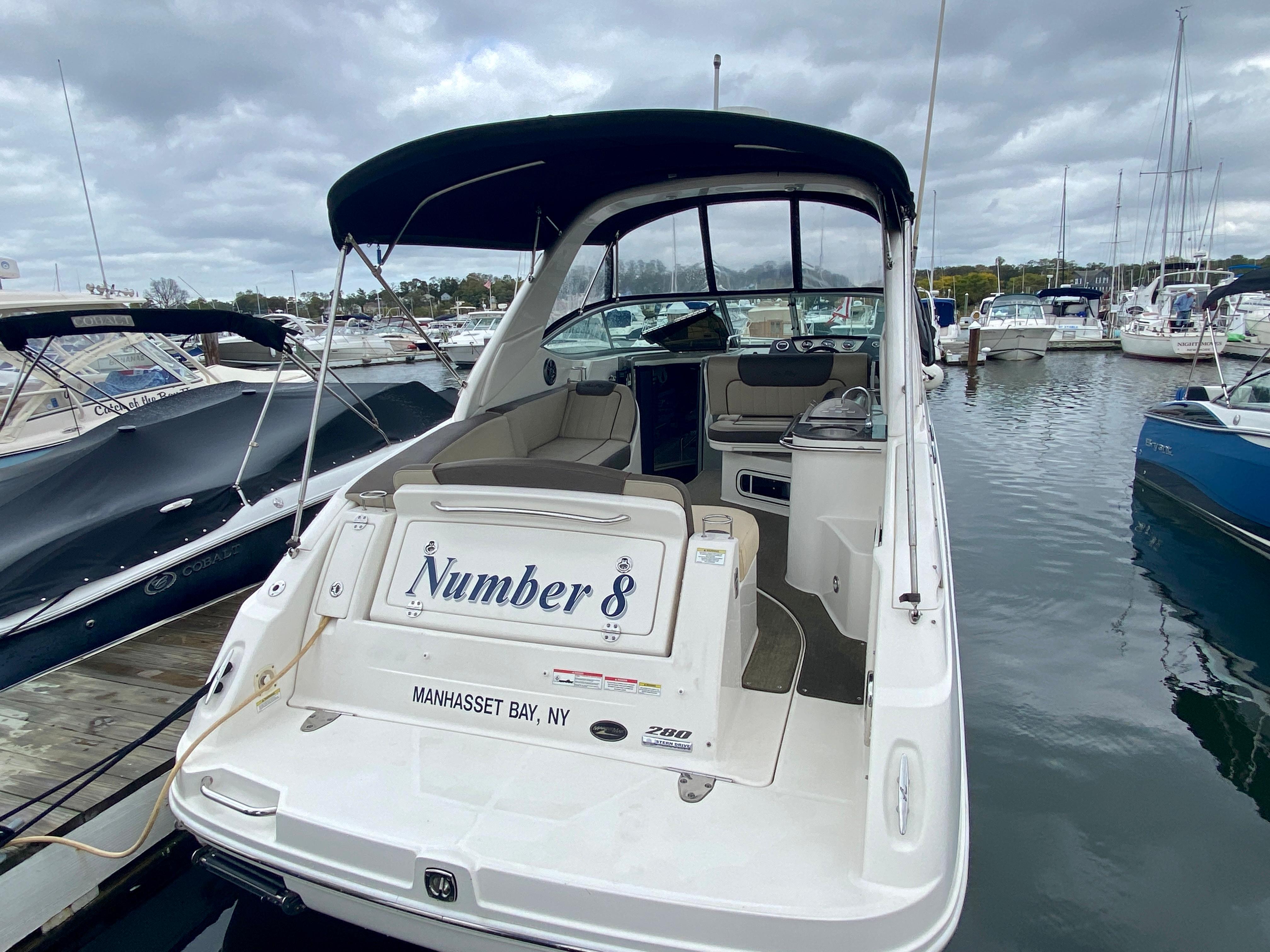 This 280 Sundancer focuses on flexibility with a reversible doublewide helm seat, fold-down sun pad, wet bar with stainless-steel barbecue grill, and refined interior that sleeps four and features wood-finished cabinets. Always indoor stored in the offseason and boasting low hours on her 300hp I/O, she offers the opportunity to start next boating season with a turn key vessel.