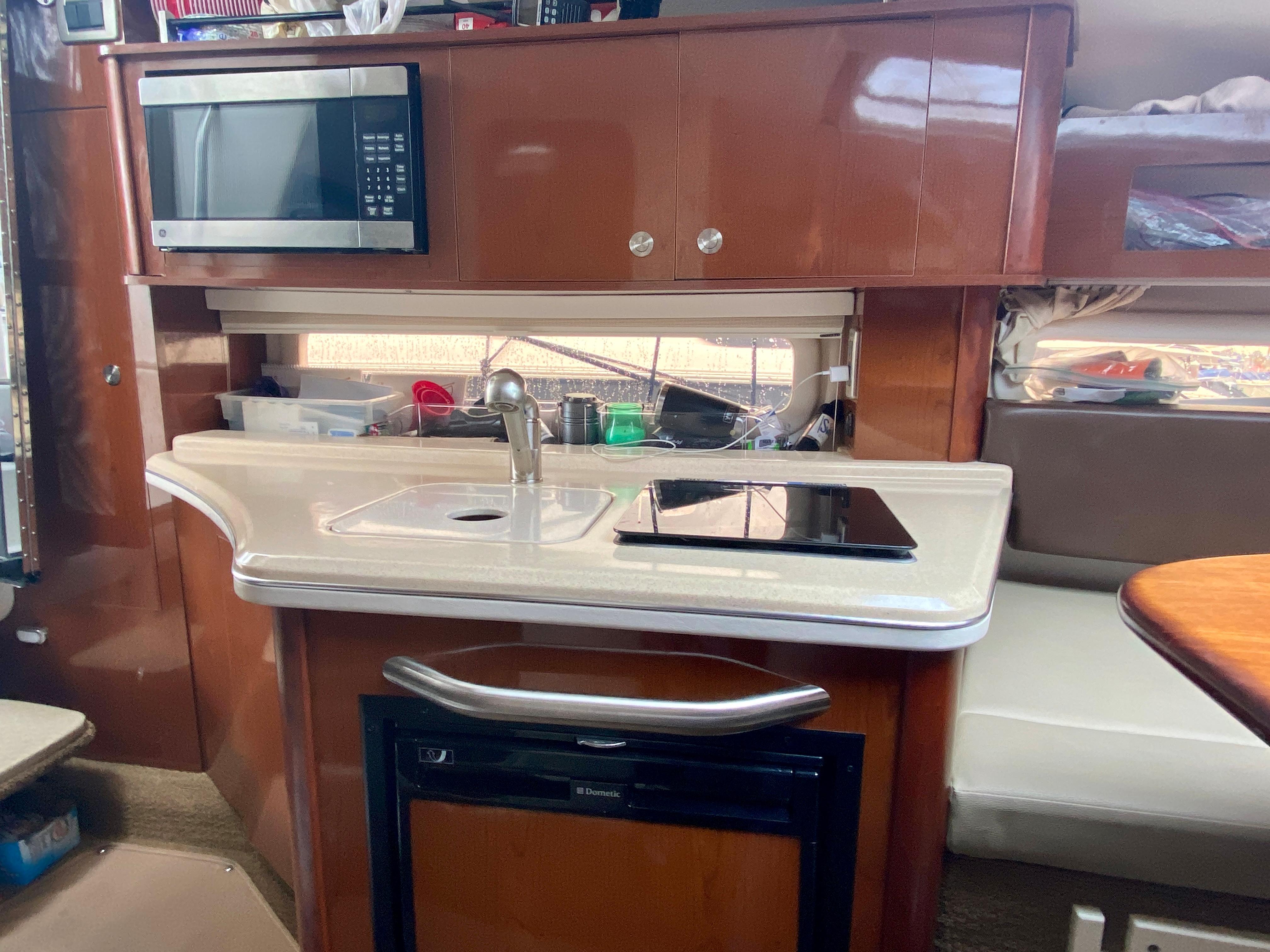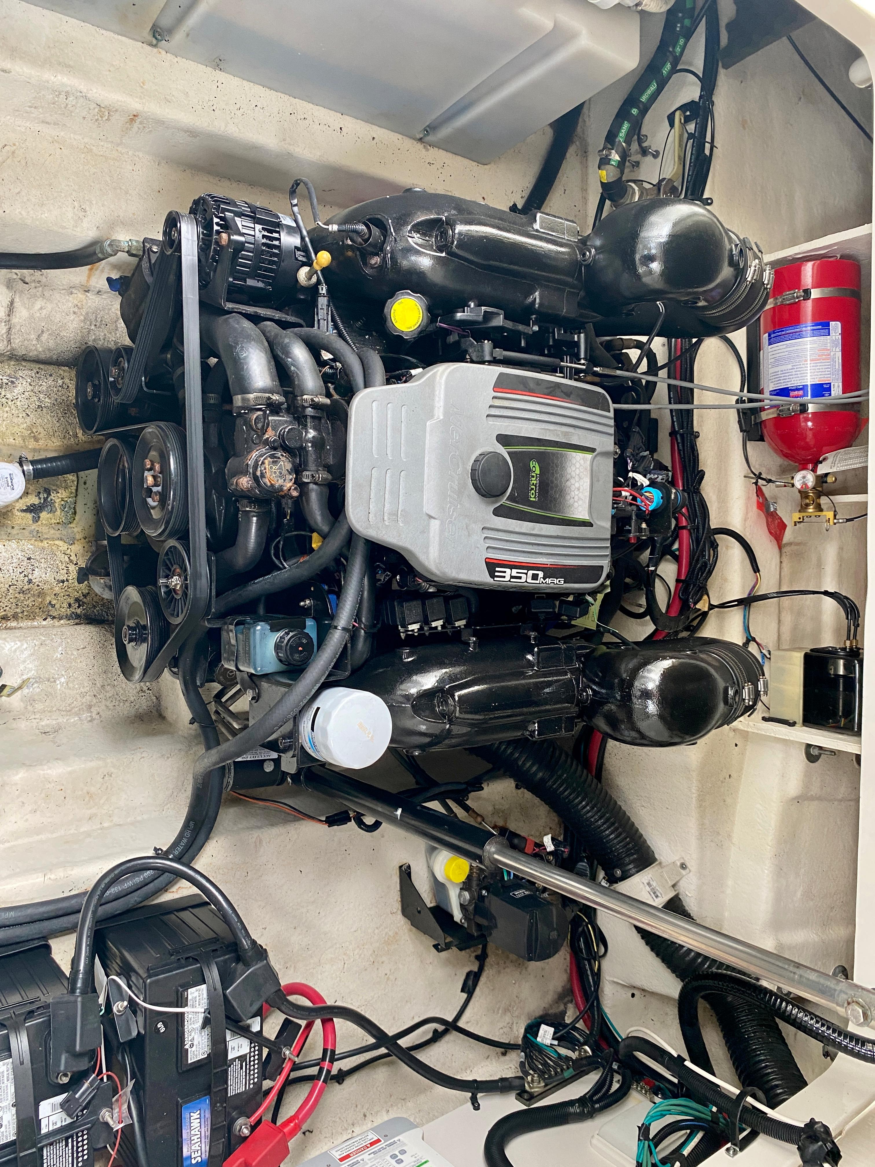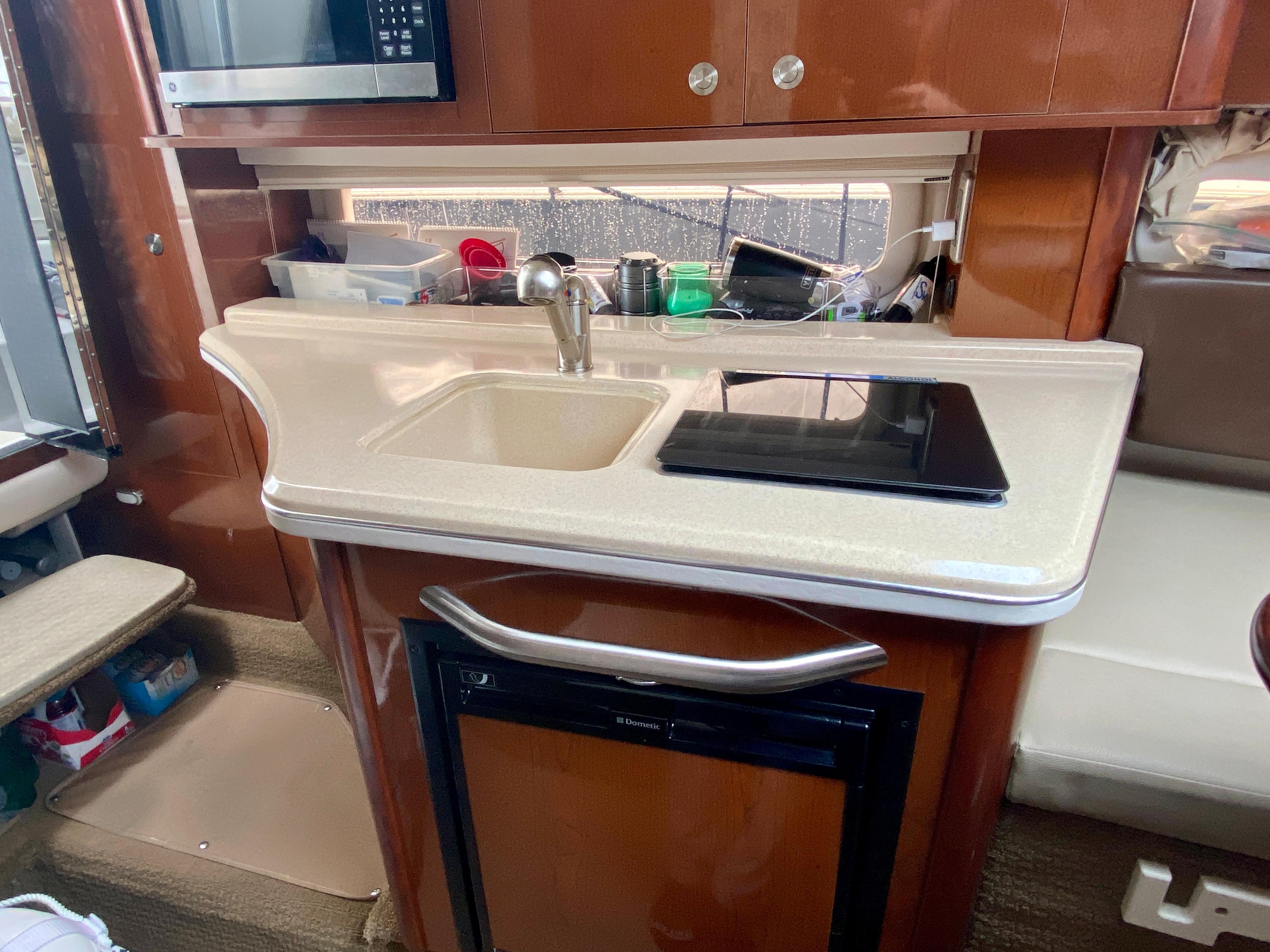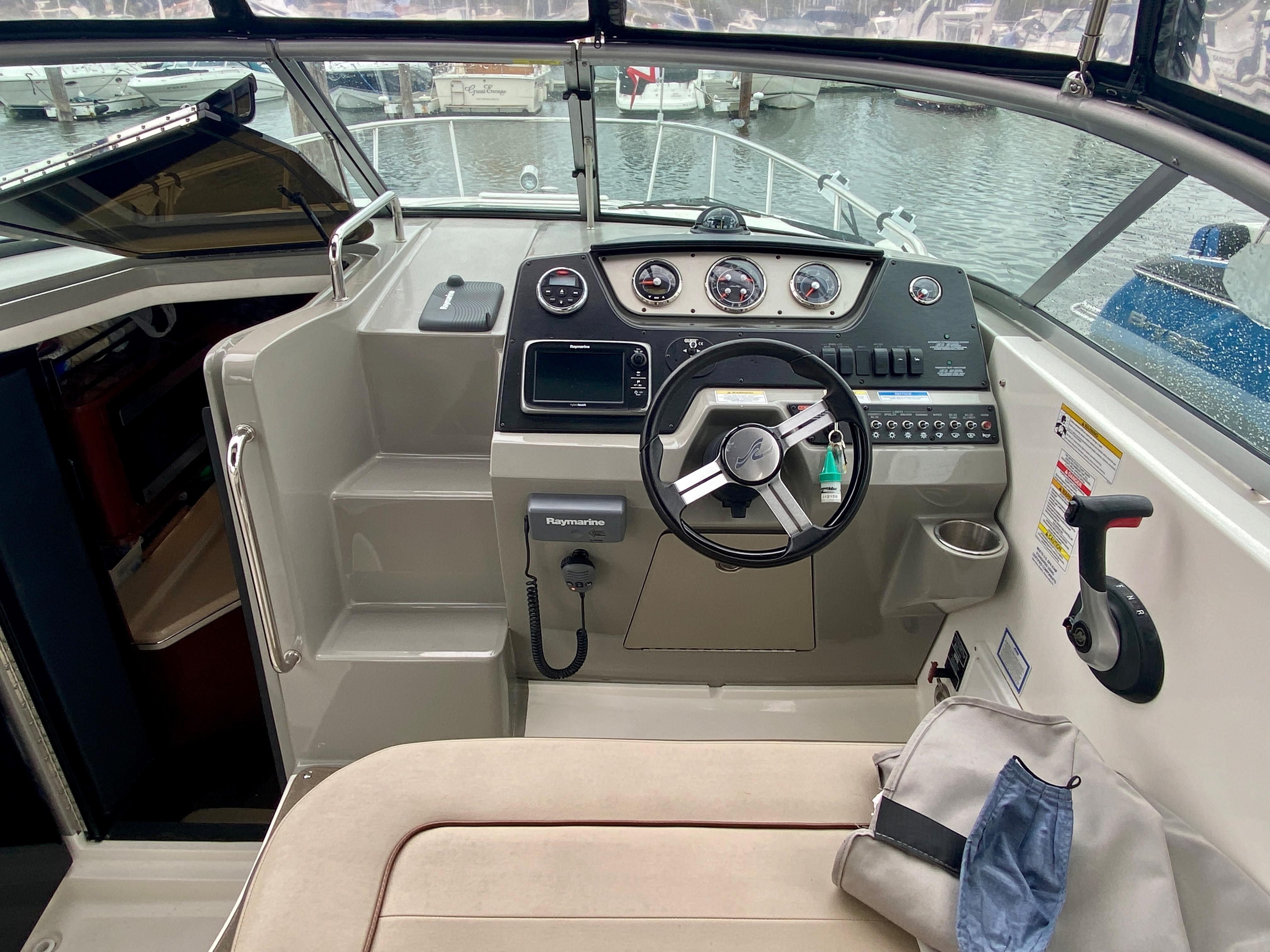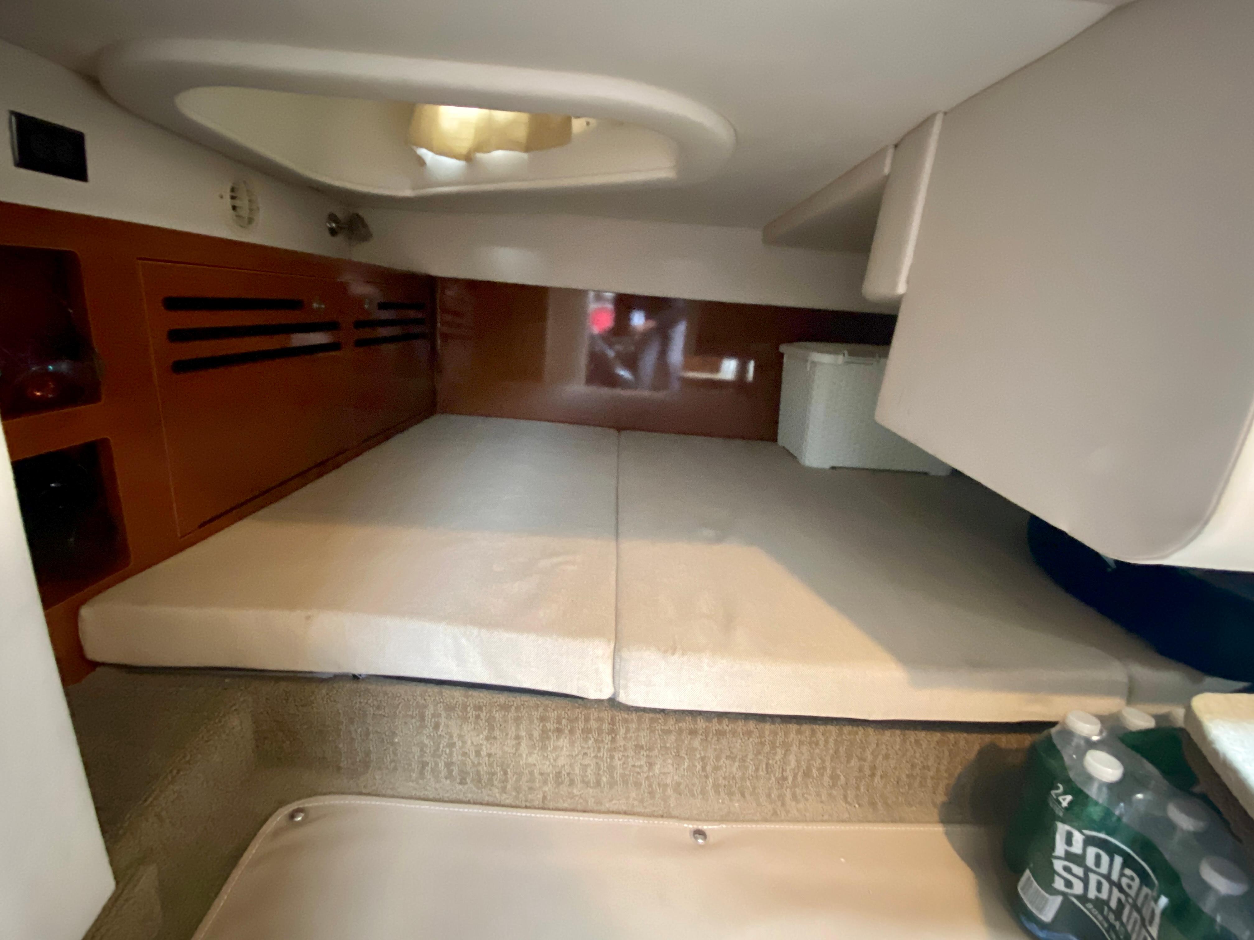 This 280 Sundancer focuses on flexibility with a reversible doublewide helm seat, fold-down sun pad, wet bar with stainless-steel barbecue grill, and refined interior that sleeps four and features wood-finished cabinets. Always indoor stored in the offseason and boasting low hours on her 300hp I/O, she offers the opportunity to start next boating season with a turn key vessel.
