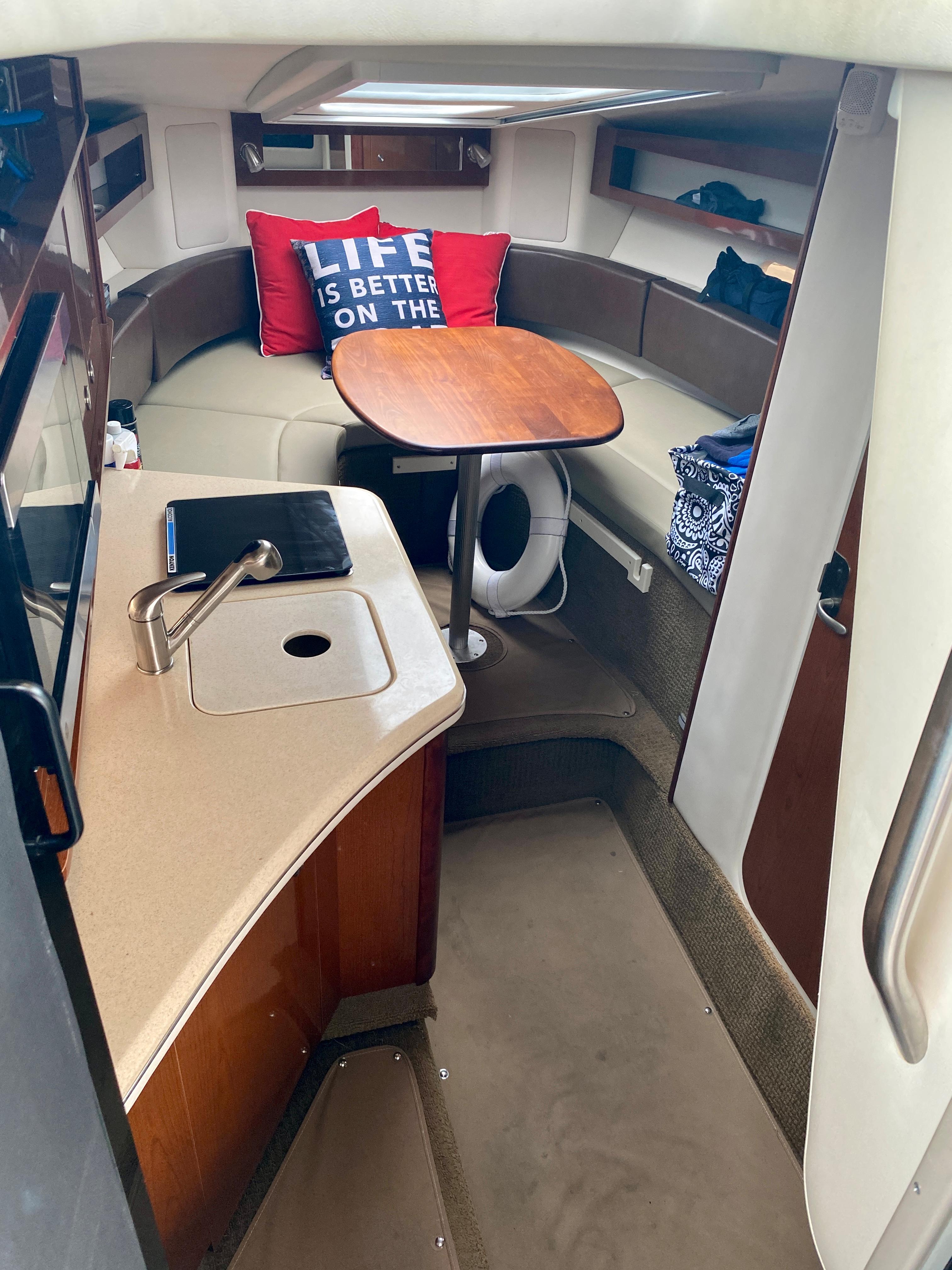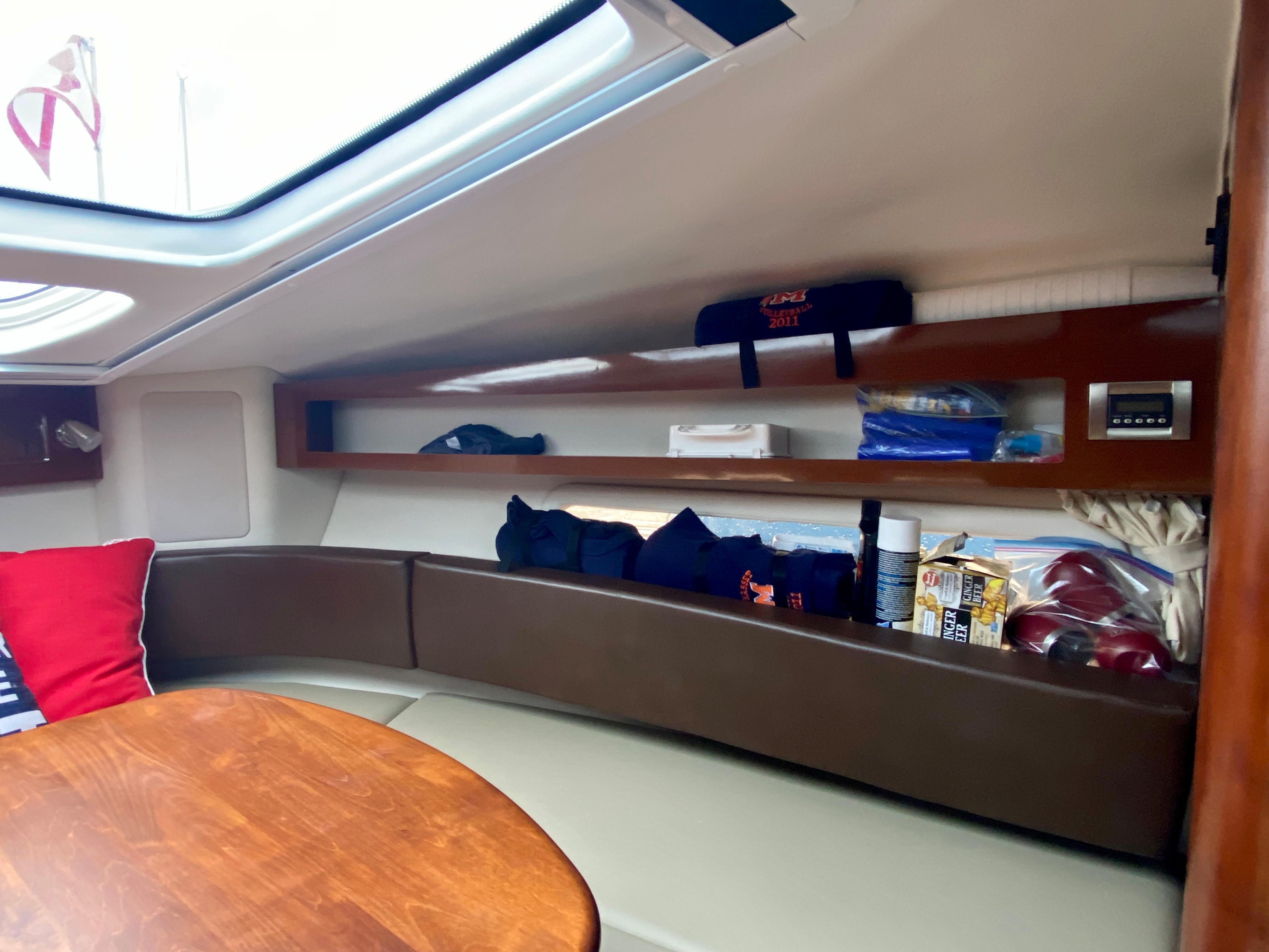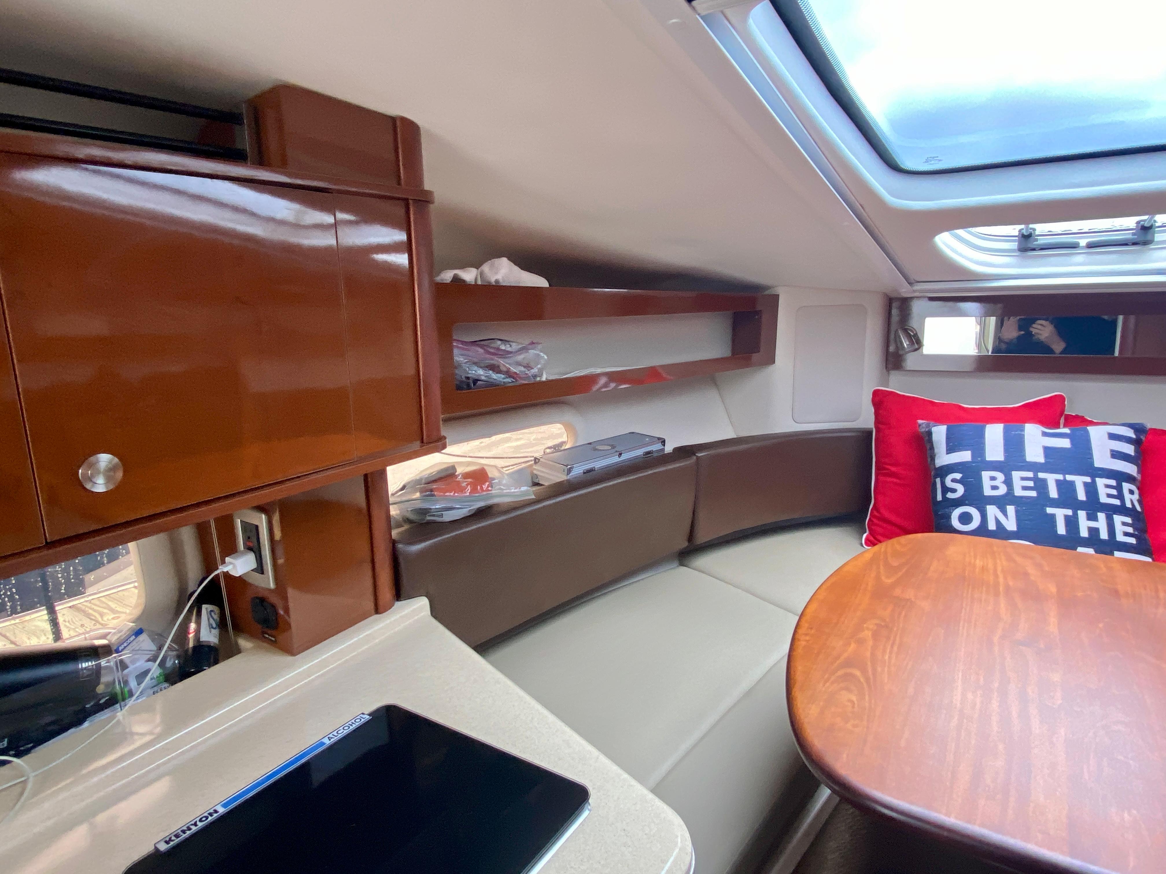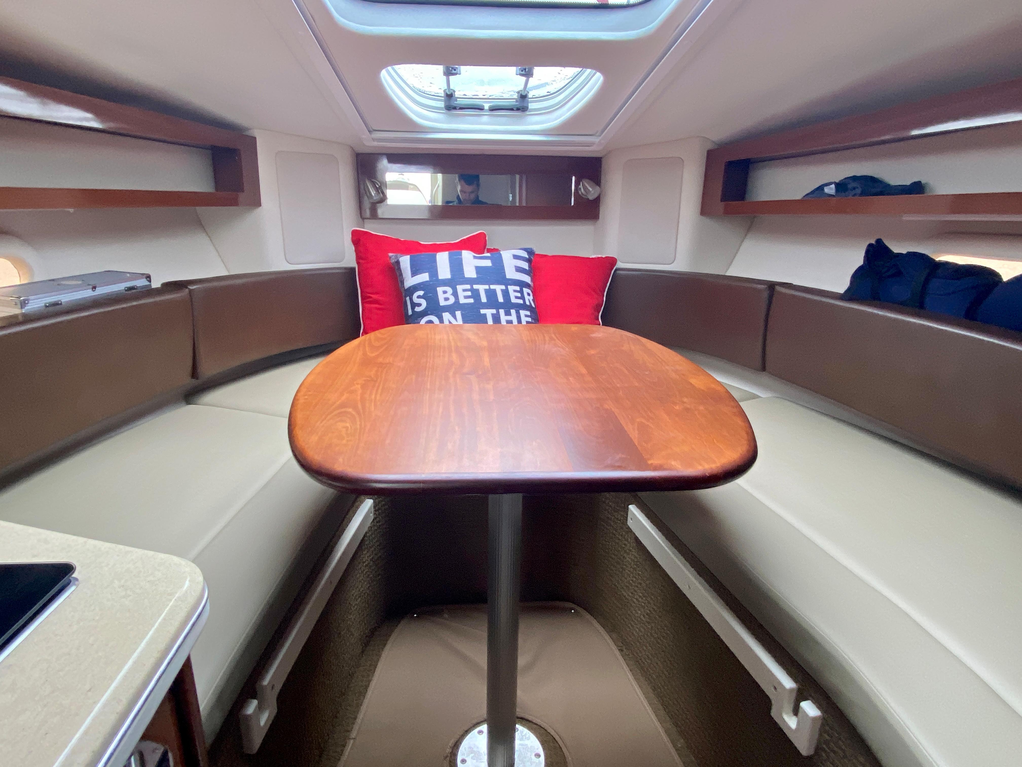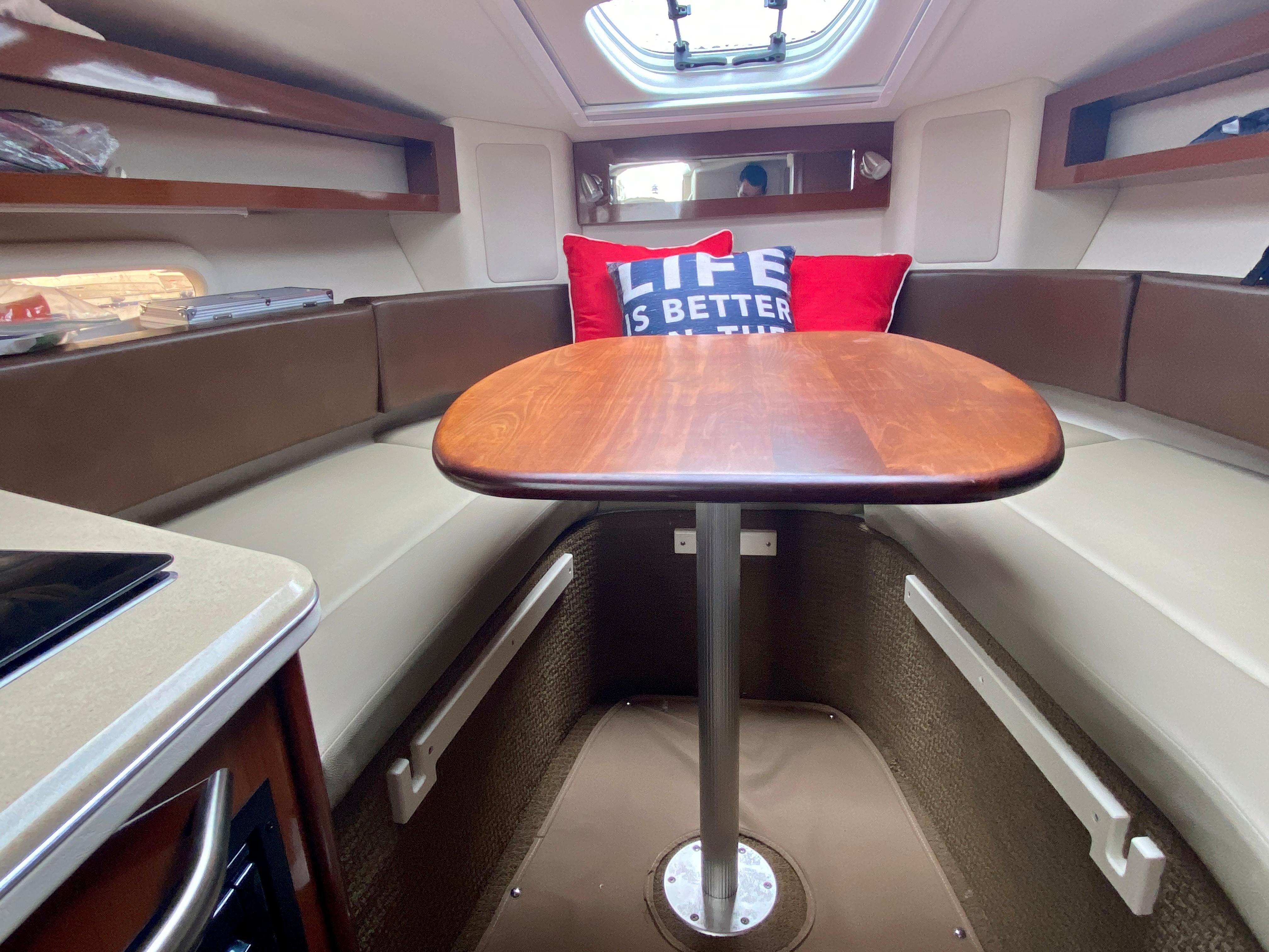 - Convertible dinette with dedicated V-berth filler cushion and table storage.