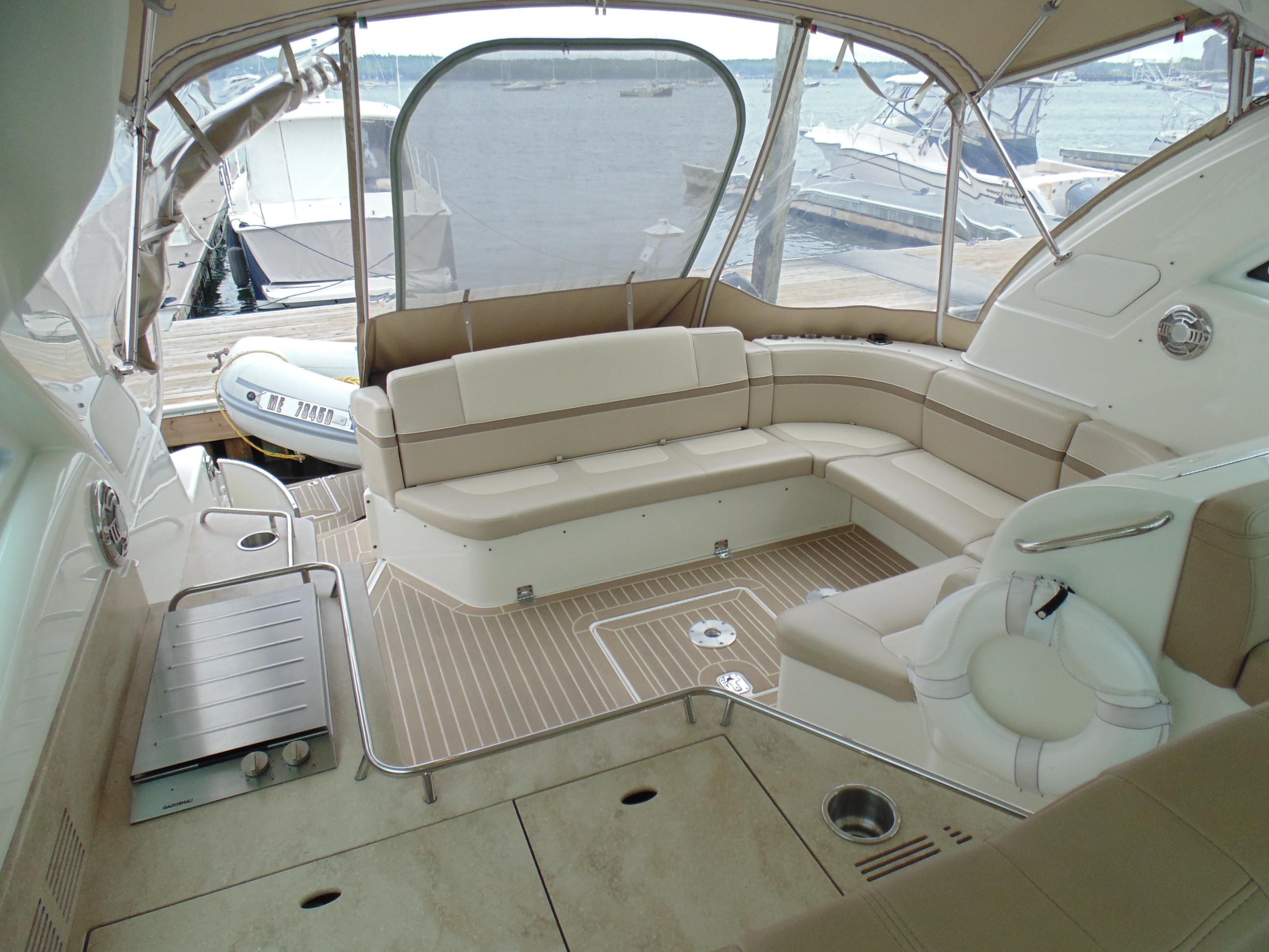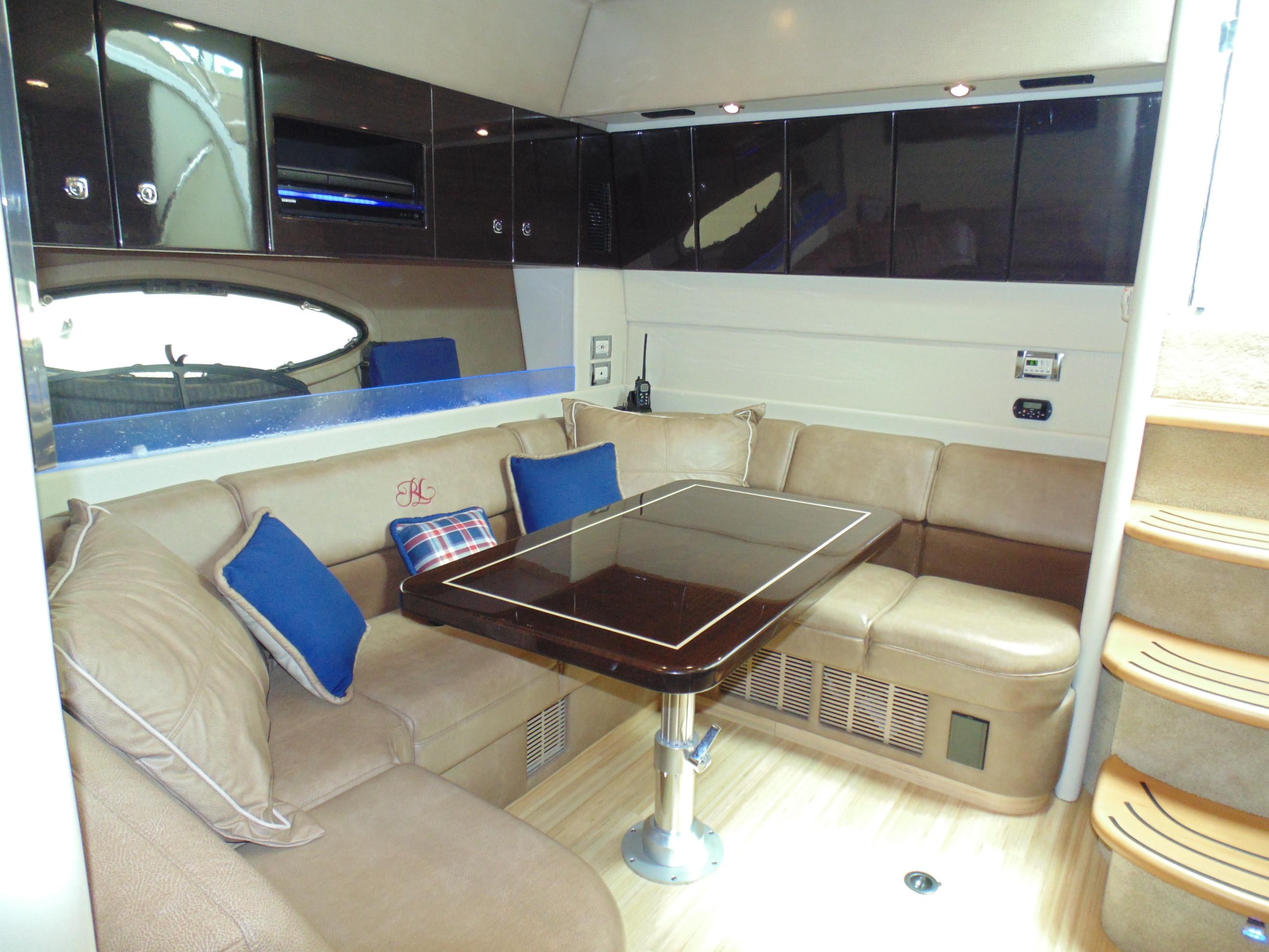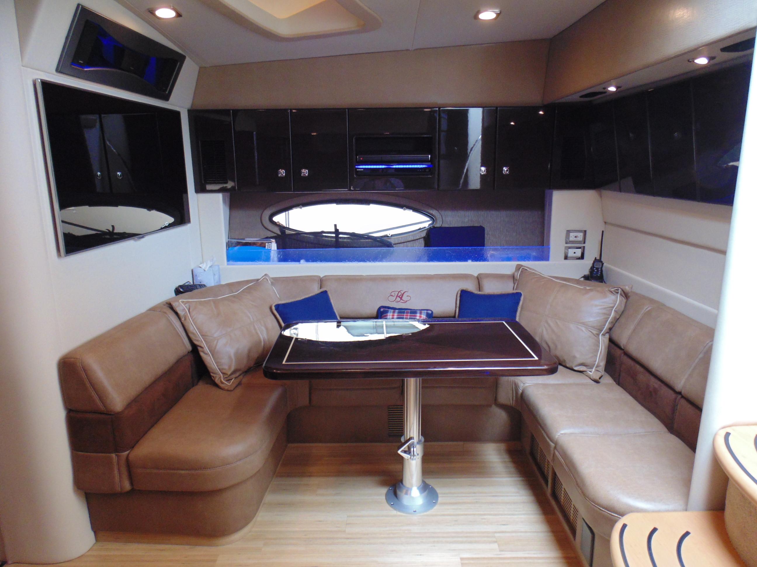 U-shaped lounge seating aft w/fiberglass-lined storage