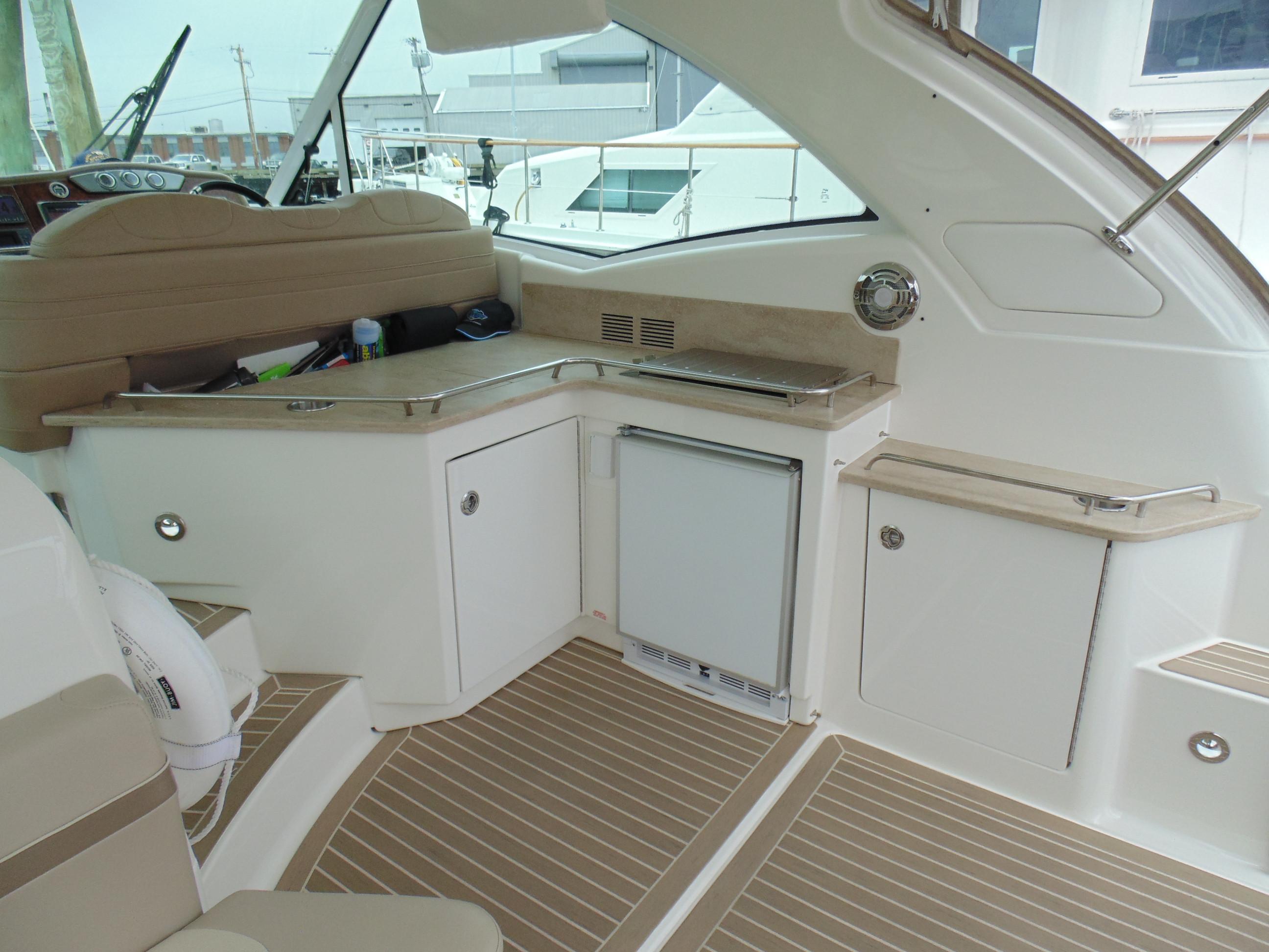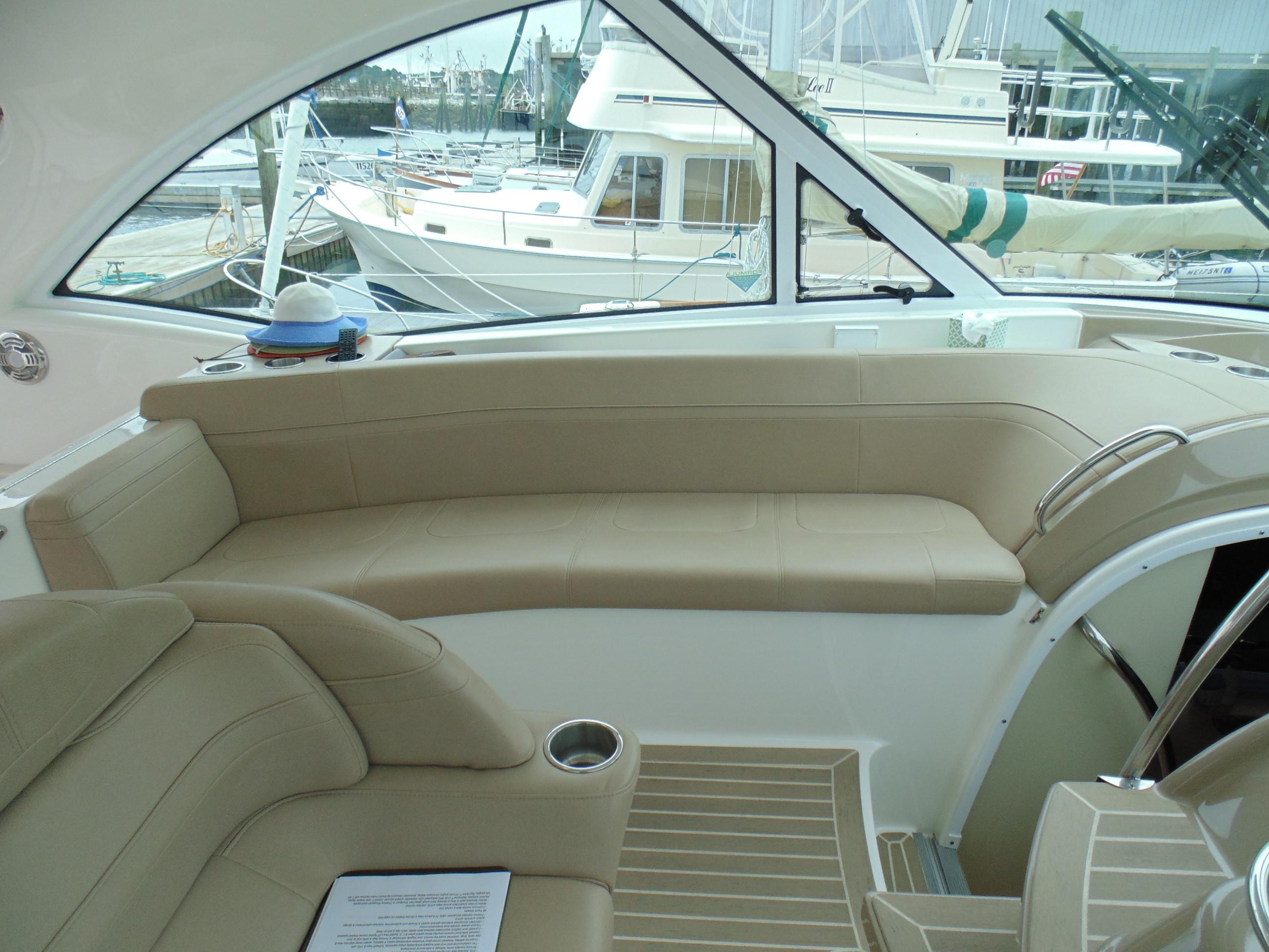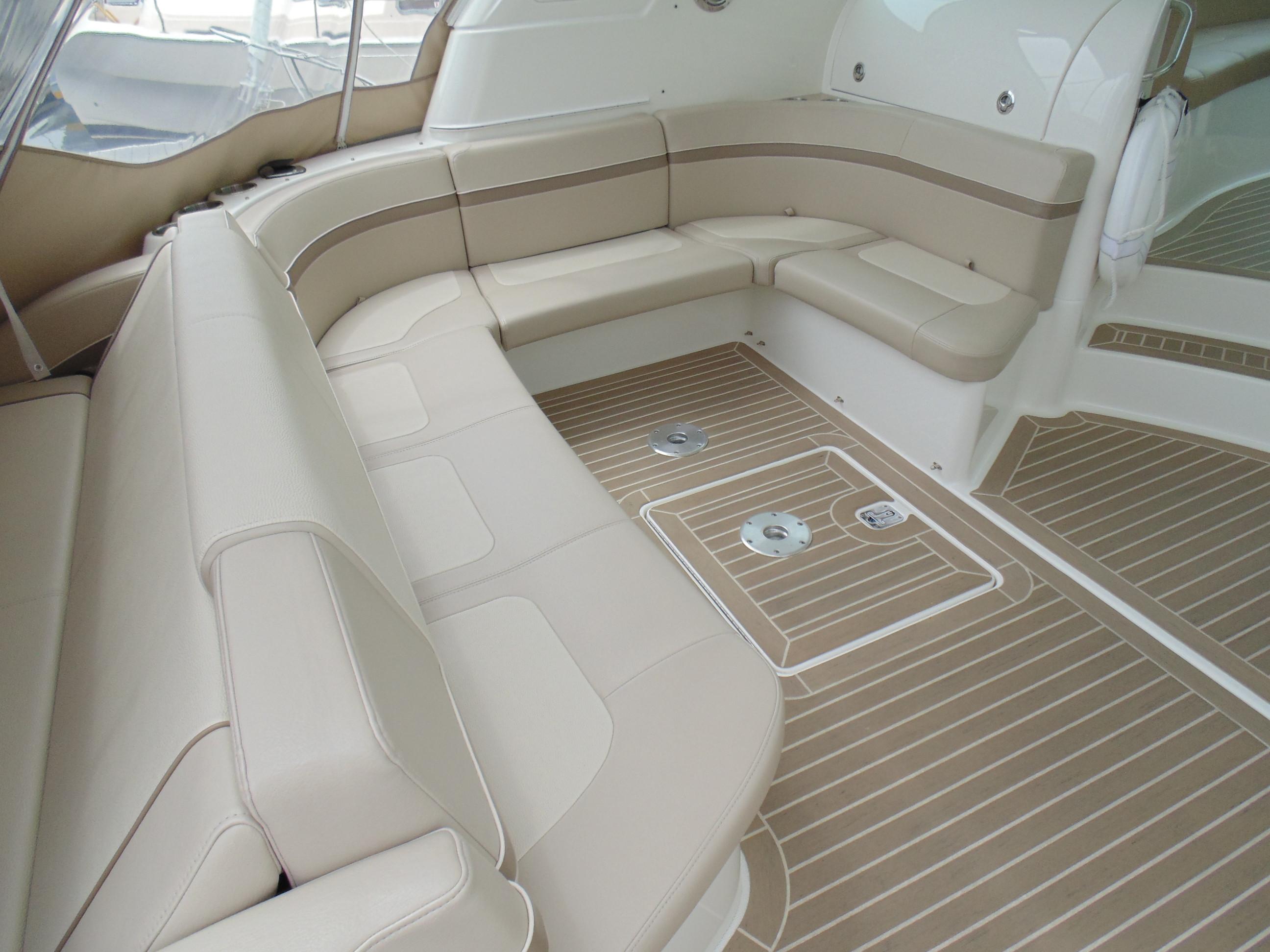 U-shaped lounge seating aft w/fiberglass-lined storage