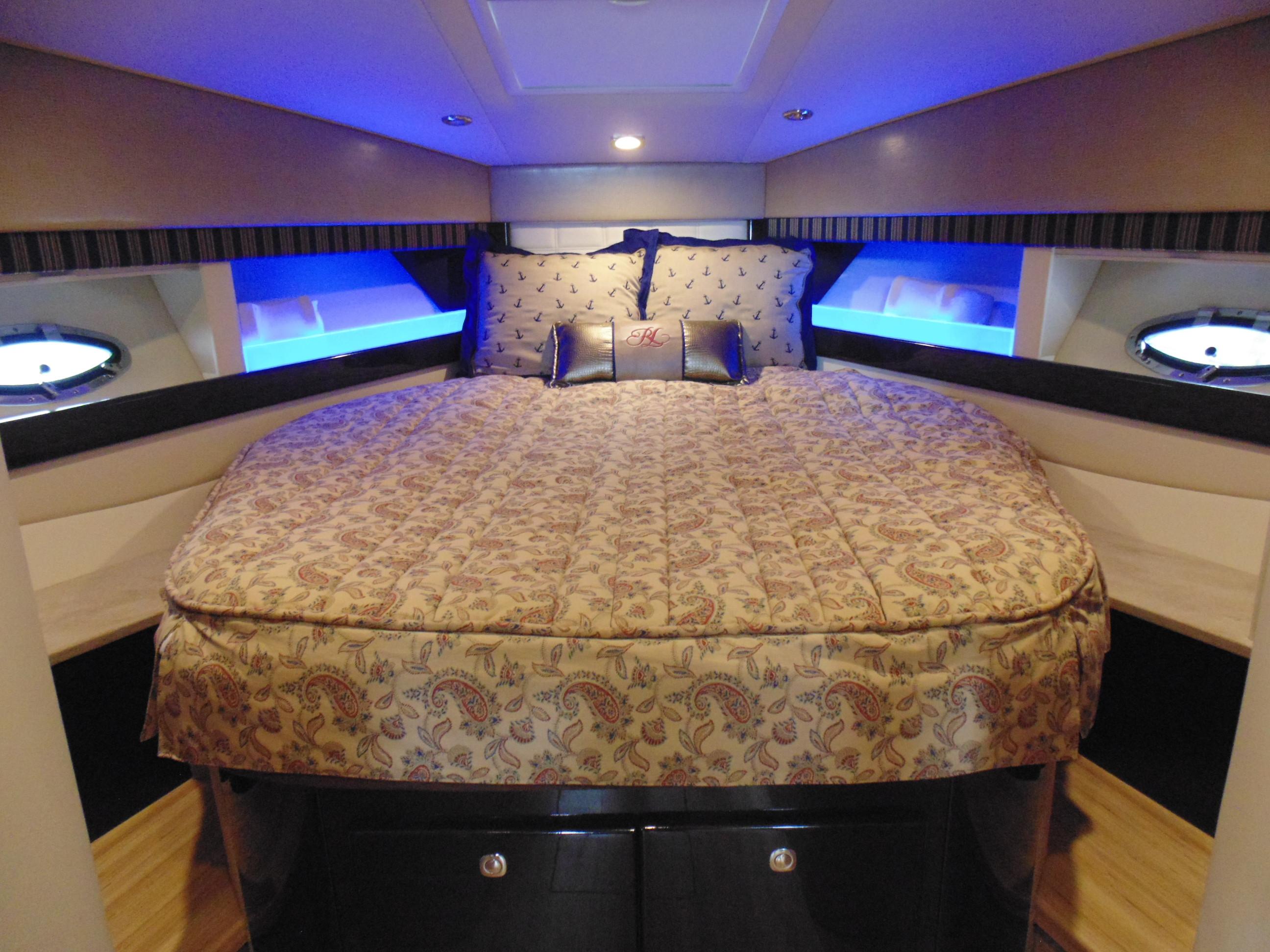 Owners’ centerline bed w/Sensus® memory foam mattress, storage beneath & four dovetailed hardwood drawers