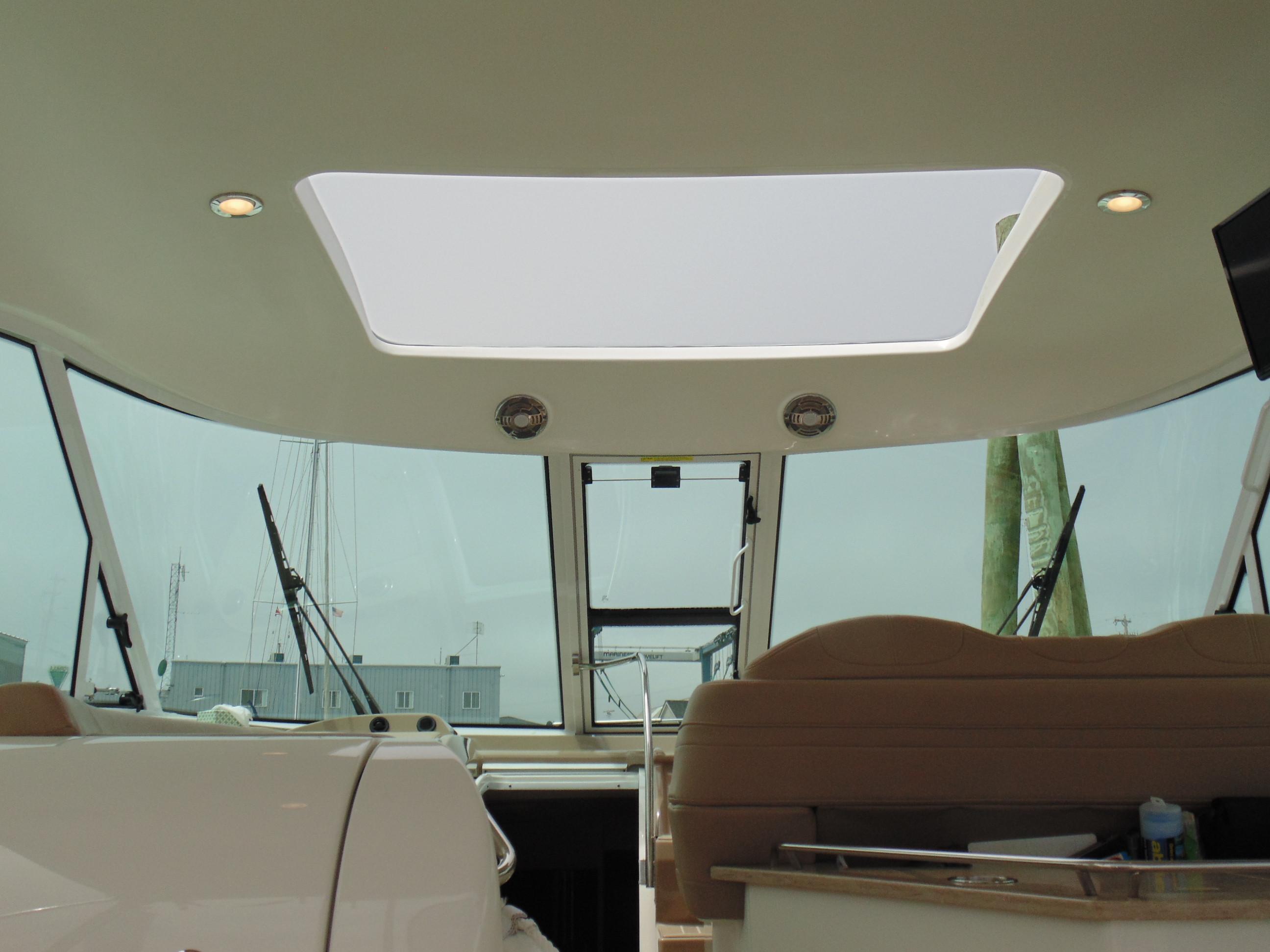 Polished stainless steel Bomar® cabin venting hatch w/integrated OceanAir® rollout SKYscreen & privacy shade
