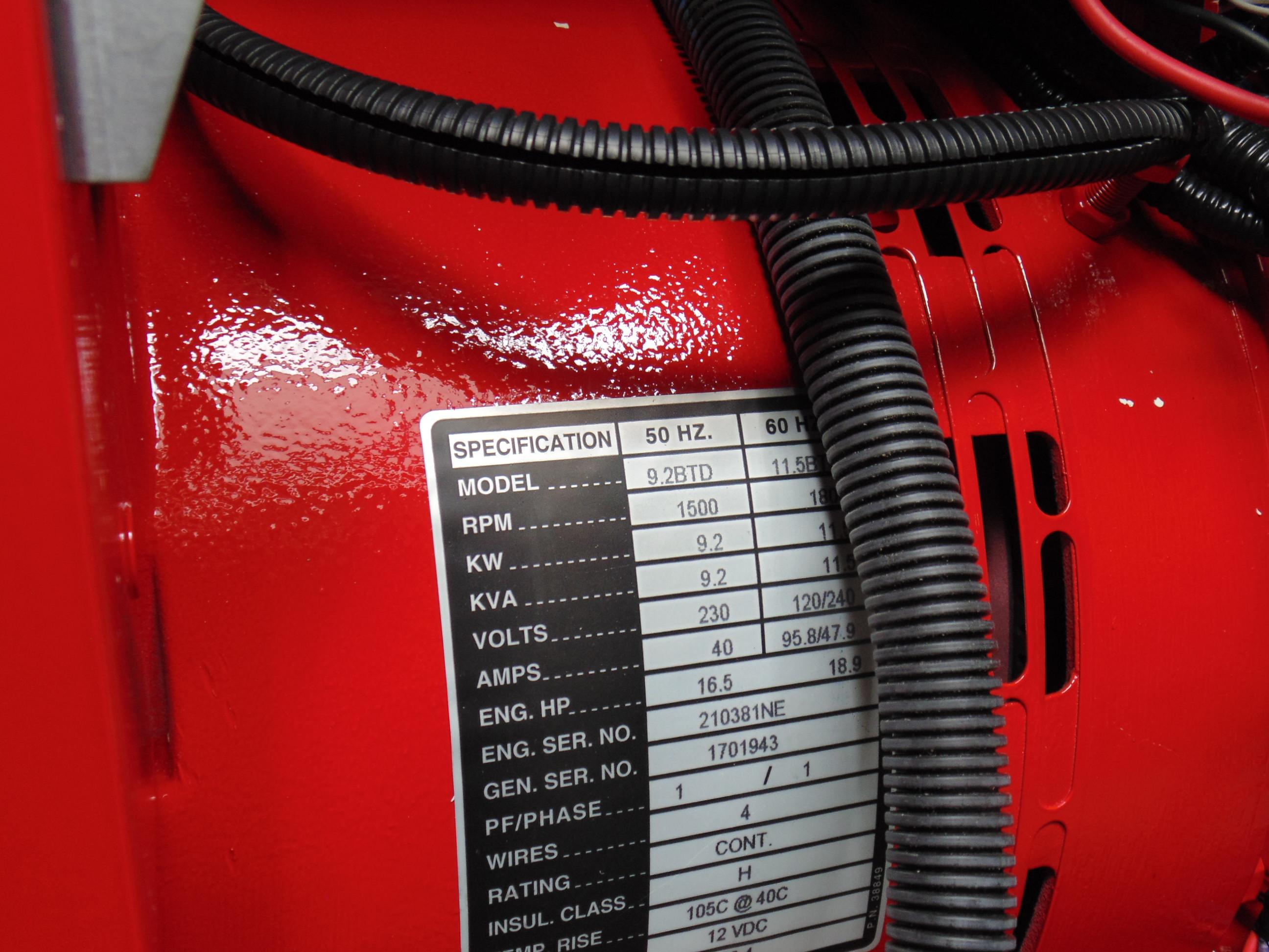 11.5 KW diesel generator w/sound shield & dedicated battery