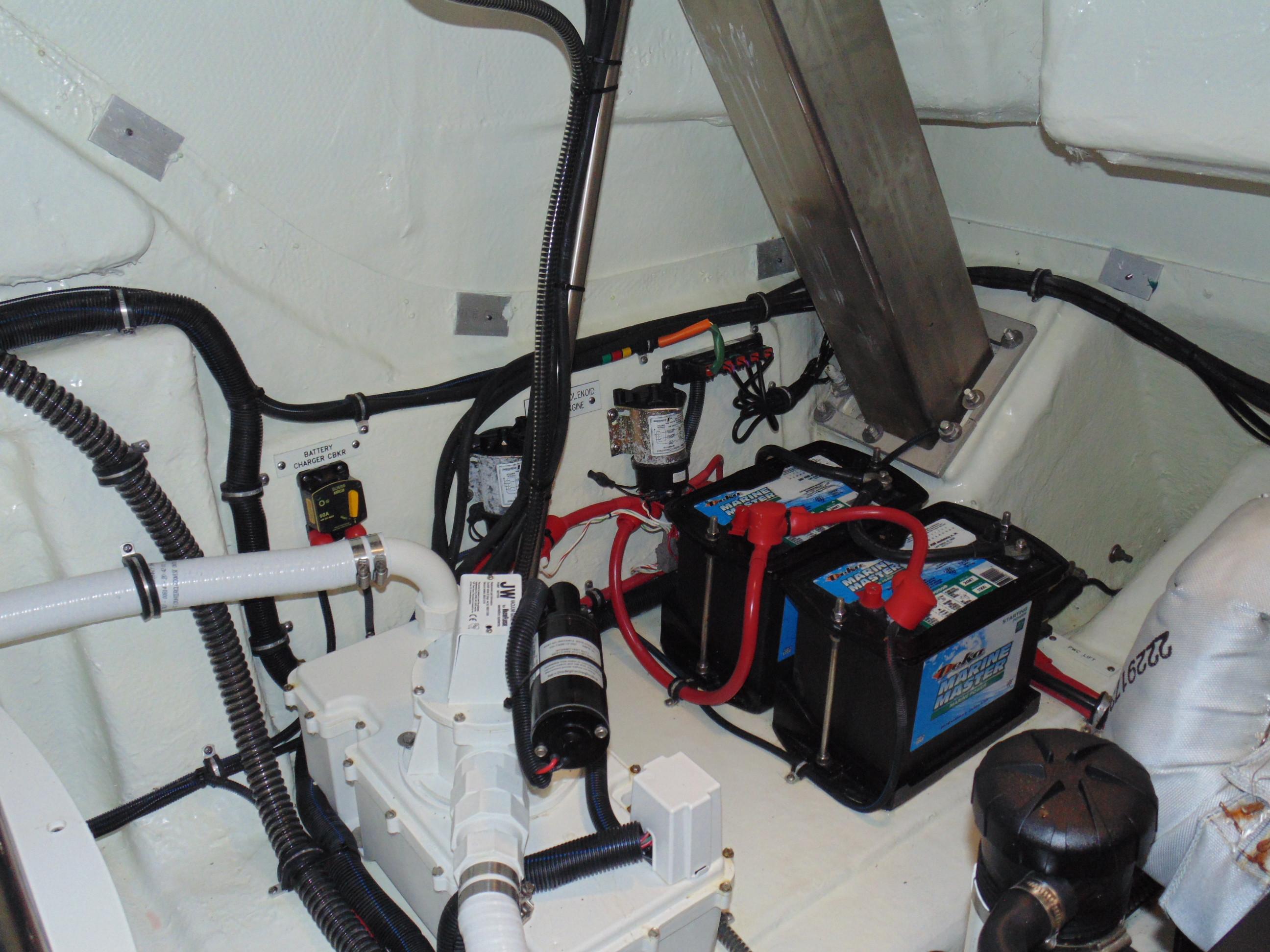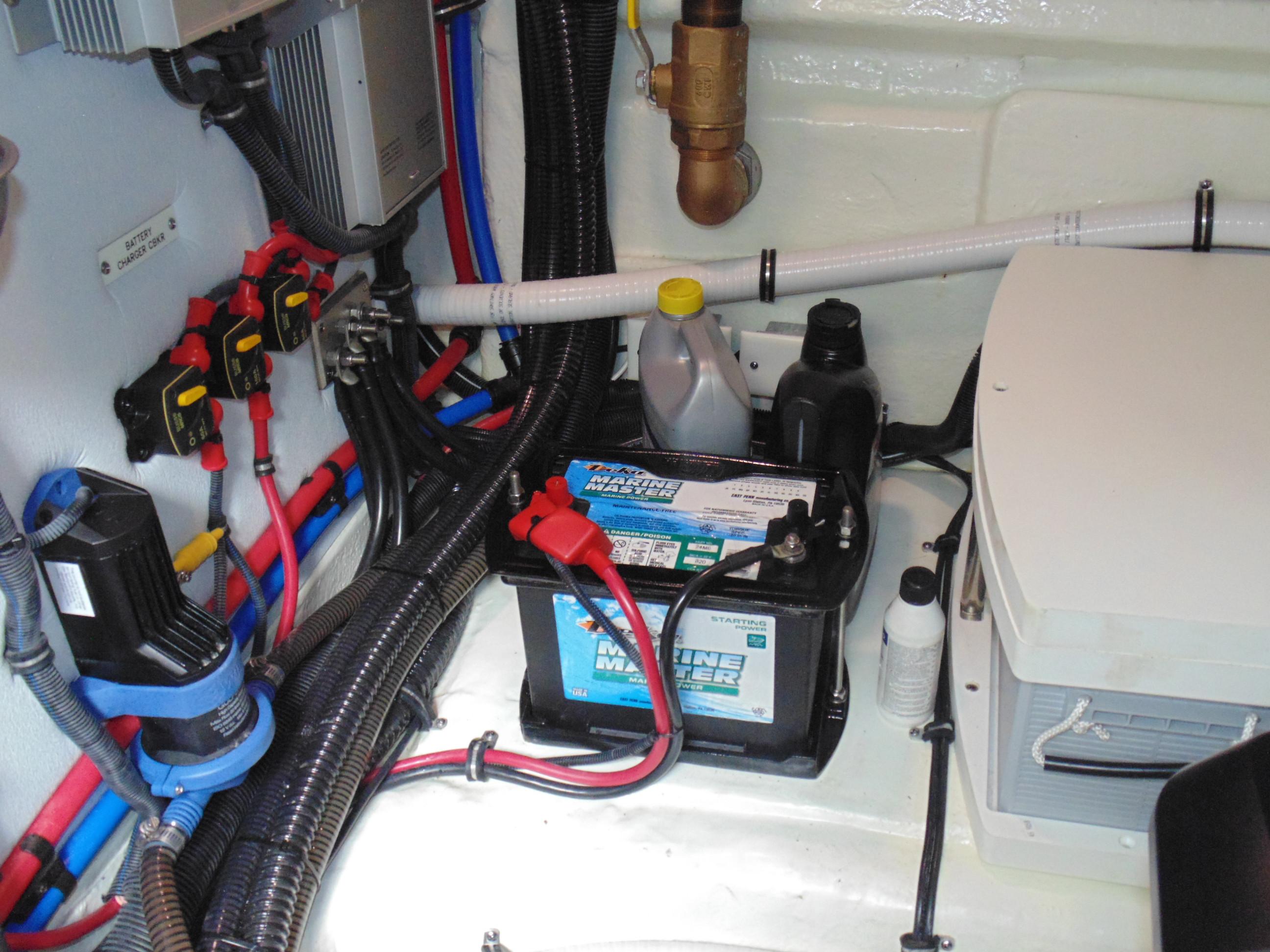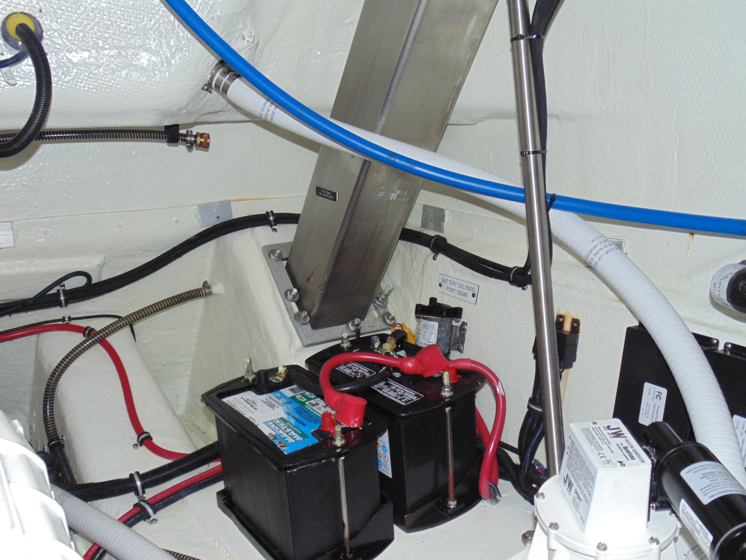 Four starting and two auxiliary marine batteries w/battery retainers